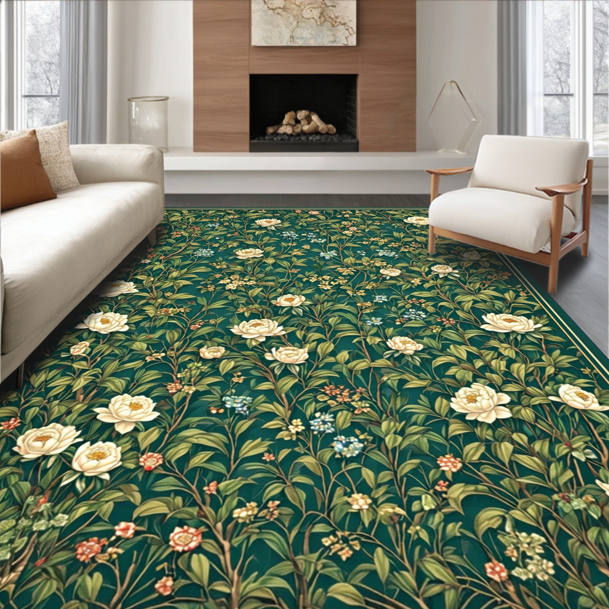 Flatwoven High Traffic Area Rug, Luxurious Emerald Botanical Imagery, Non Slip, Stain Resistant, Washable Area Rugs for Living Room, Bedroom (Green) Overview: