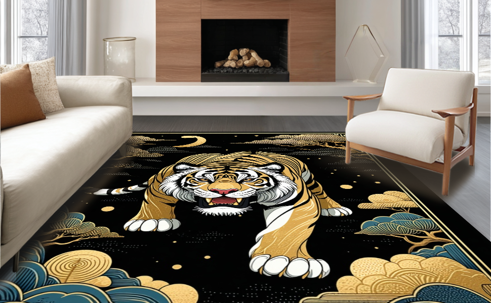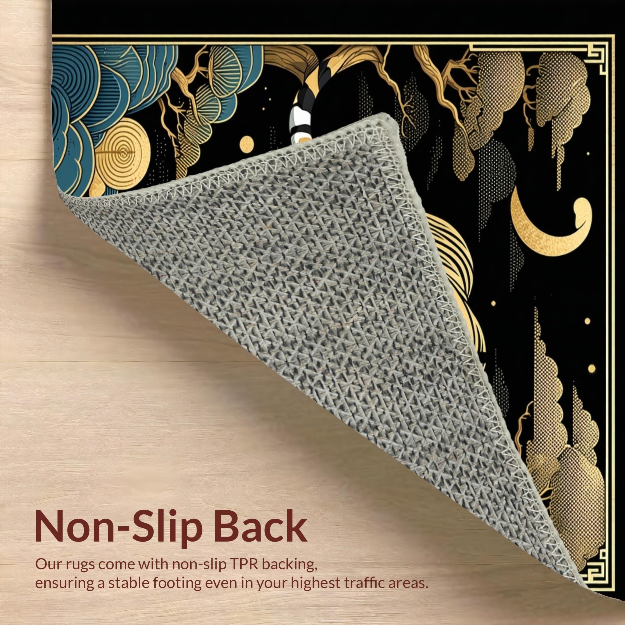 Ultra Soft Area Rug, Non Slip, Stain Resistant, Washable Area Rugs for Living Room, Bedroom, Luxurious Ethnic Textured Design(Gold) Overview: