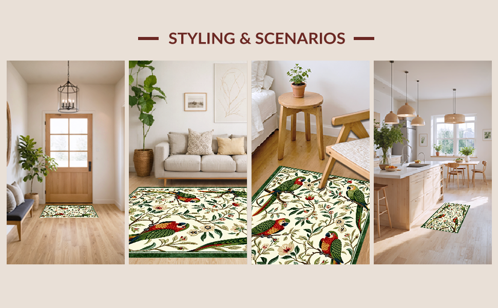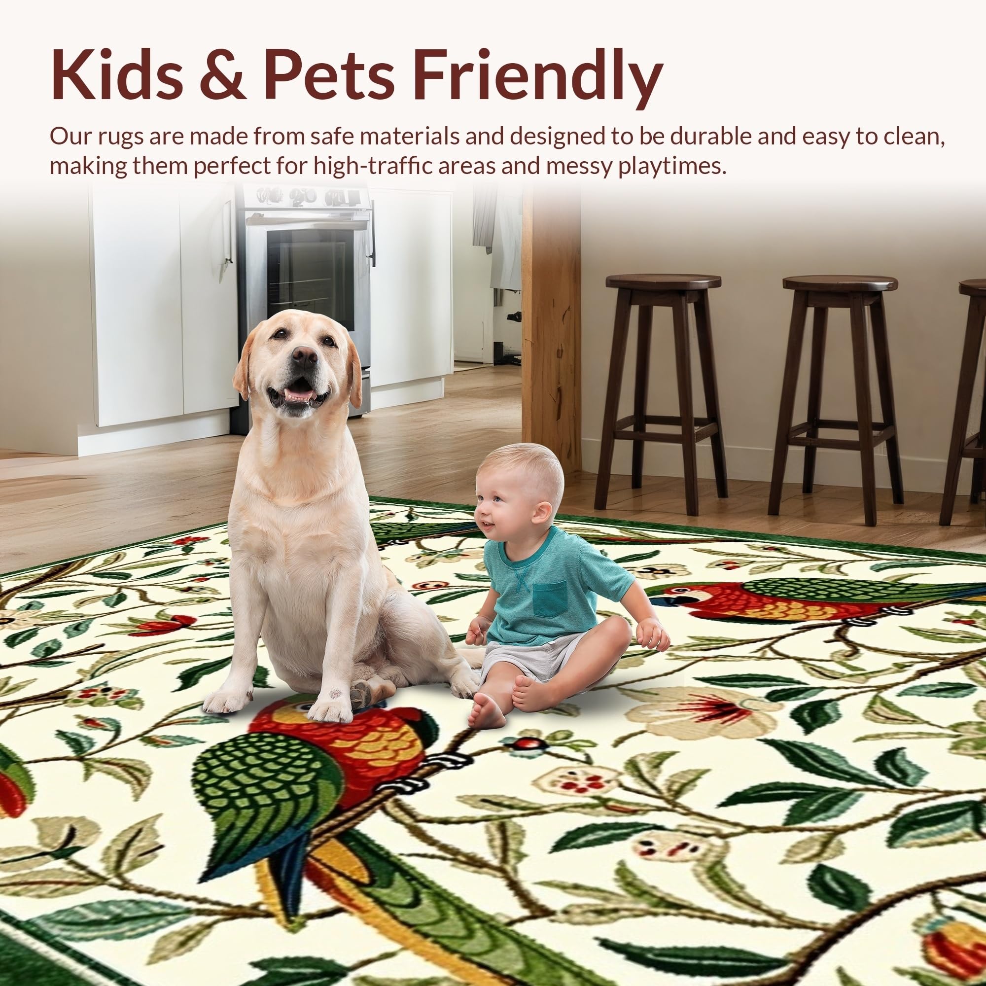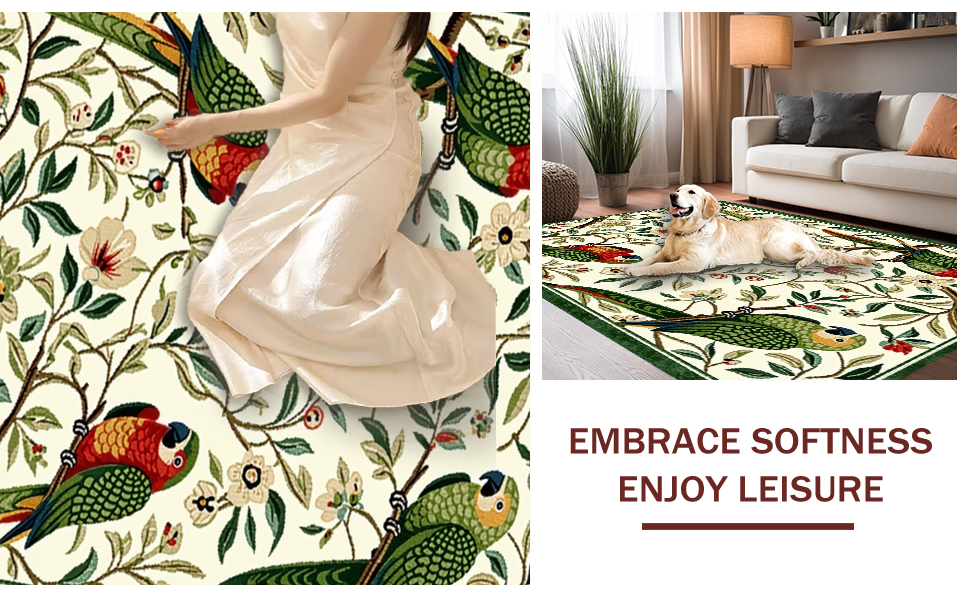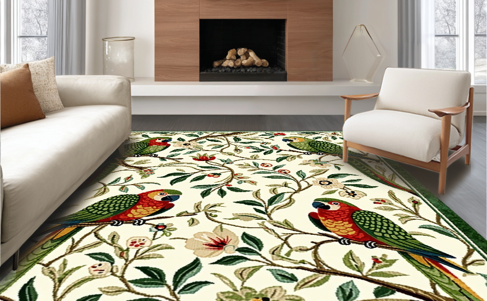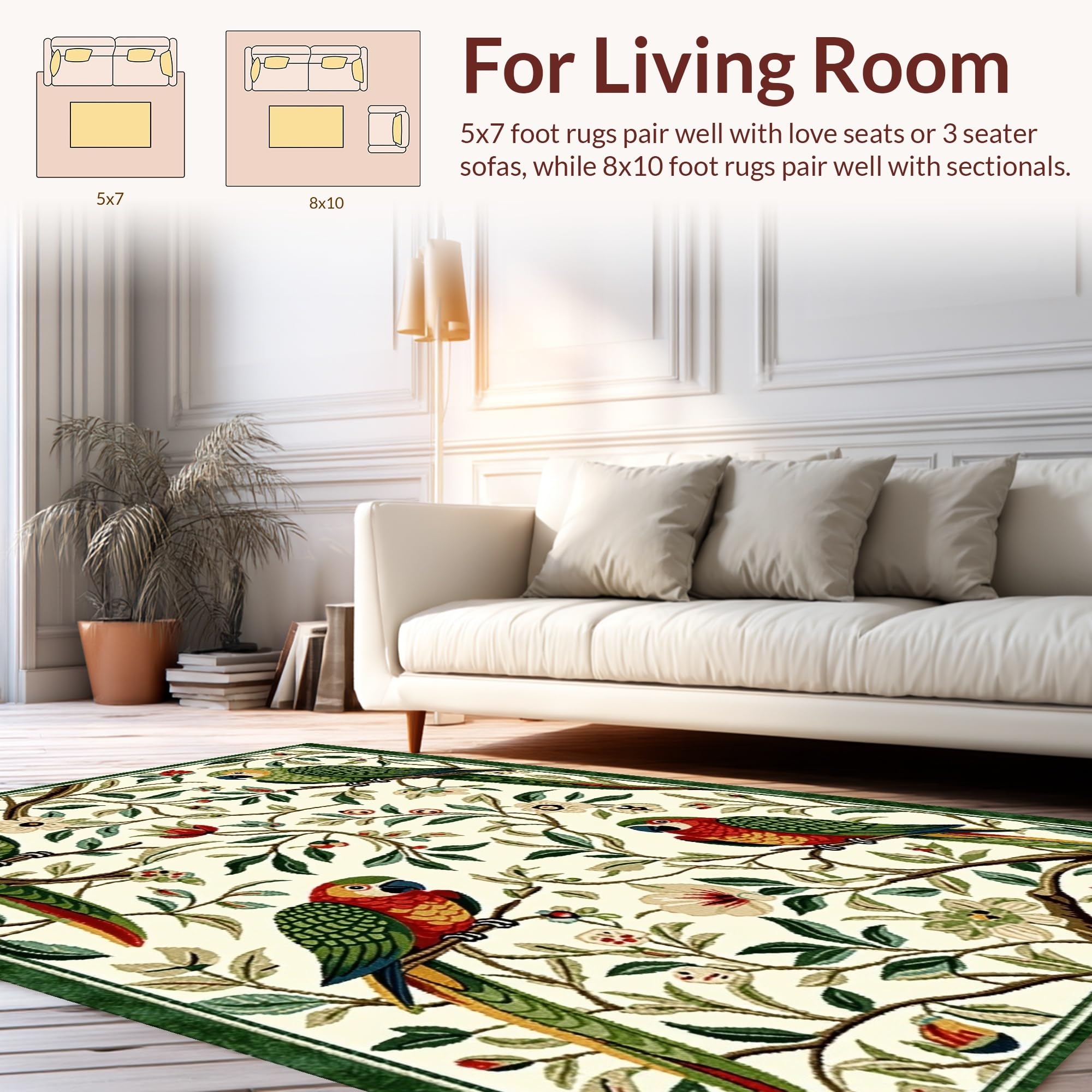 Ultra Soft Area Rug, Non Slip, Stain Resistant, Washable Area Rugs for Living Room, Bedroom, Luxurious Floral Medley Design(Ivory) Overview: