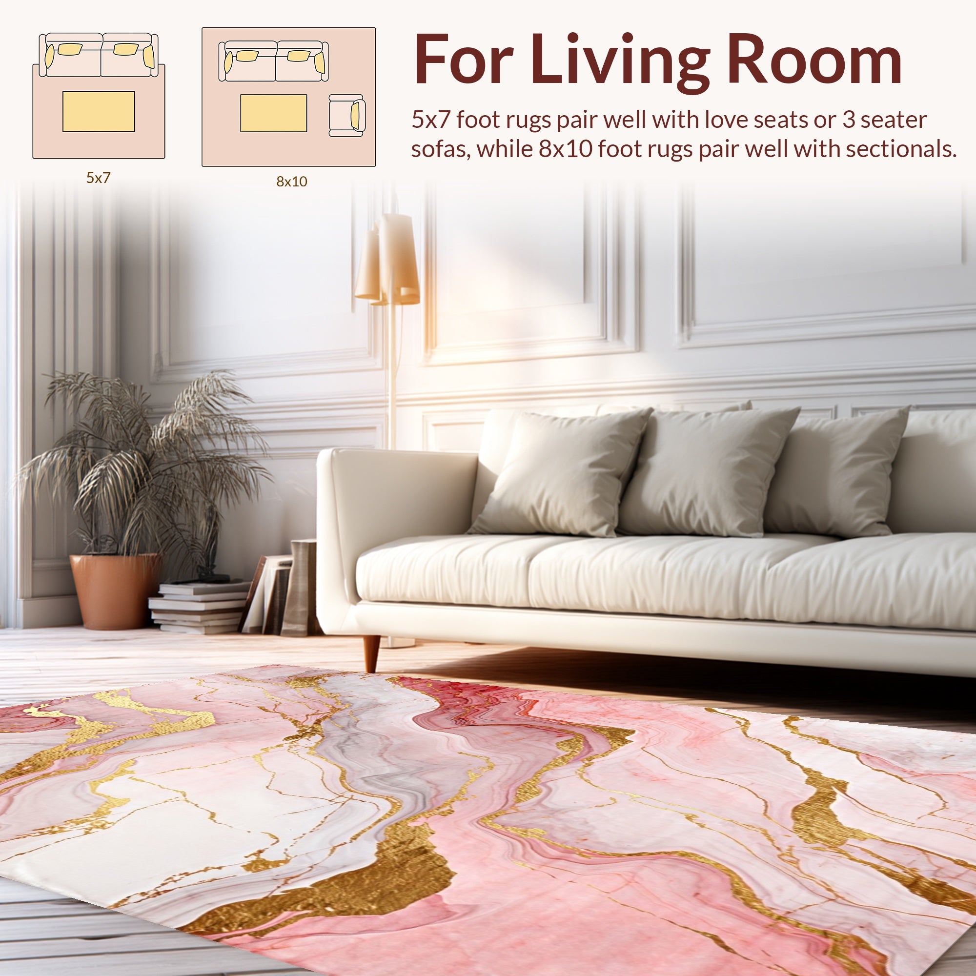 Flatwoven High Traffic Area Rug, Luxurious Fluid Geometric, Non Slip, Stain Resistant, Washable Area Rugs for Living Room, Bedroom (Pink) Overview: