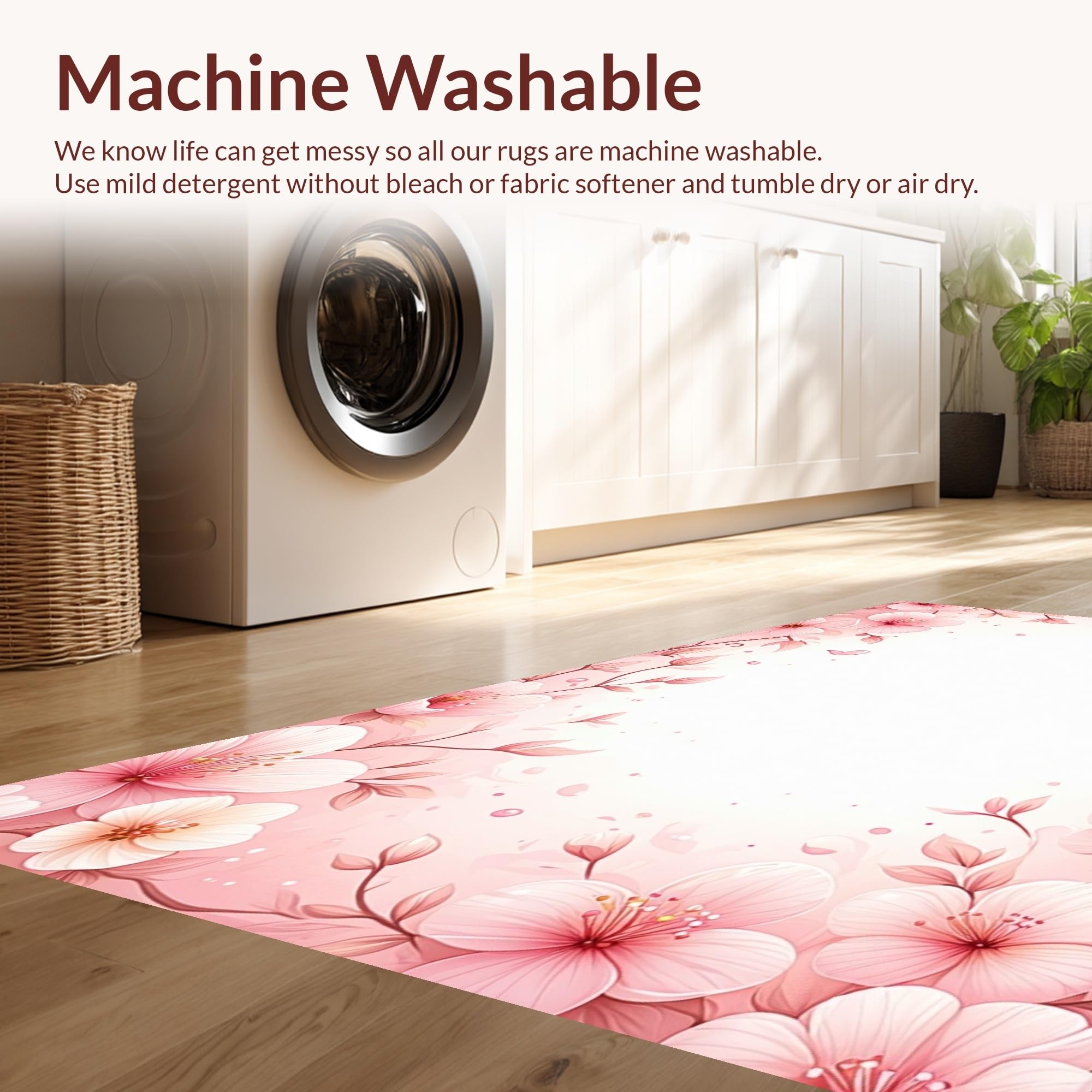 - Machine Washable: Our rugs can be easily thrown in the wash machine.