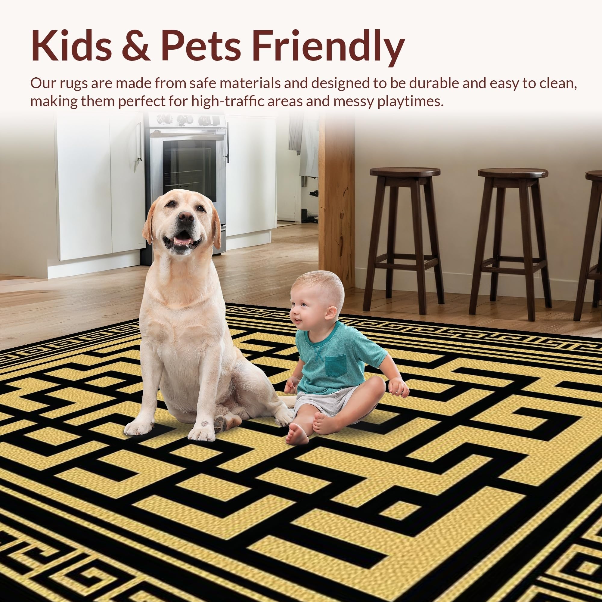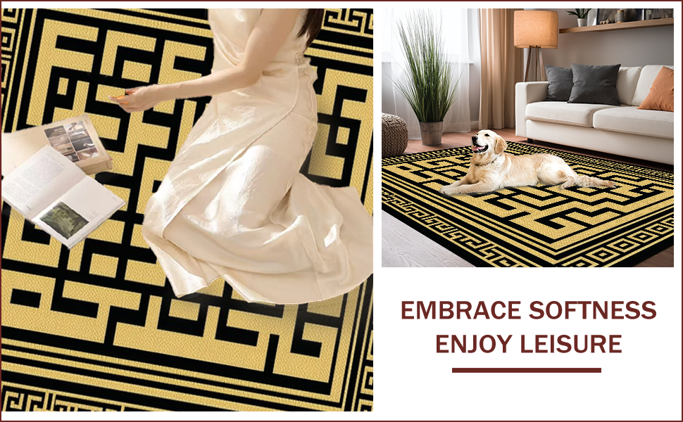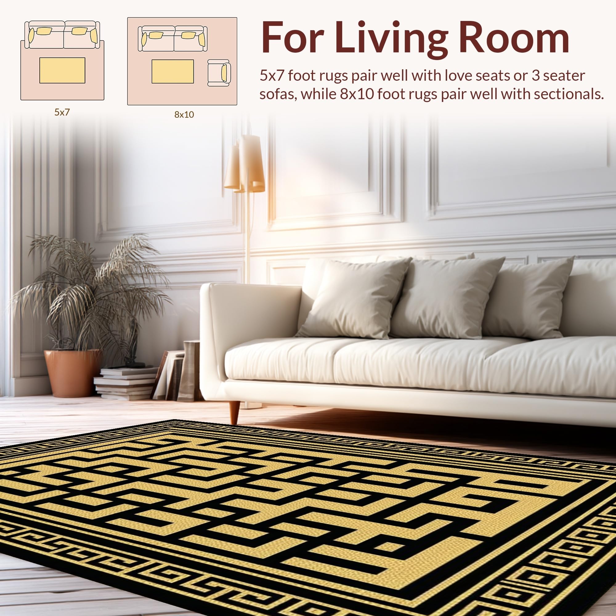 Ultra Soft Area Rug, Non Slip, Stain Resistant, Washable Area Rugs for Living Room, Bedroom, Luxurious Geometric Black and Gold(Gold) Overview:
