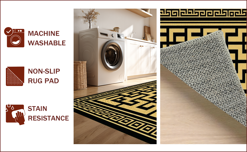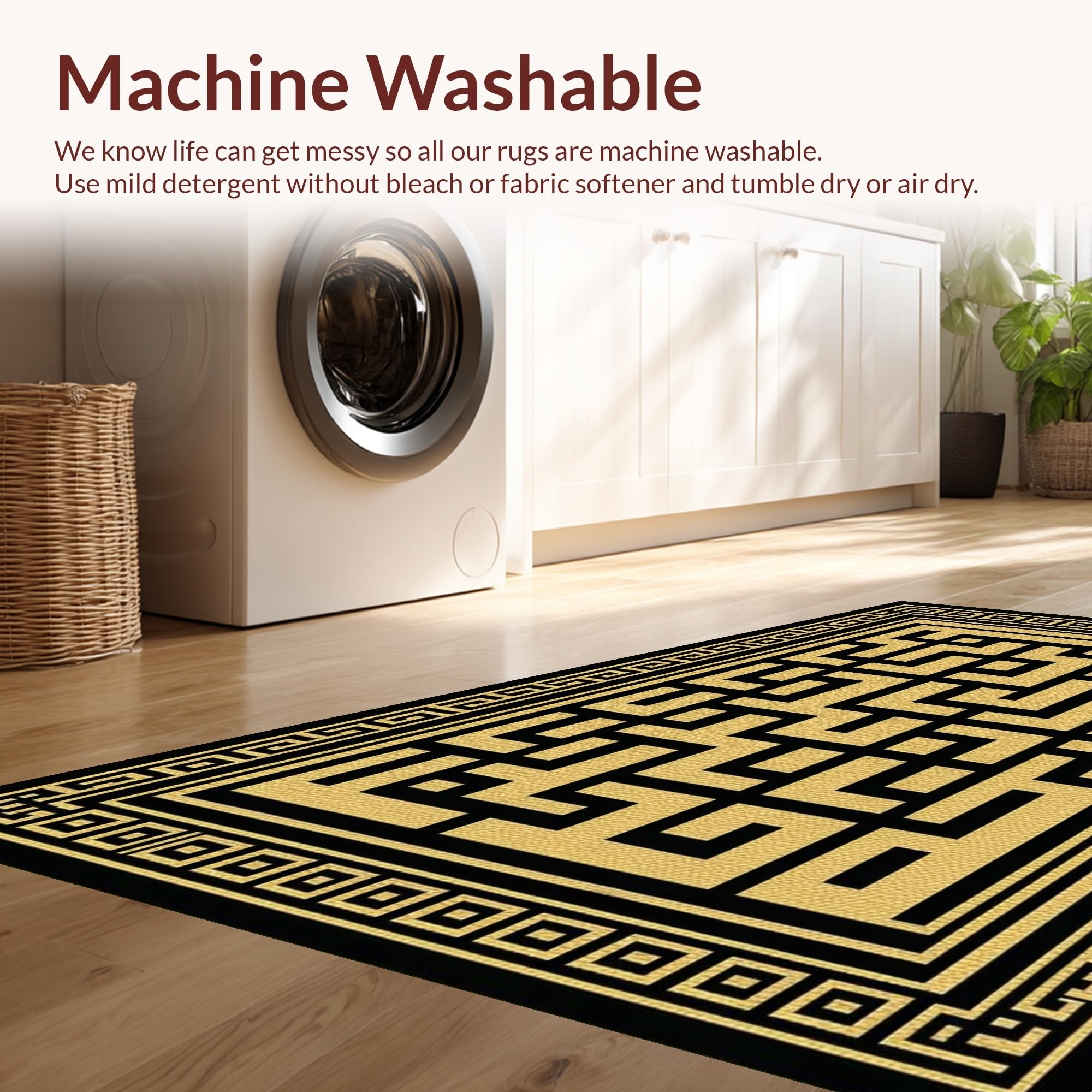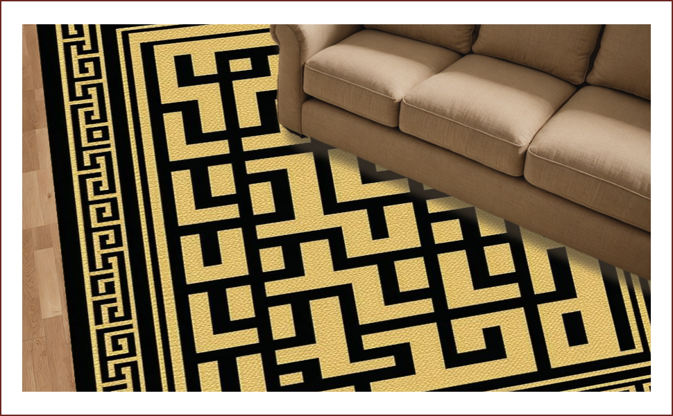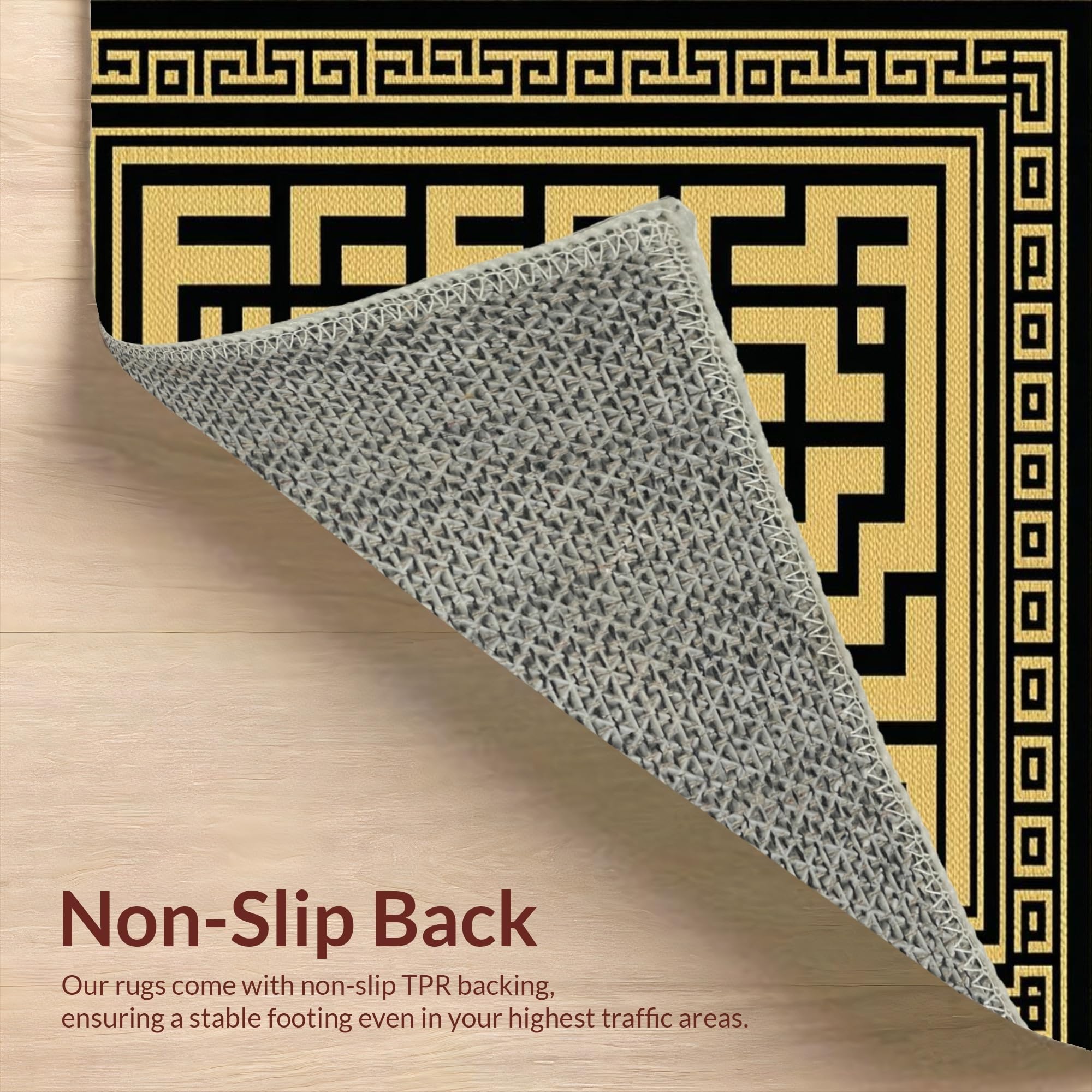 Ultra Soft Area Rug, Non Slip, Stain Resistant, Washable Area Rugs for Living Room, Bedroom, Luxurious Geometric Black and Gold(Gold) Overview: