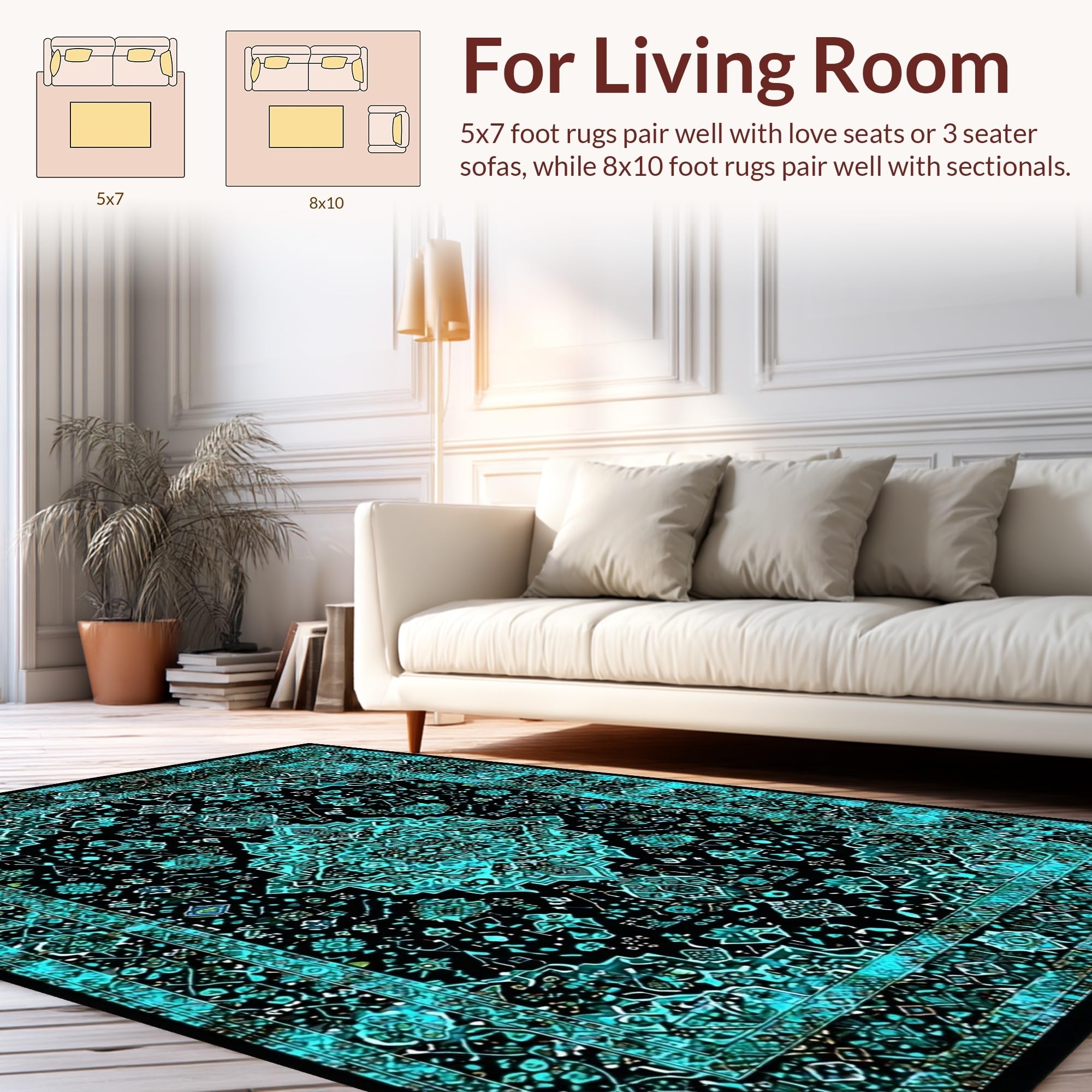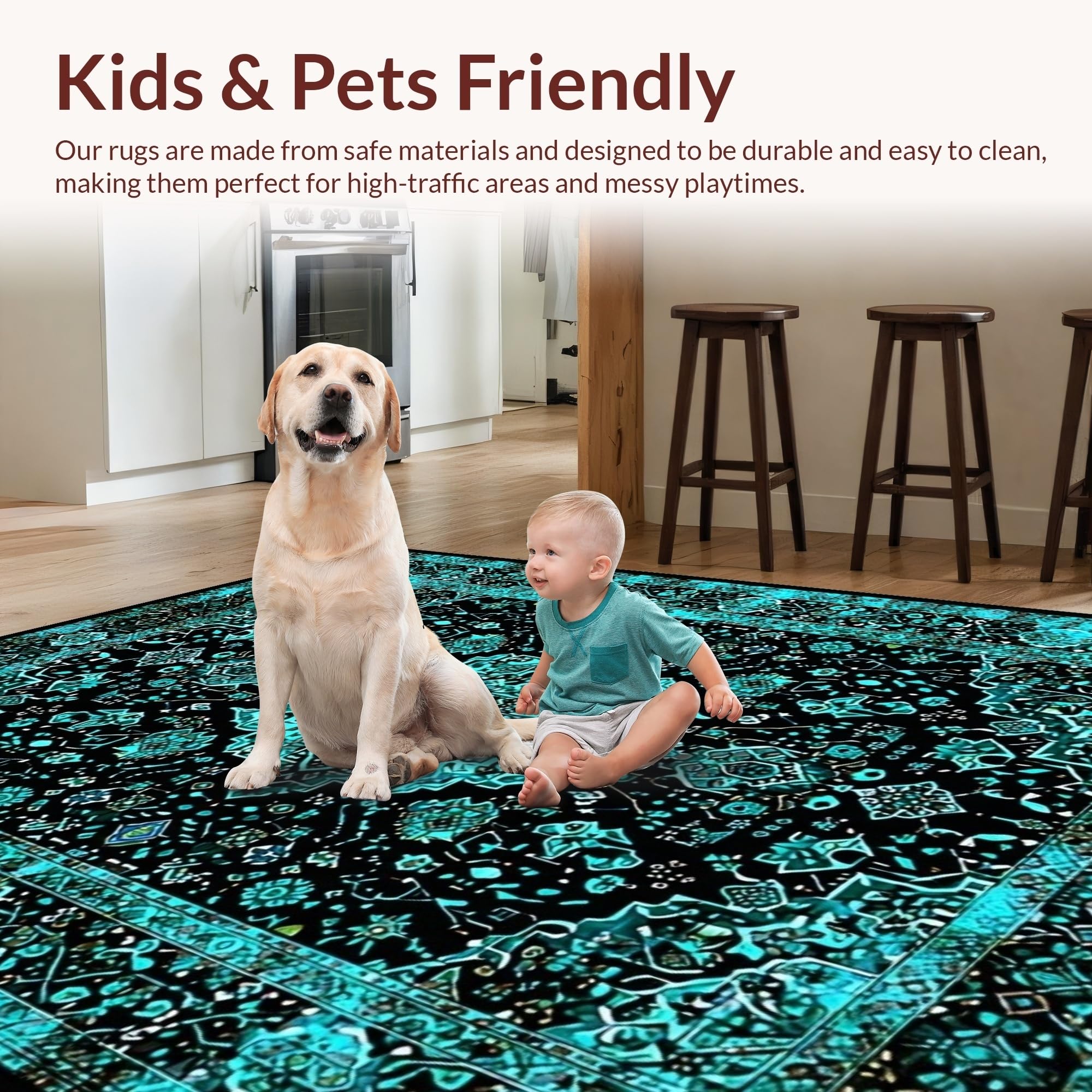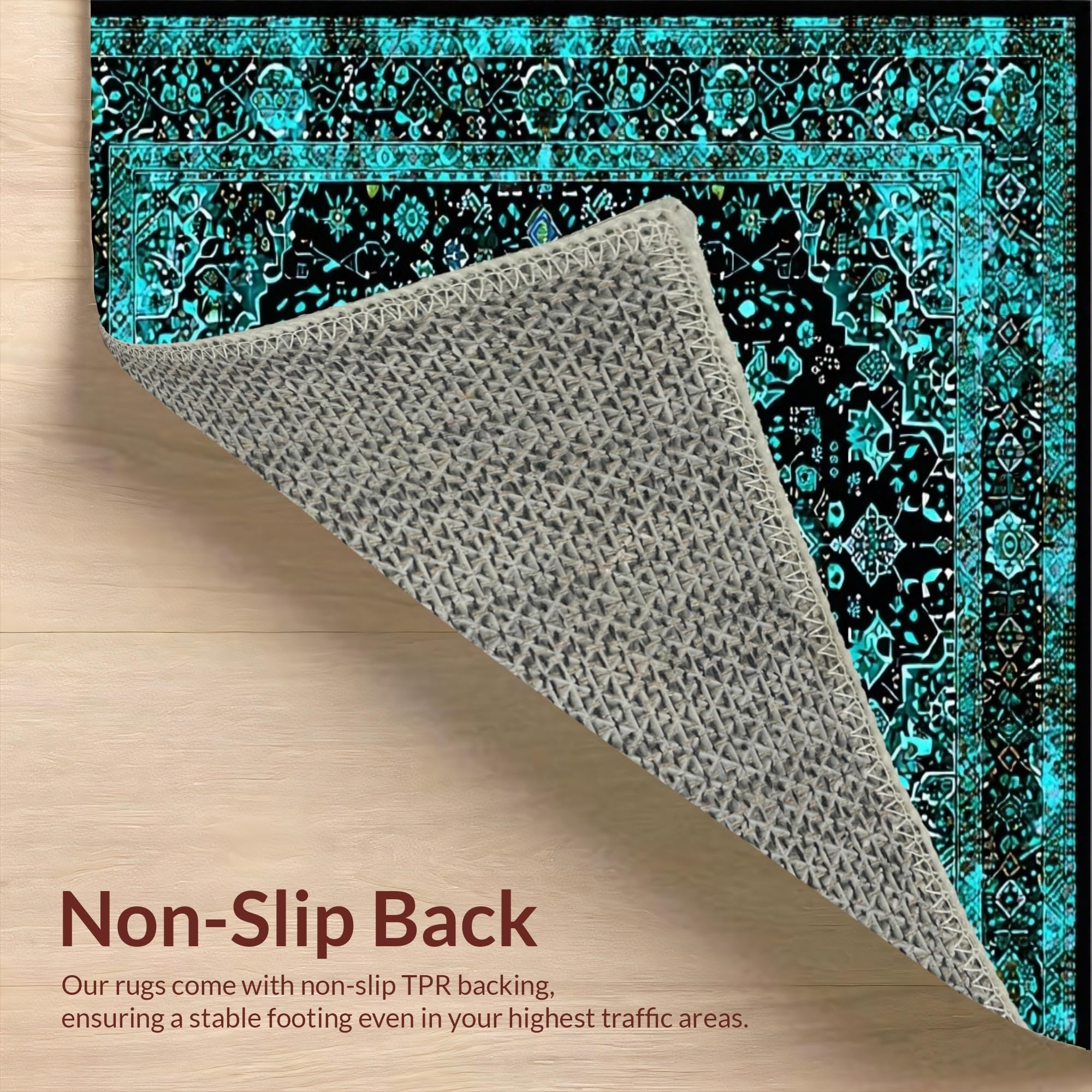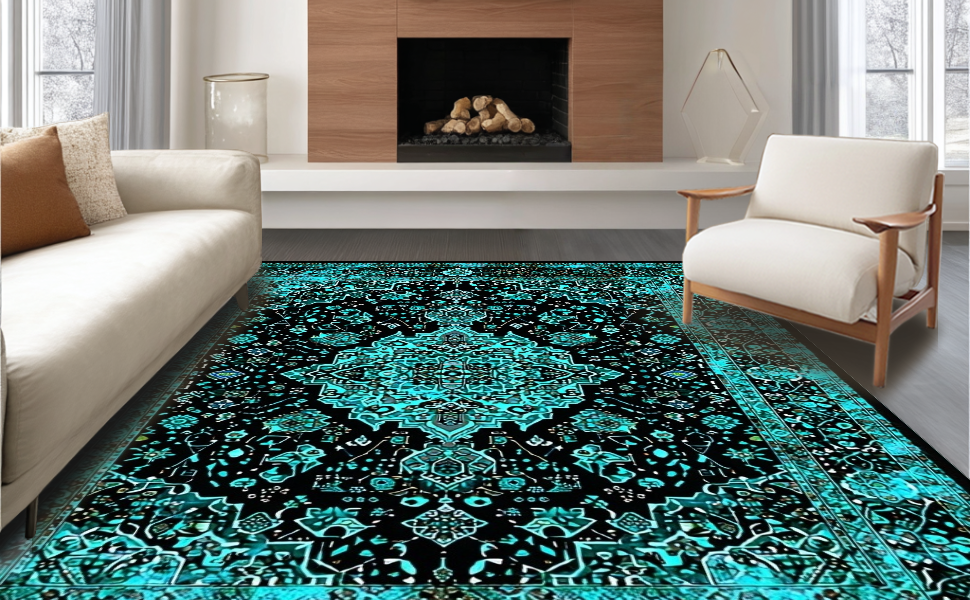Ultra Soft Area Rug, Non Slip, Stain Resistant, Washable Area Rugs for Living Room, Bedroom, Luxurious Geometric Blue Tones(Blue) Overview: