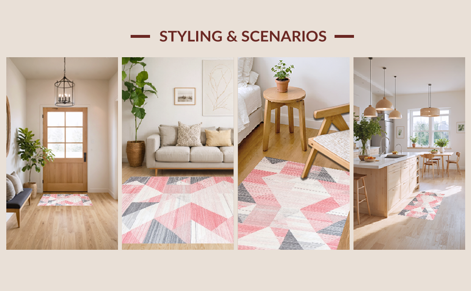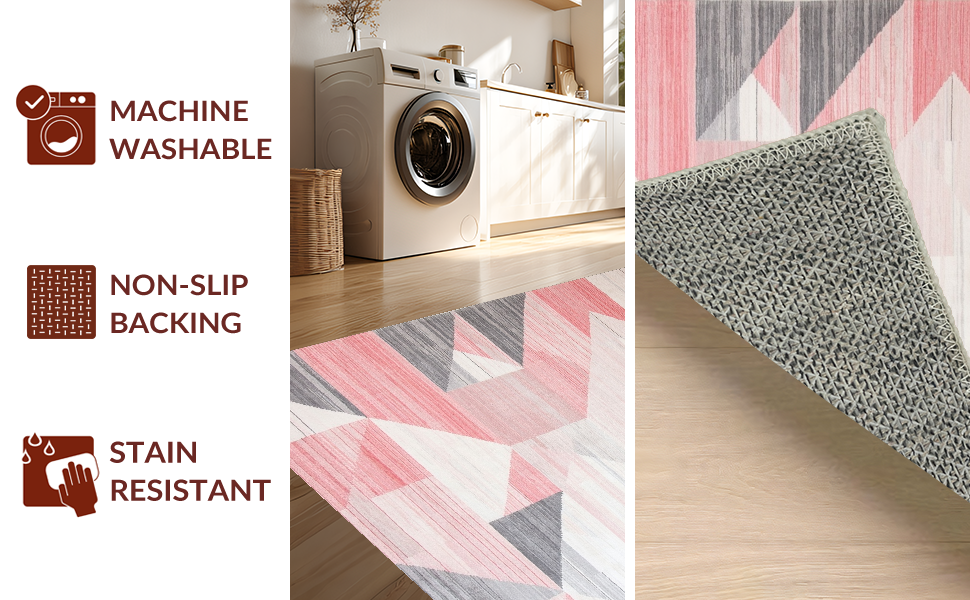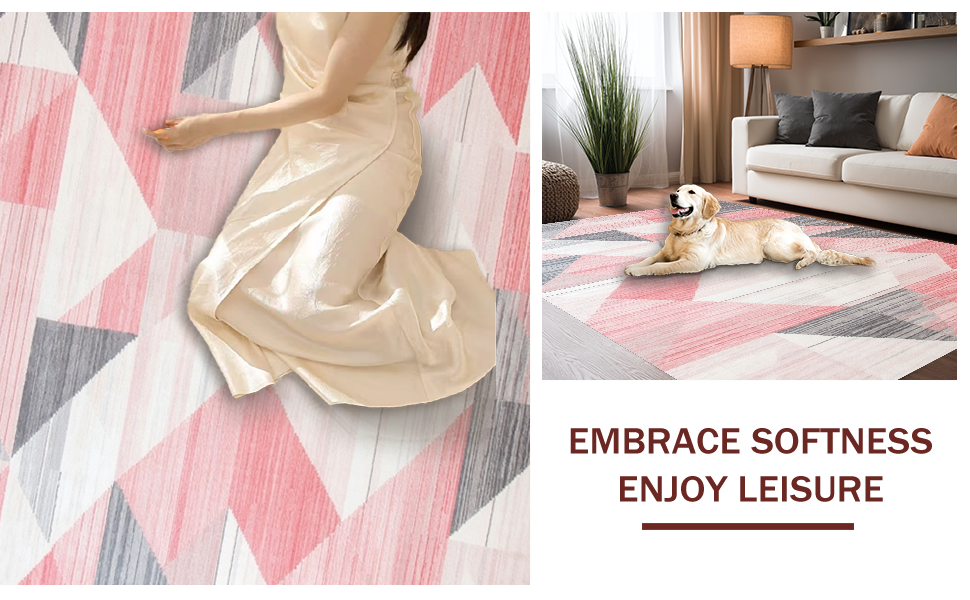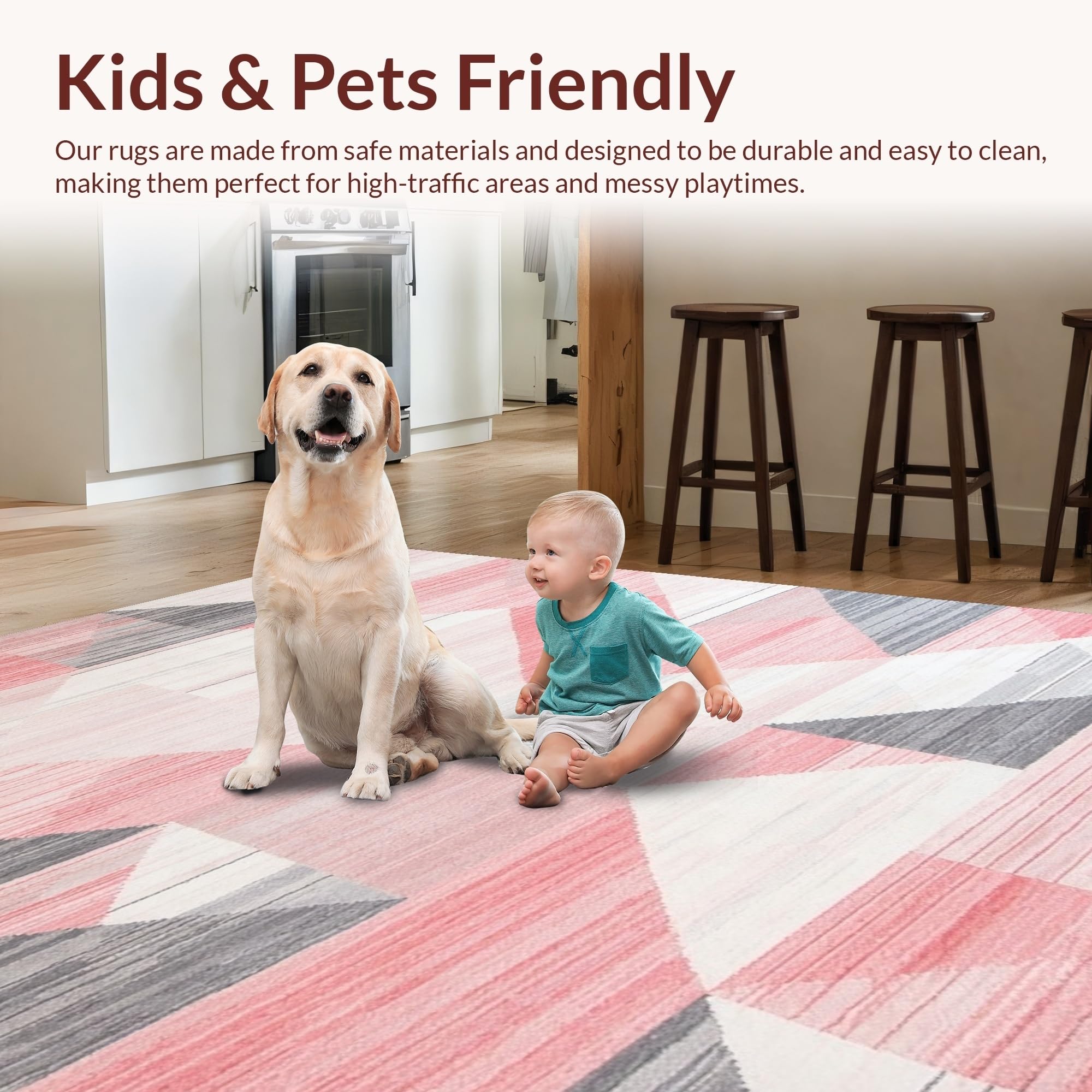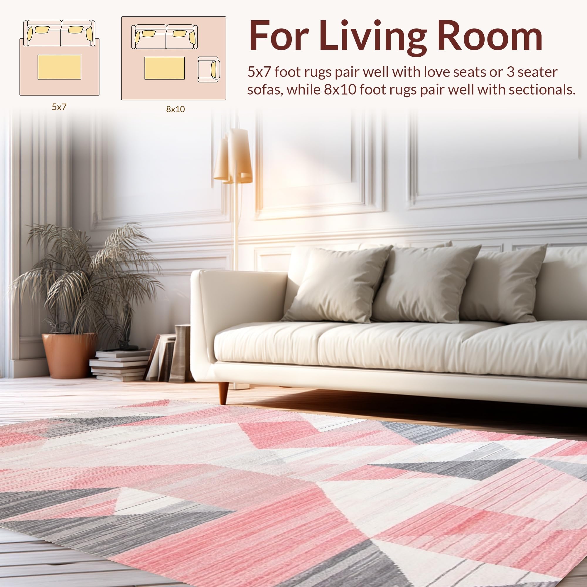 Ultra Soft Area Rug, Non Slip, Stain Resistant, Washable Area Rugs for Living Room, Bedroom, Luxurious Geometric Blush Display(Pink) Overview: