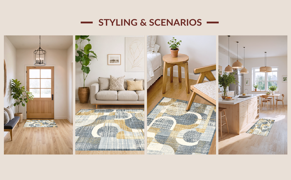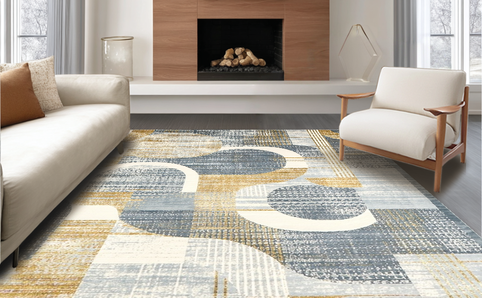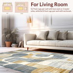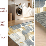 Ultra Soft Area Rug, Non Slip, Stain Resistant, Washable Area Rugs for Living Room, Bedroom, Luxurious Geometric Gold Highlights(Gray) Overview: