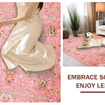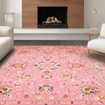 Ultra Soft Area Rug, Non Slip, Stain Resistant, Washable Area Rugs for Living Room, Bedroom, Luxurious Gold Ethnic Patterns(Pink) Overview: