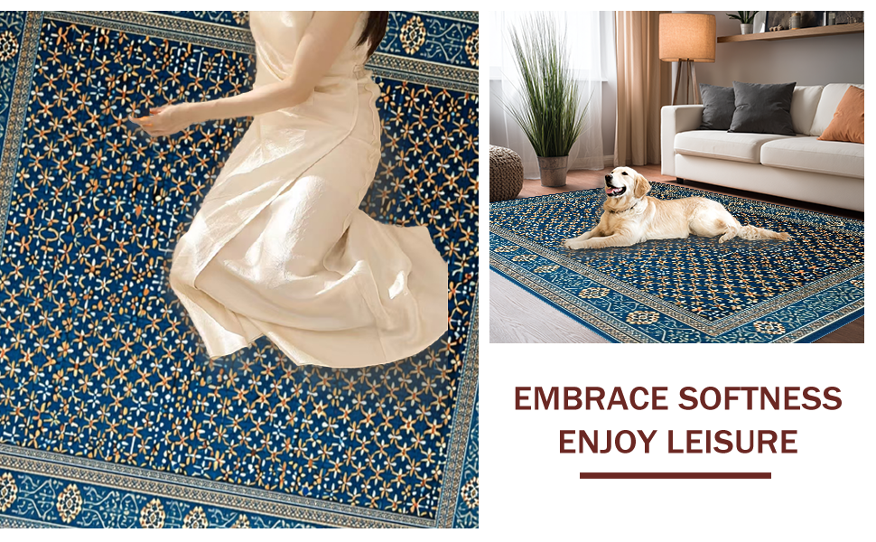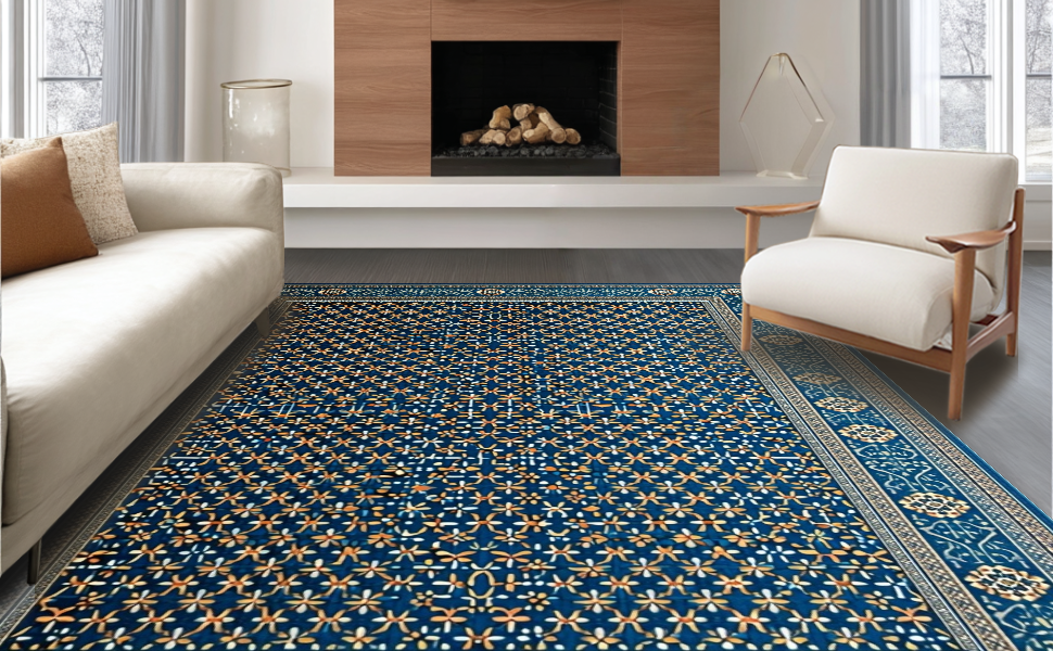 Ultra Soft Area Rug, Non Slip, Stain Resistant, Washable Area Rugs for Living Room, Bedroom, Luxurious Gray Medallion Aesthetic(Blue) Overview: