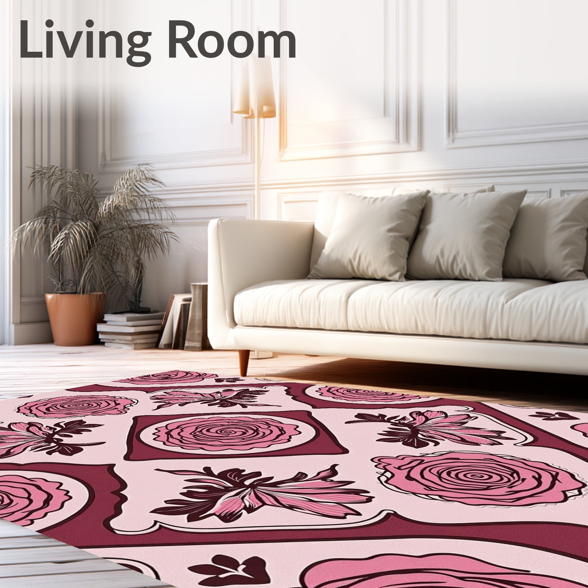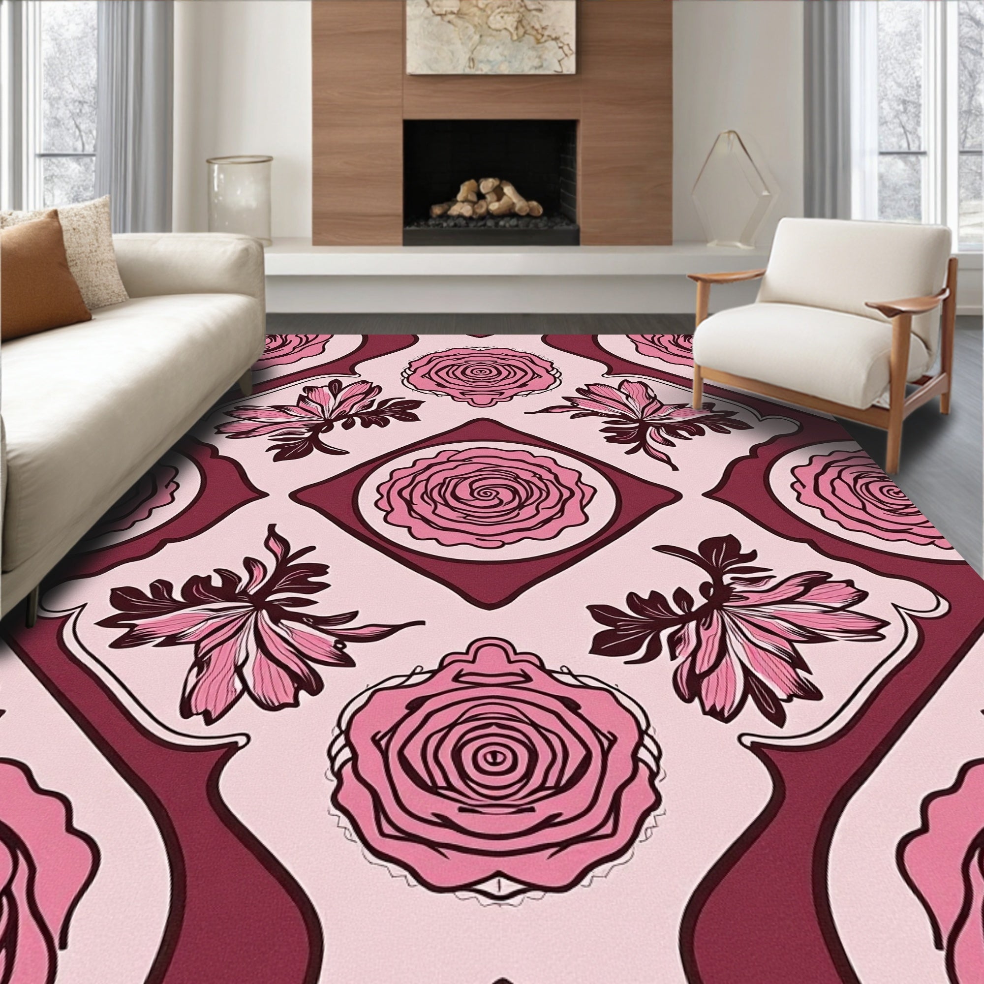 Ultra Soft Area Rug, Non Slip, Stain Resistant, Washable Area Rugs for Living Room, Bedroom, Luxurious Heritage Petal Jubilee With Timeless Artistic Touch(Pink) Overview: