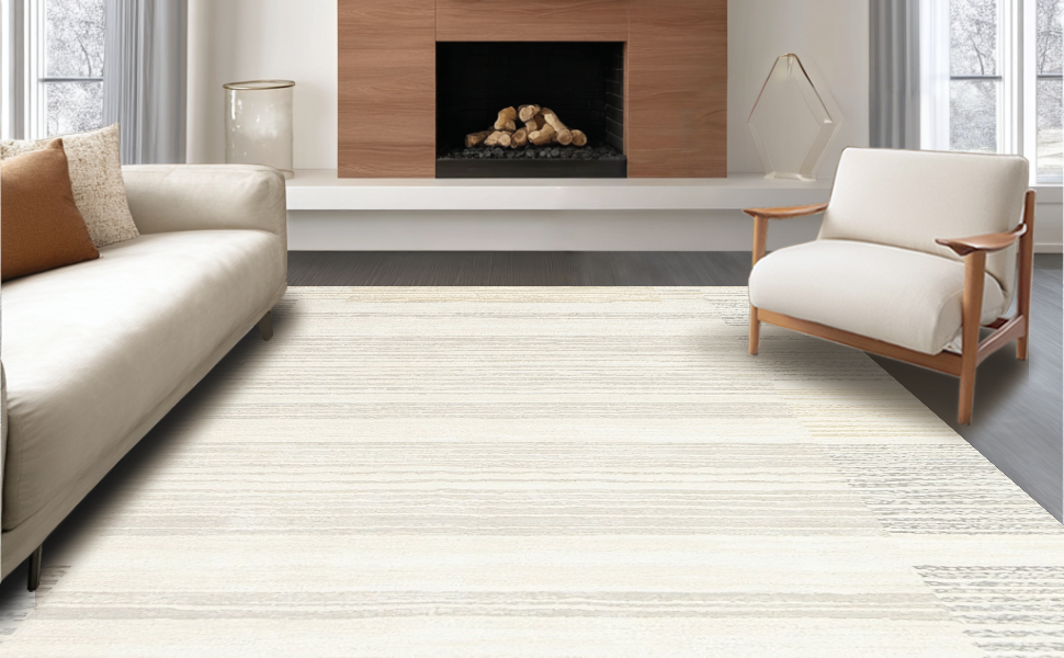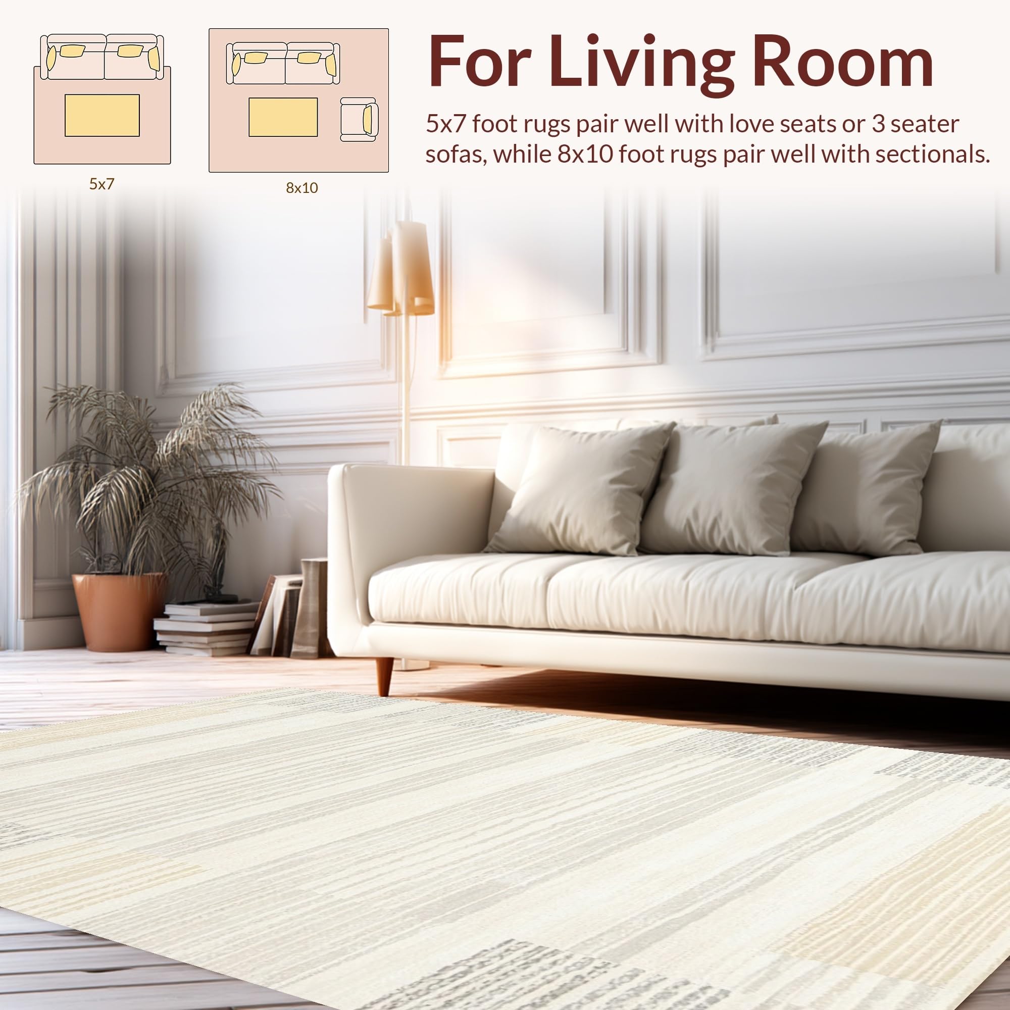 Ultra Soft Area Rug, Non Slip, Stain Resistant, Washable Area Rugs for Living Room, Bedroom, Luxurious High-Low Textured Motif(Beige) Overview: