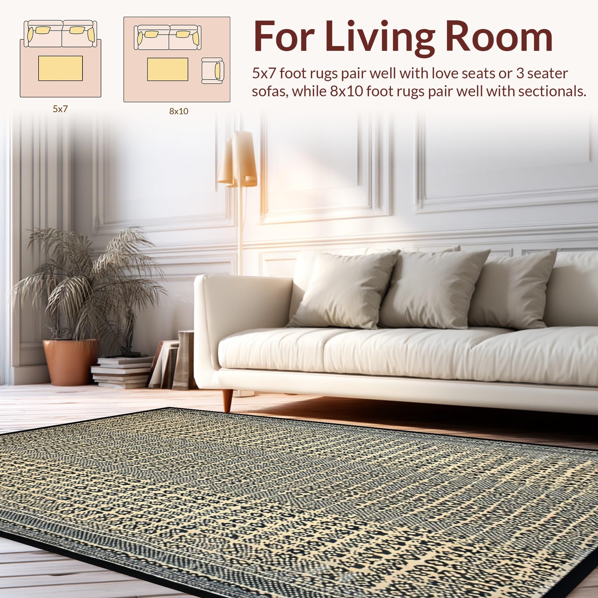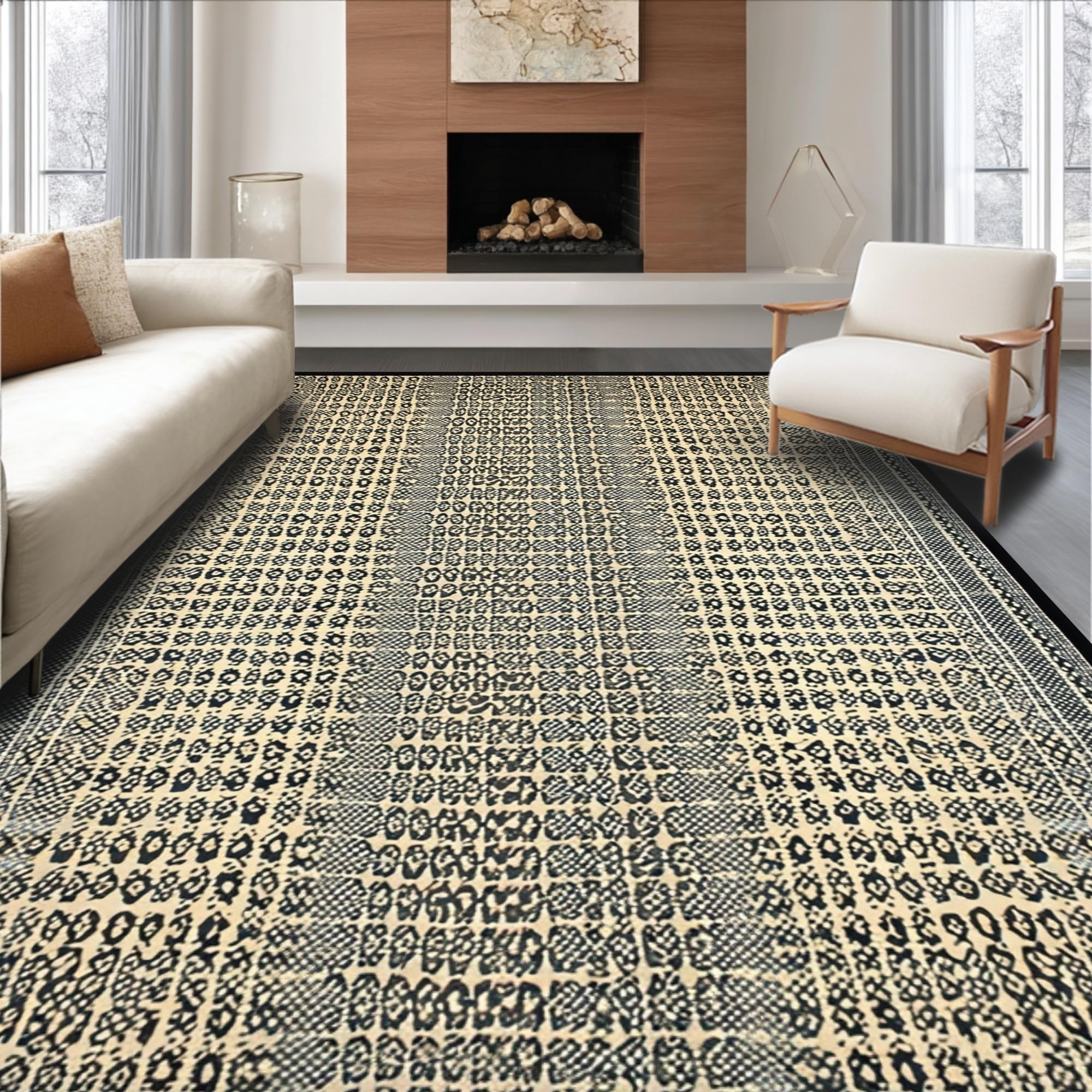 Ultra Soft Area Rug, Non Slip, Stain Resistant, Washable Area Rugs for Living Room, Bedroom, Luxurious Ivory Animal Texture(Beige) Overview: