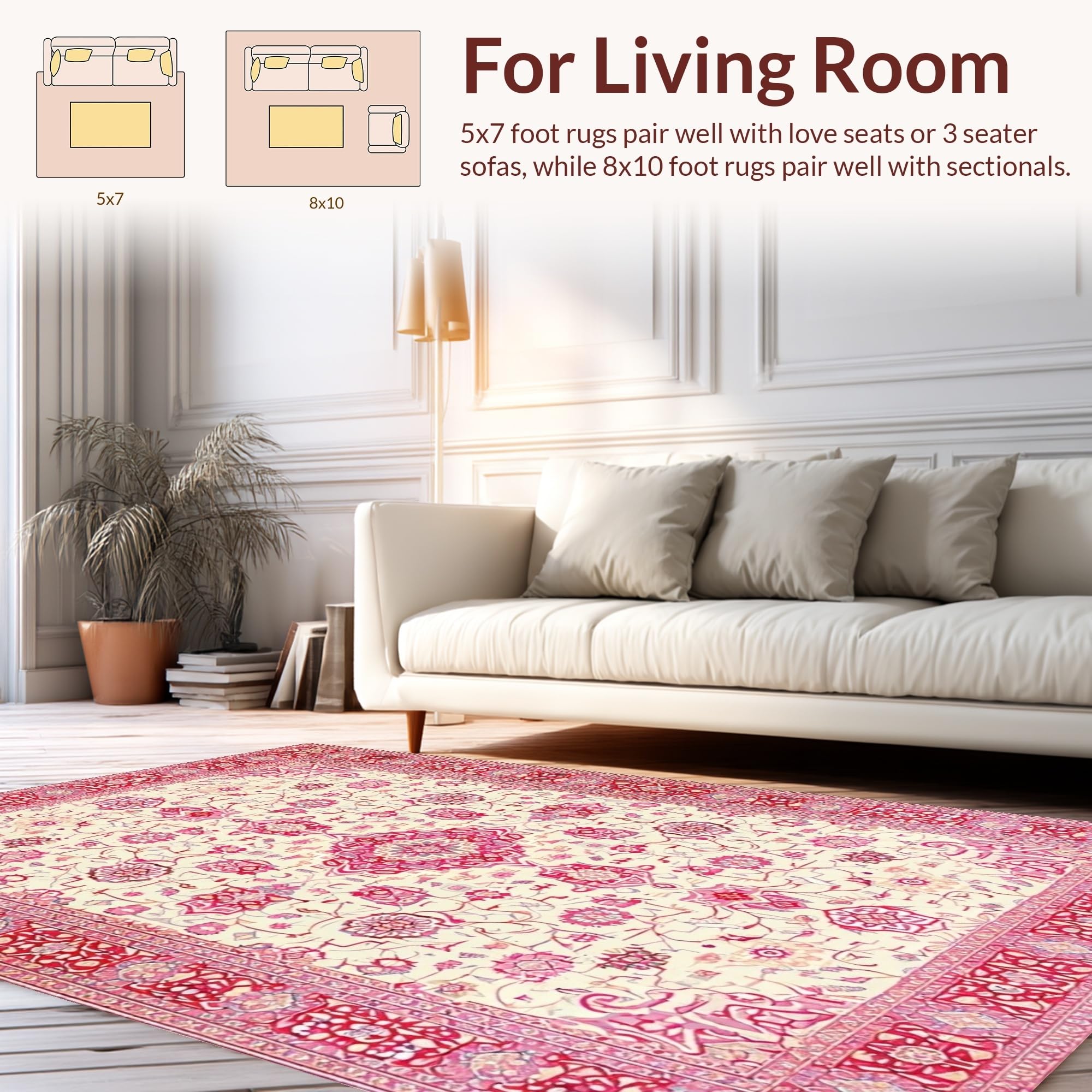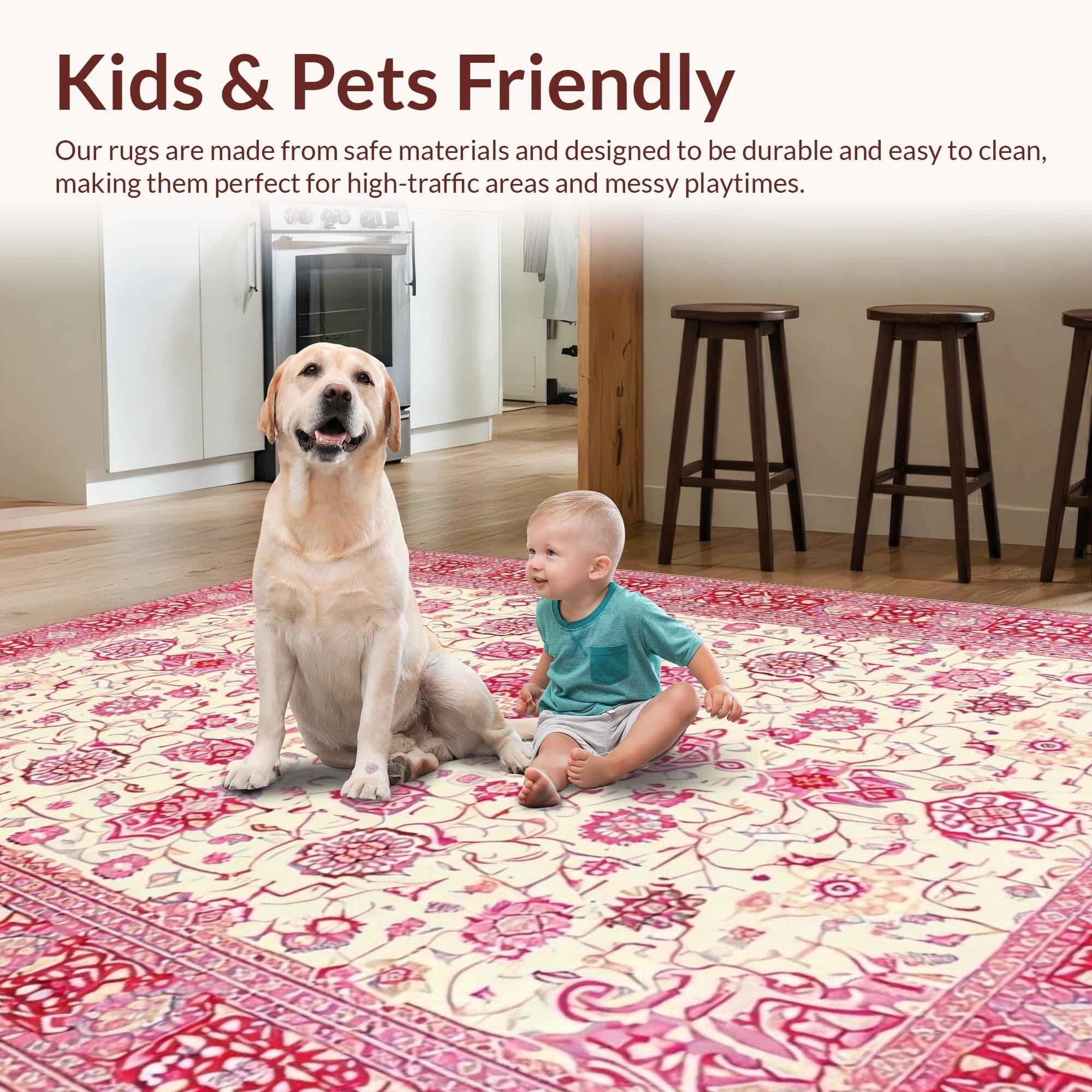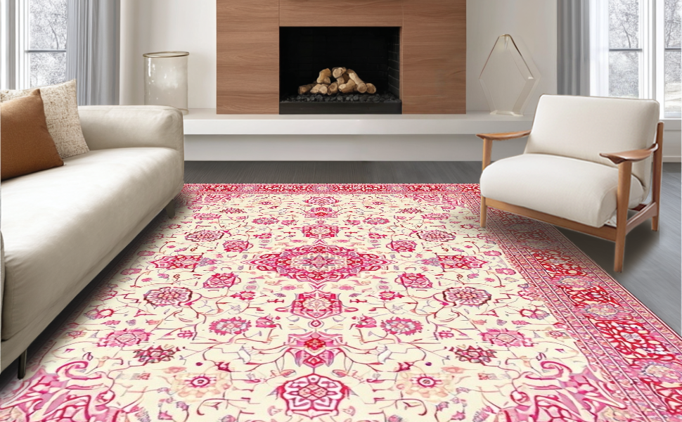 Ultra Soft Area Rug, Non Slip, Stain Resistant, Washable Area Rugs for Living Room, Bedroom, Luxurious Ivory Trellis Design(Ivory) Overview: