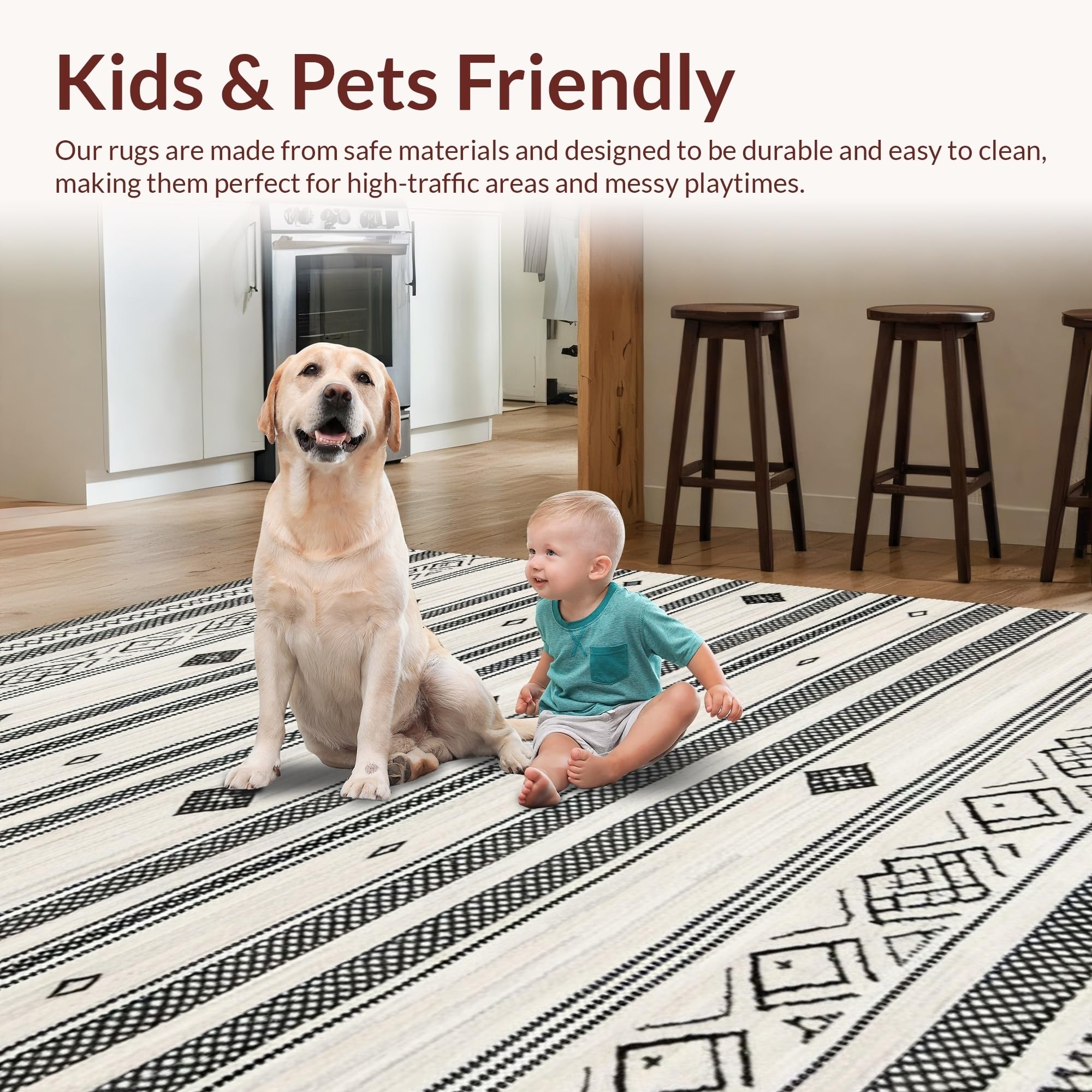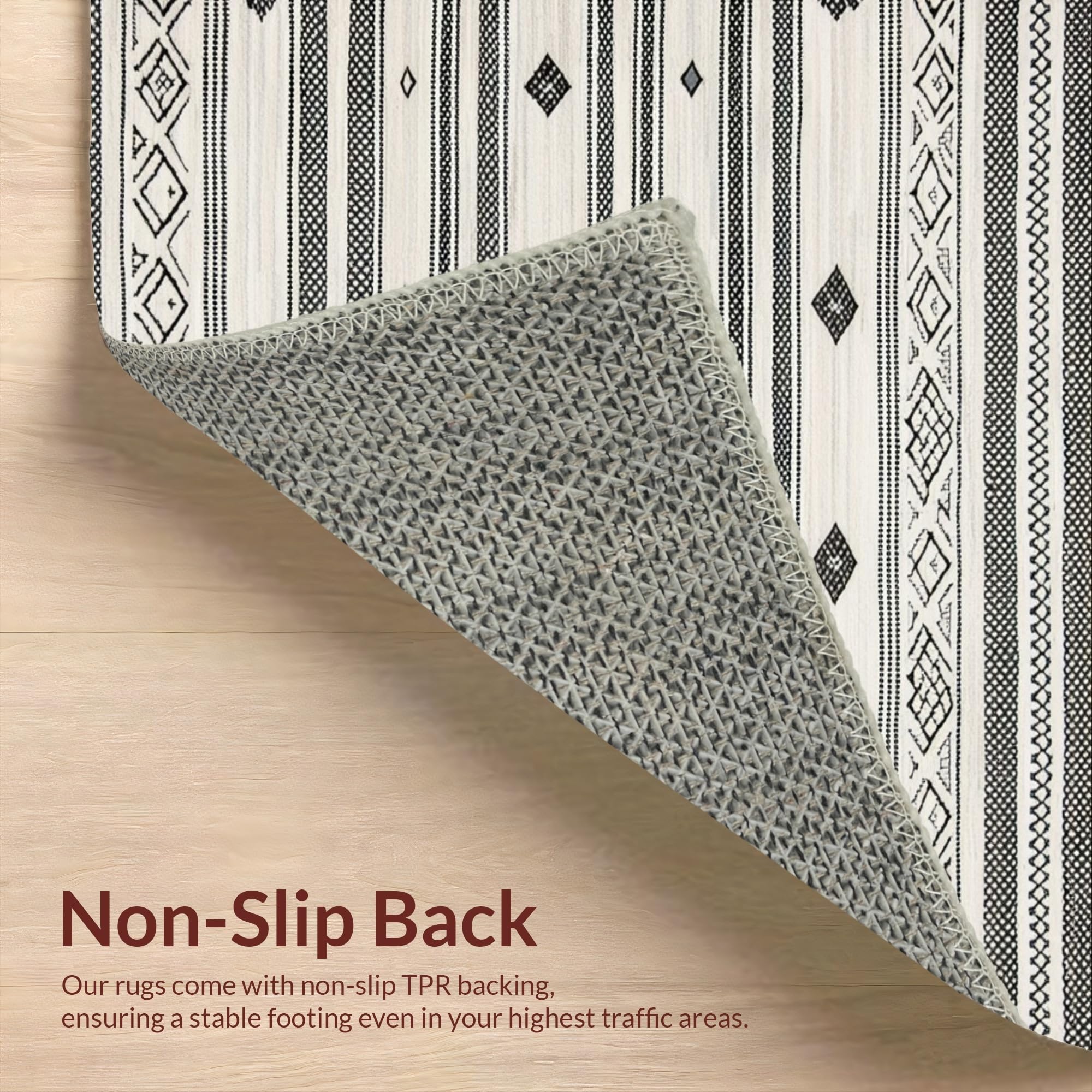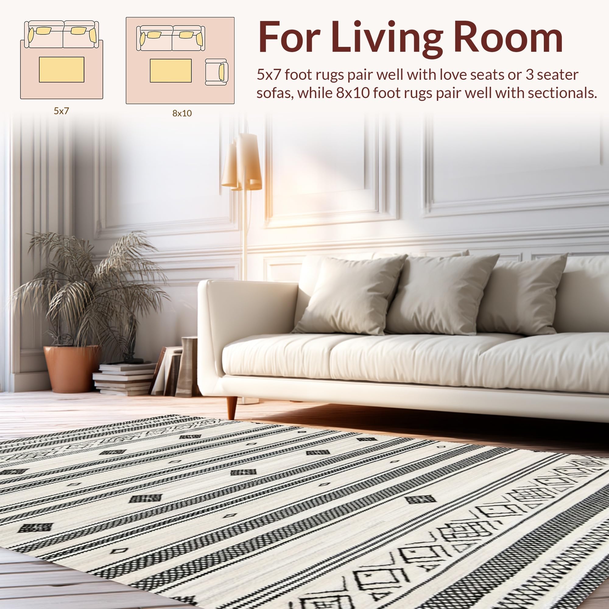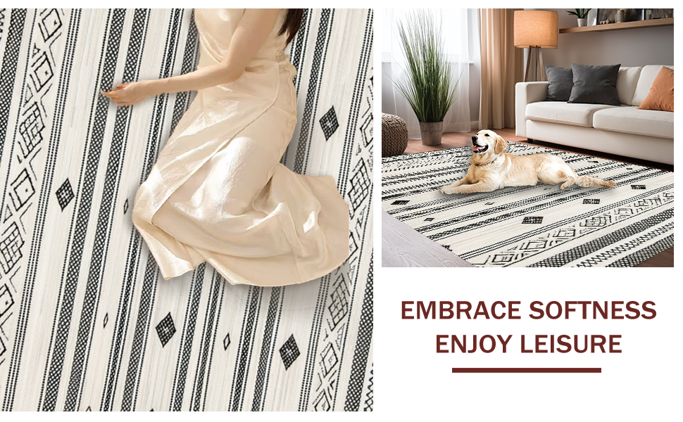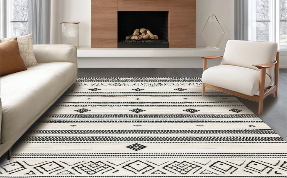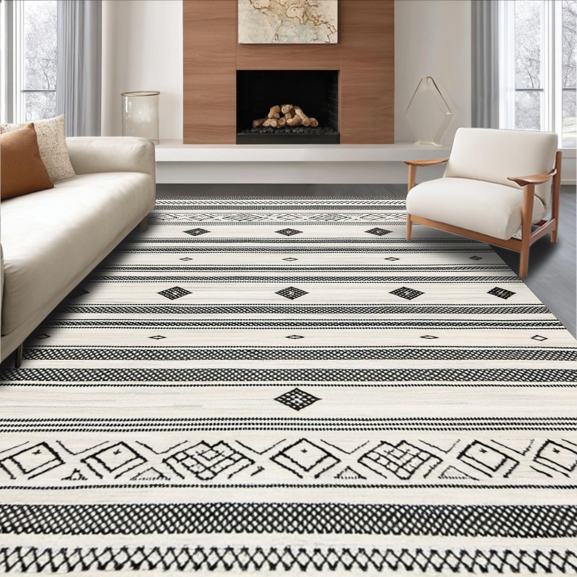 Ultra Soft Area Rug, Non Slip, Stain Resistant, Washable Area Rugs for Living Room, Bedroom, Luxurious Lattice Cream and Ebony(Black) Overview: