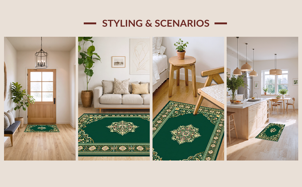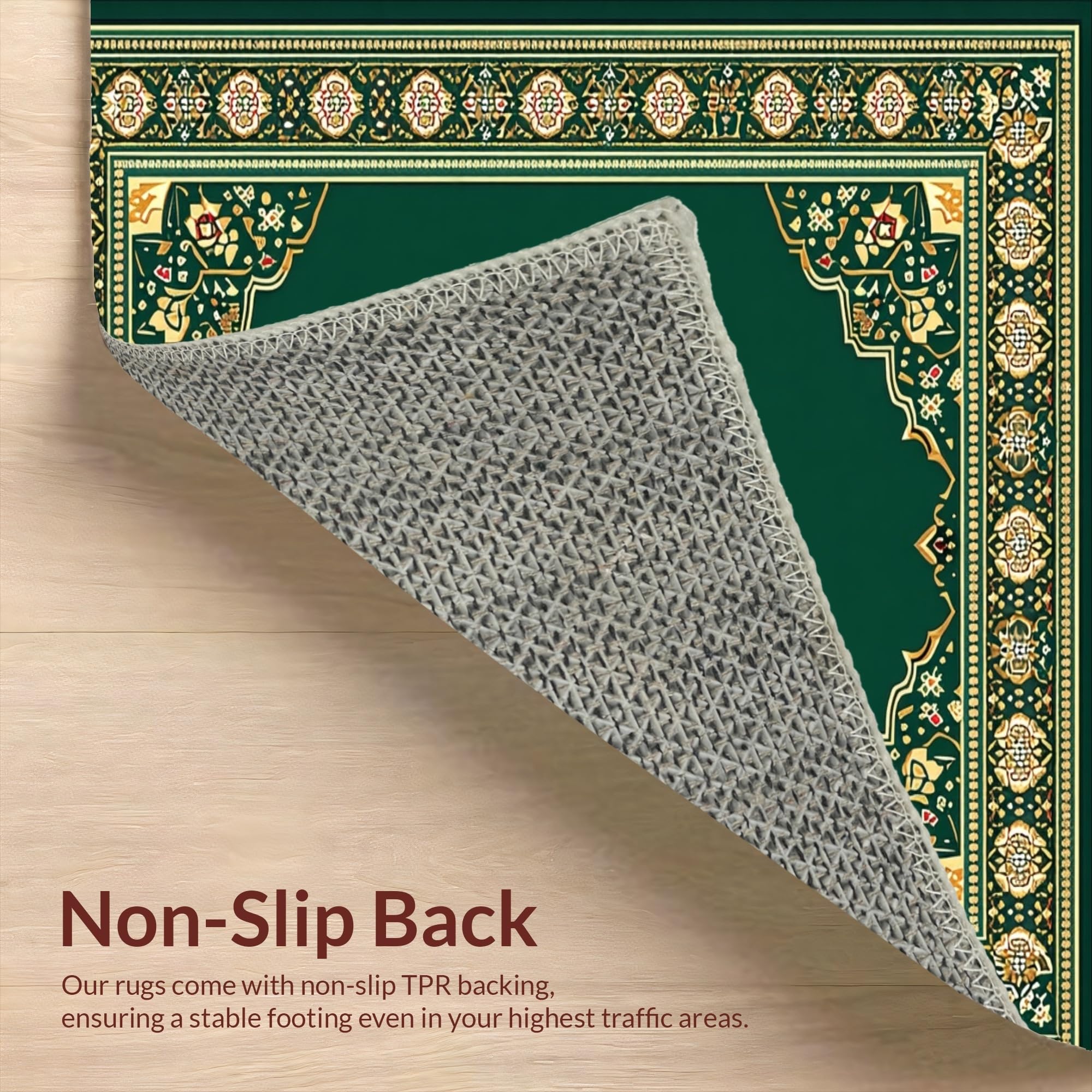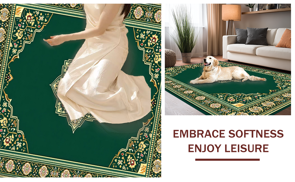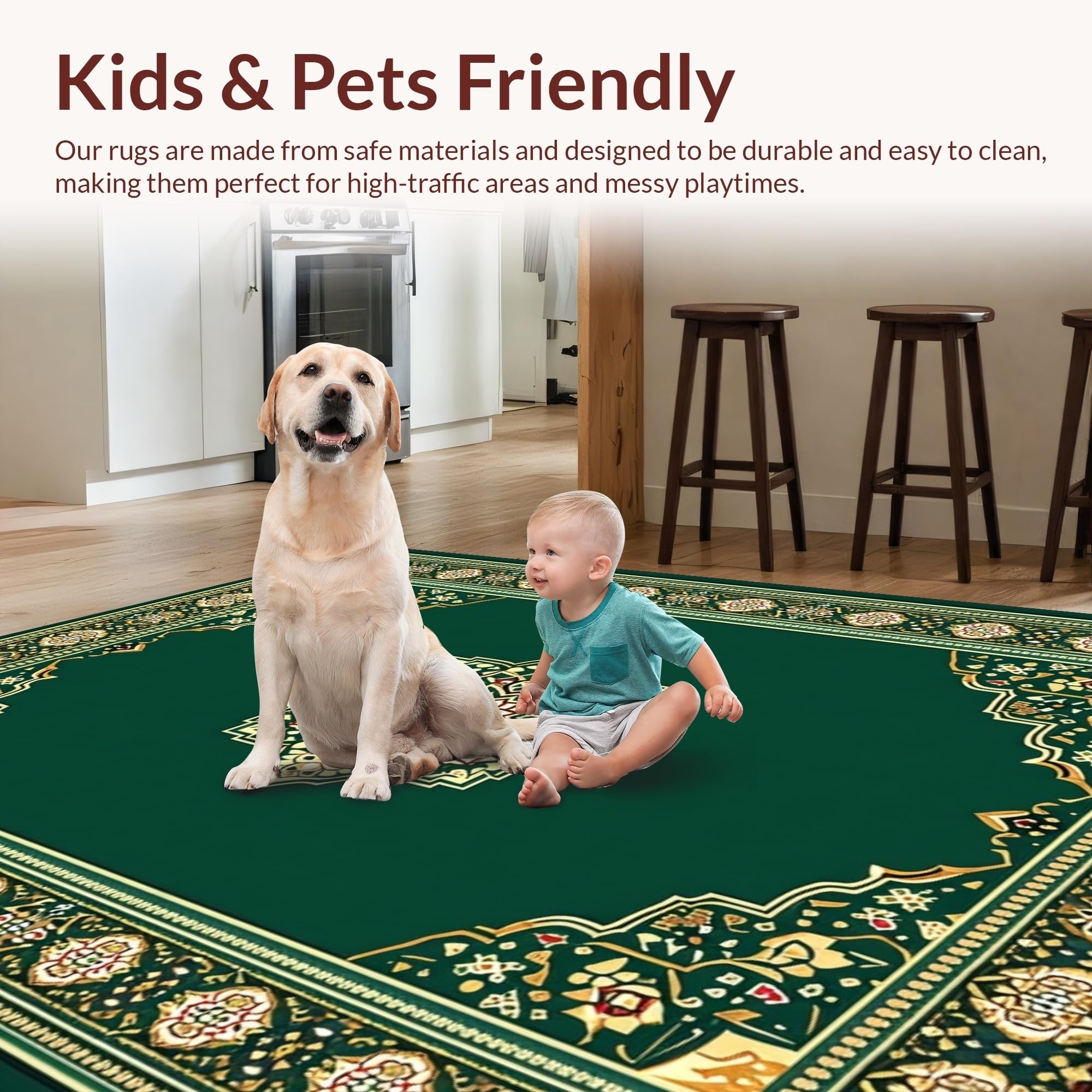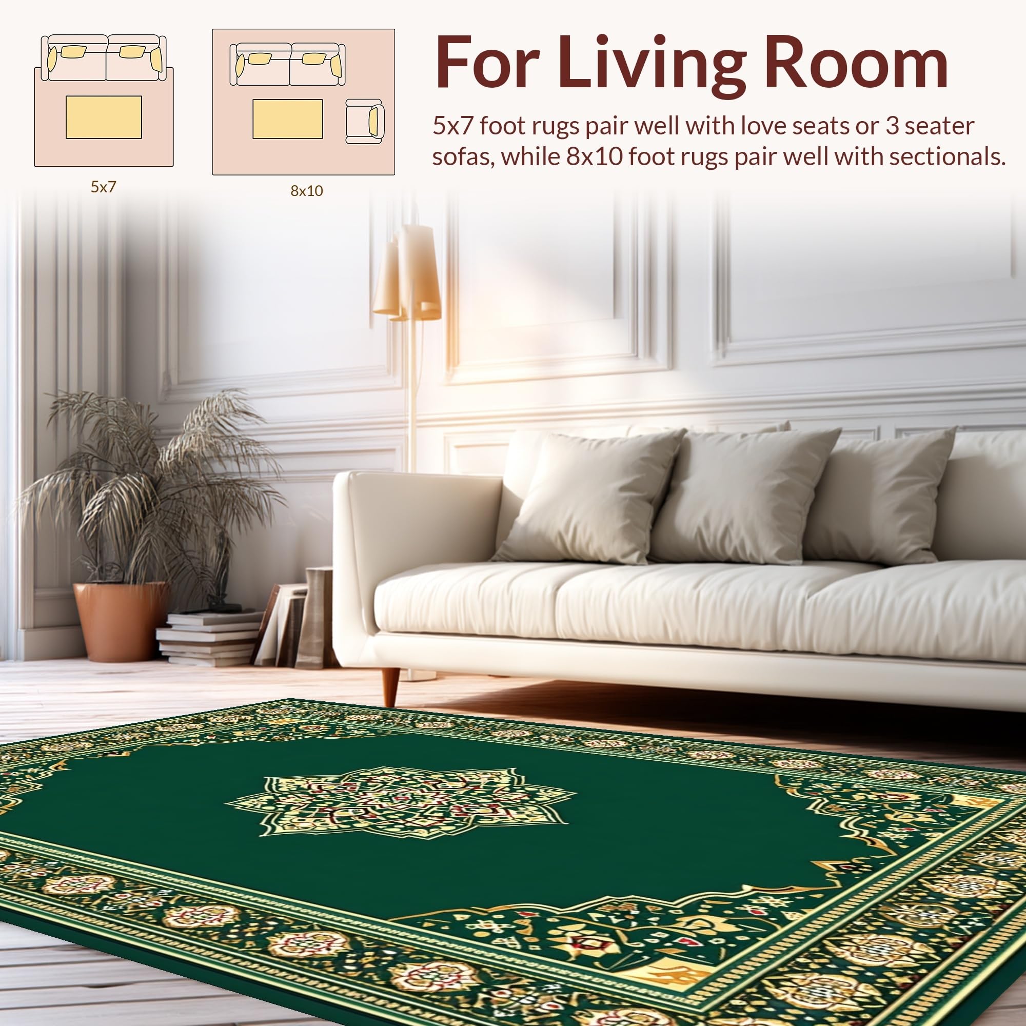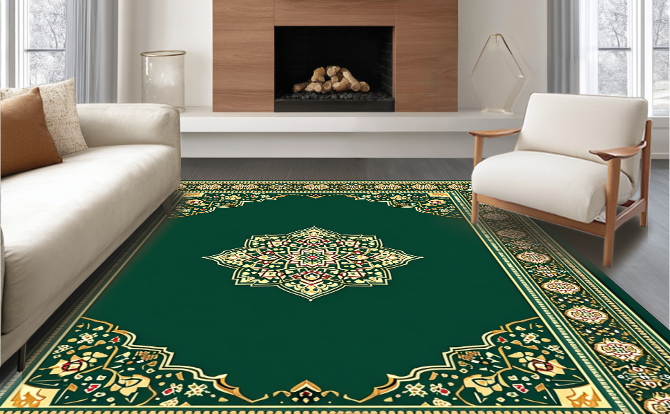 Ultra Soft Area Rug, Non Slip, Stain Resistant, Washable Area Rugs for Living Room, Bedroom, Luxurious Lattice Pattern in Gold(Green) Overview: