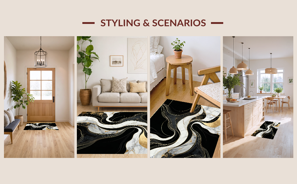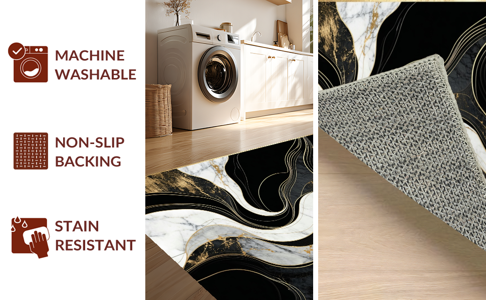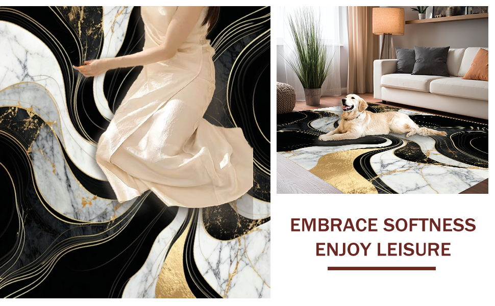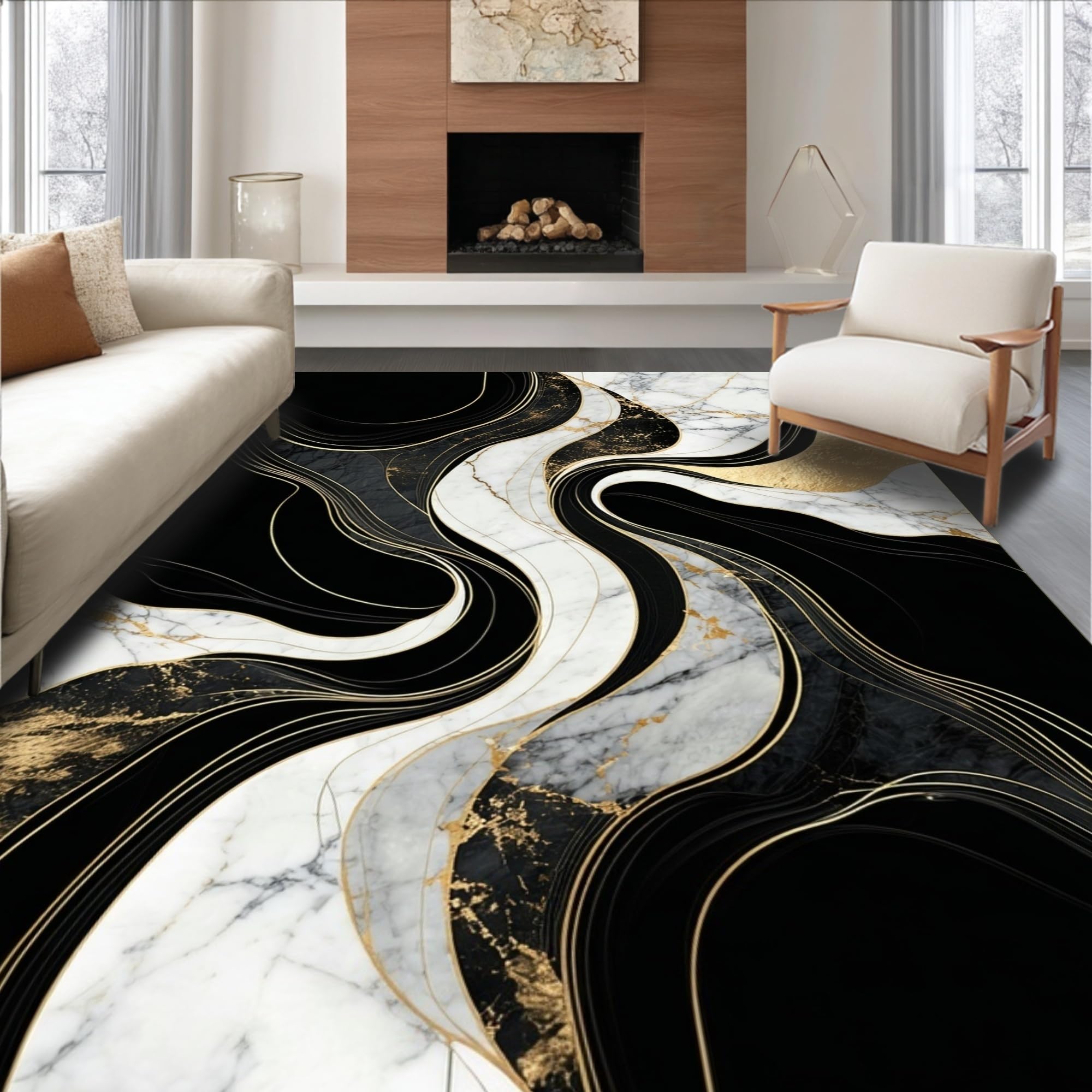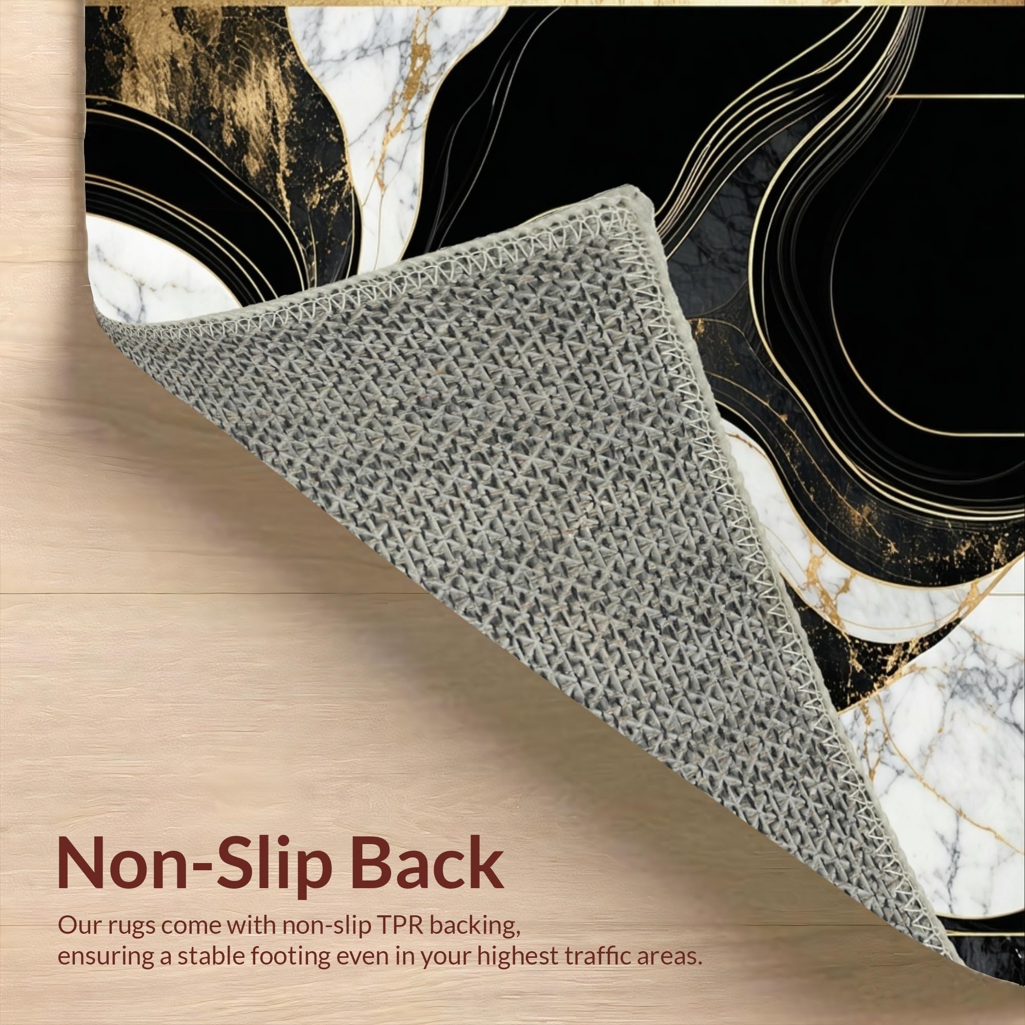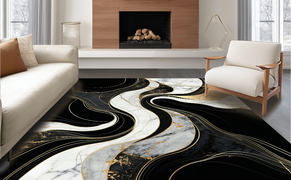 Ultra Soft Area Rug, Non Slip, Stain Resistant, Washable Area Rugs for Living Room, Bedroom, Luxurious Liquid Marble Aesthetic(Black) Overview: