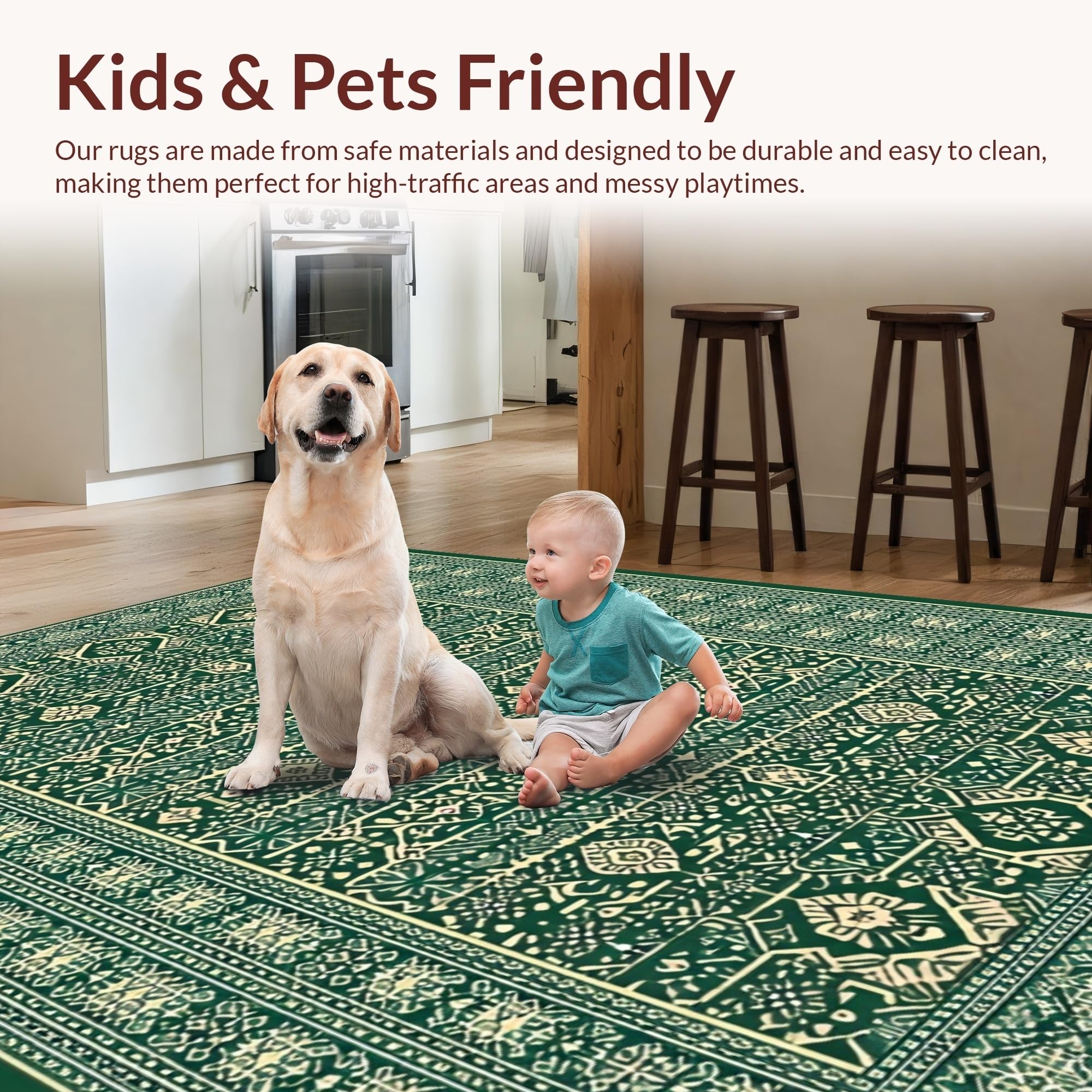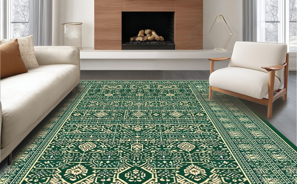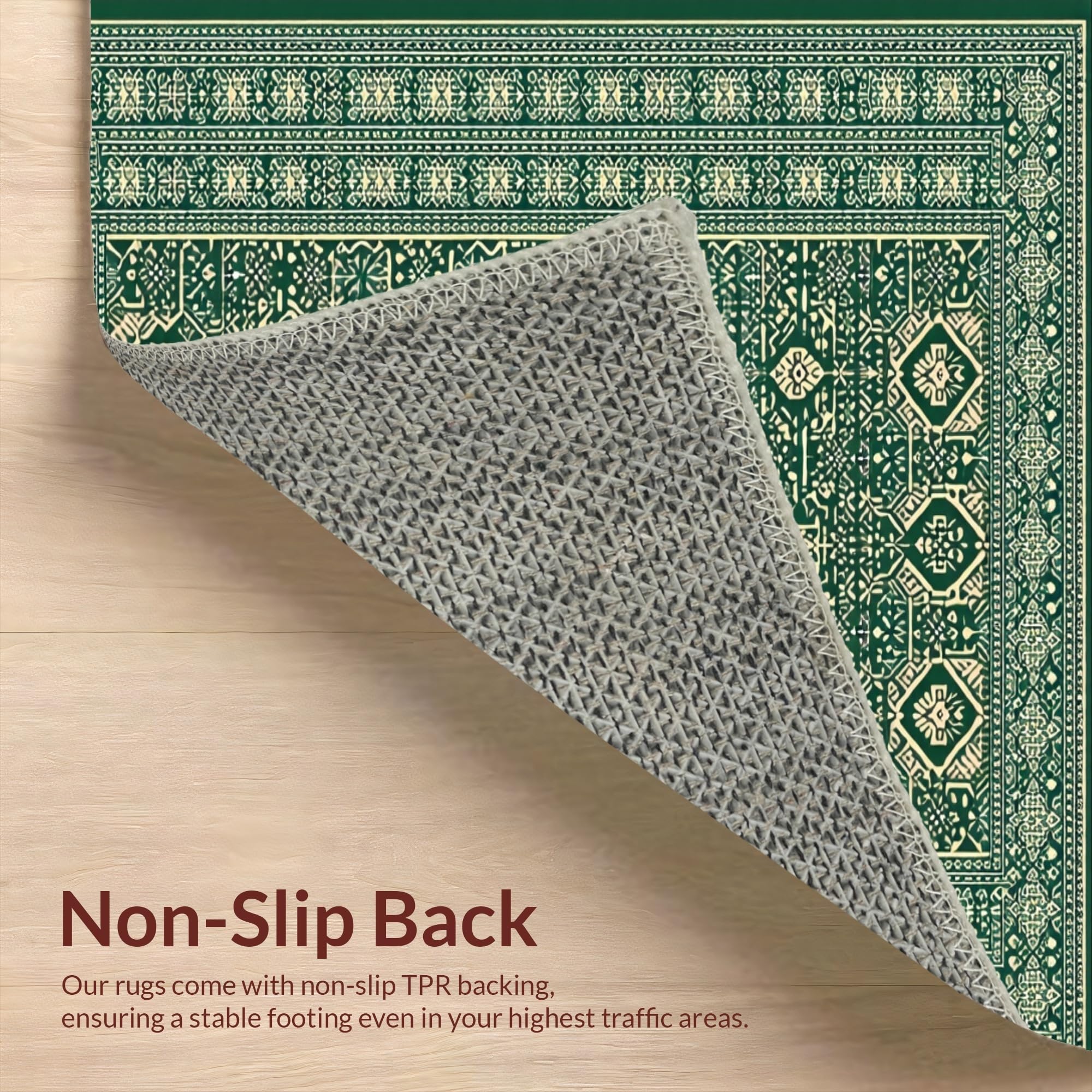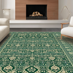 Ultra Soft Area Rug, Non Slip, Stain Resistant, Washable Area Rugs for Living Room, Bedroom, Luxurious Low-Pile Medallion Motif(Green) Overview:
