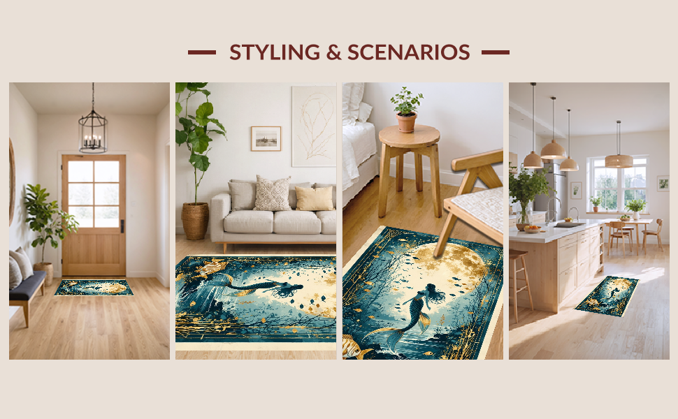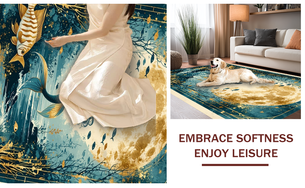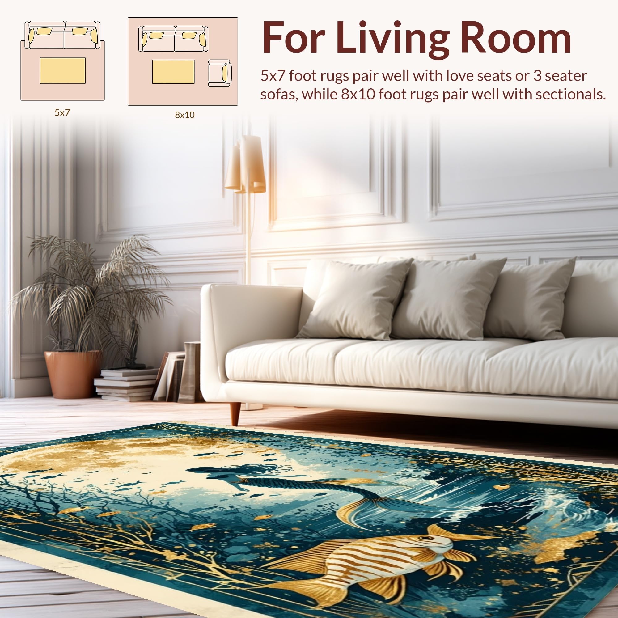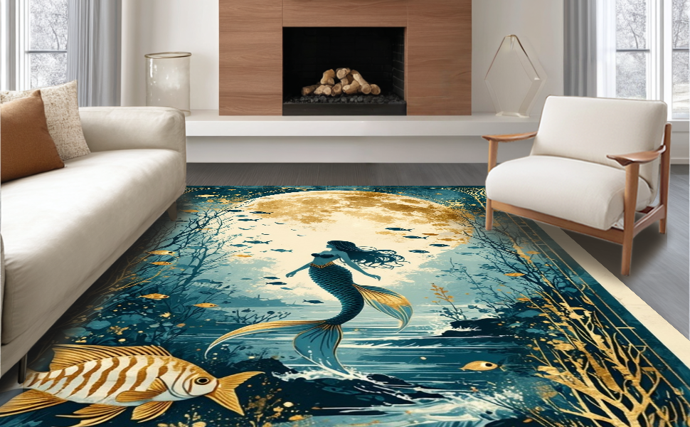 Ultra Soft Area Rug, Non Slip, Stain Resistant, Washable Area Rugs for Living Room, Bedroom, Luxurious Mermaid Inspired Decor(Blue) Overview: