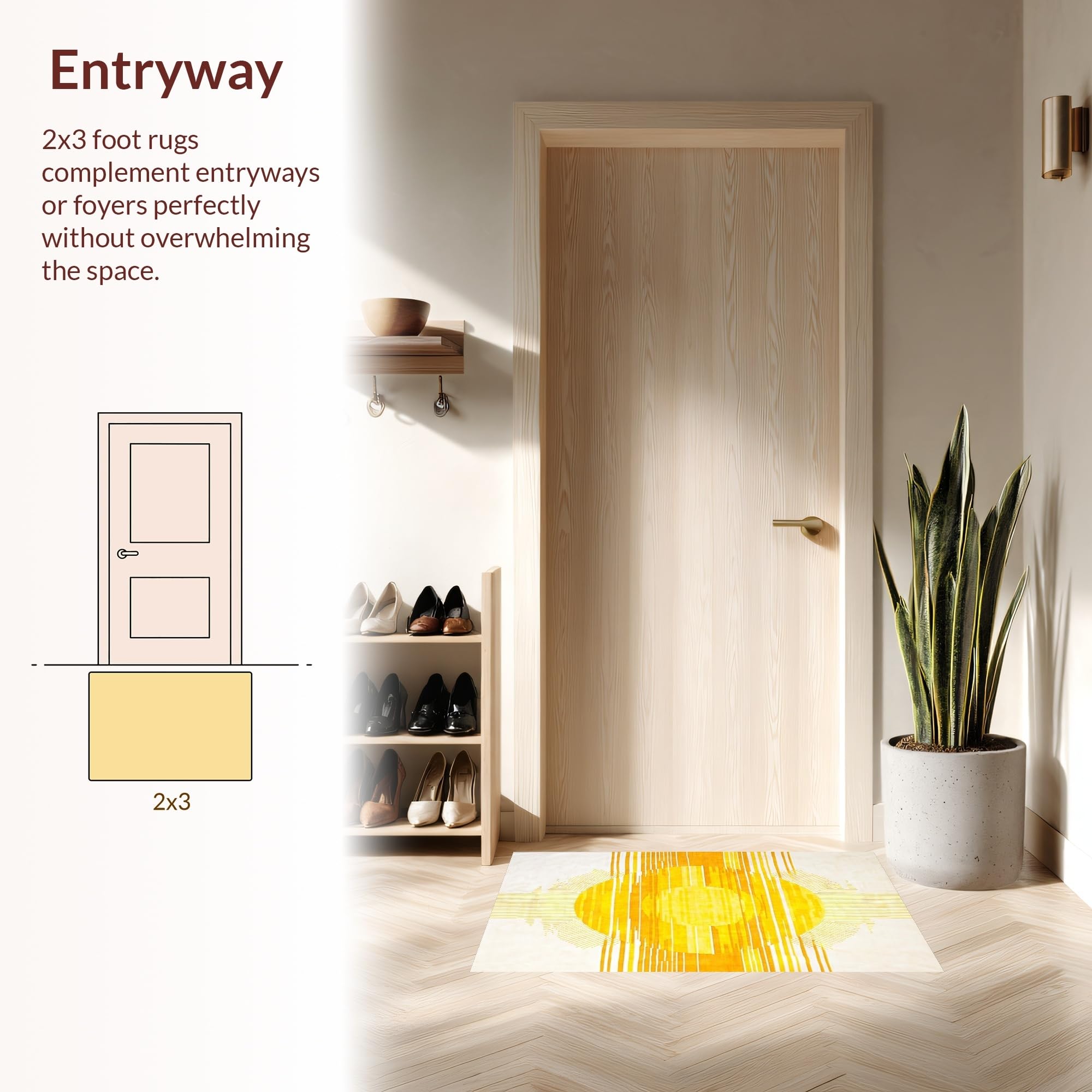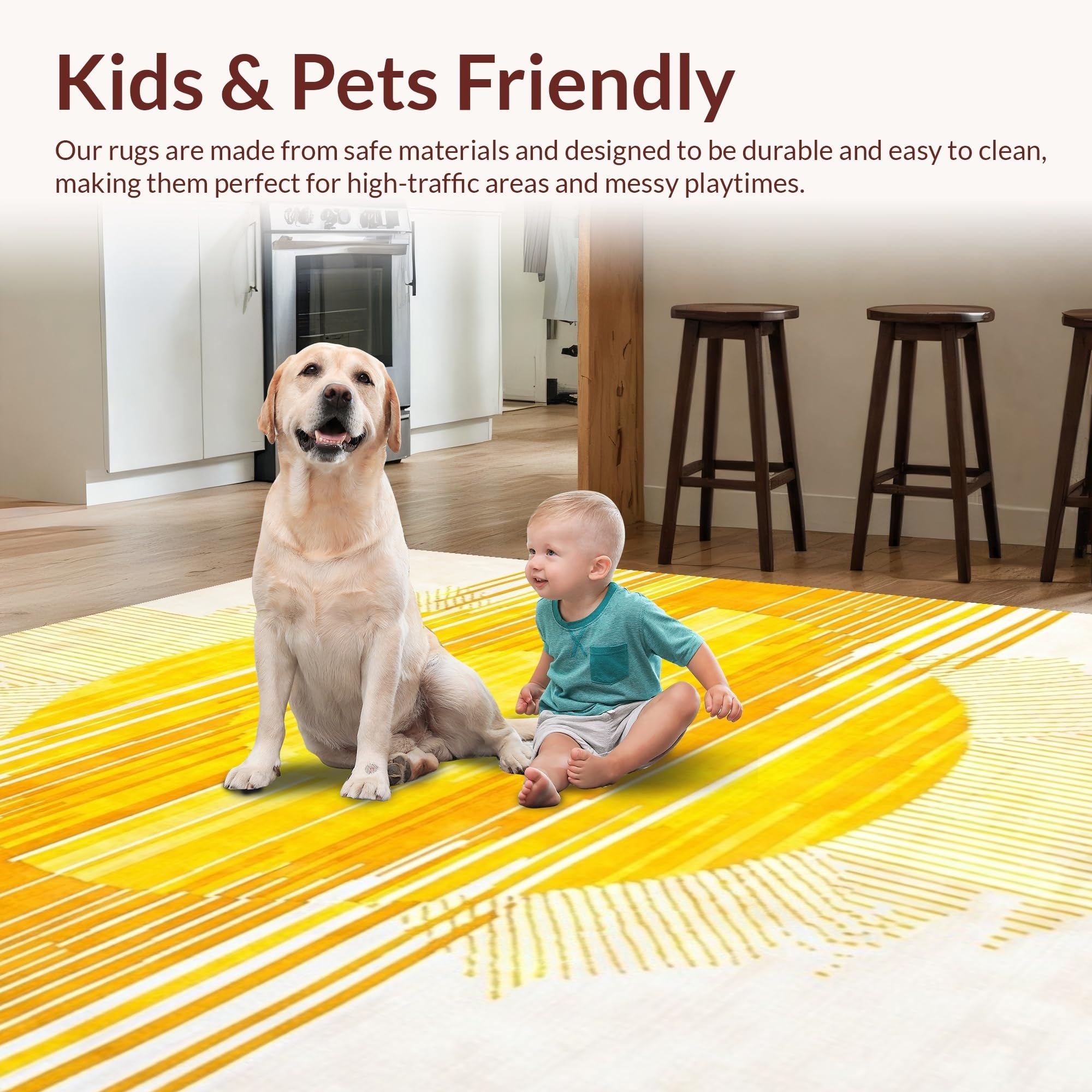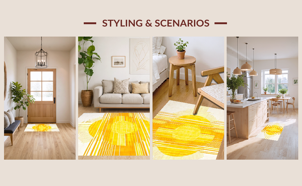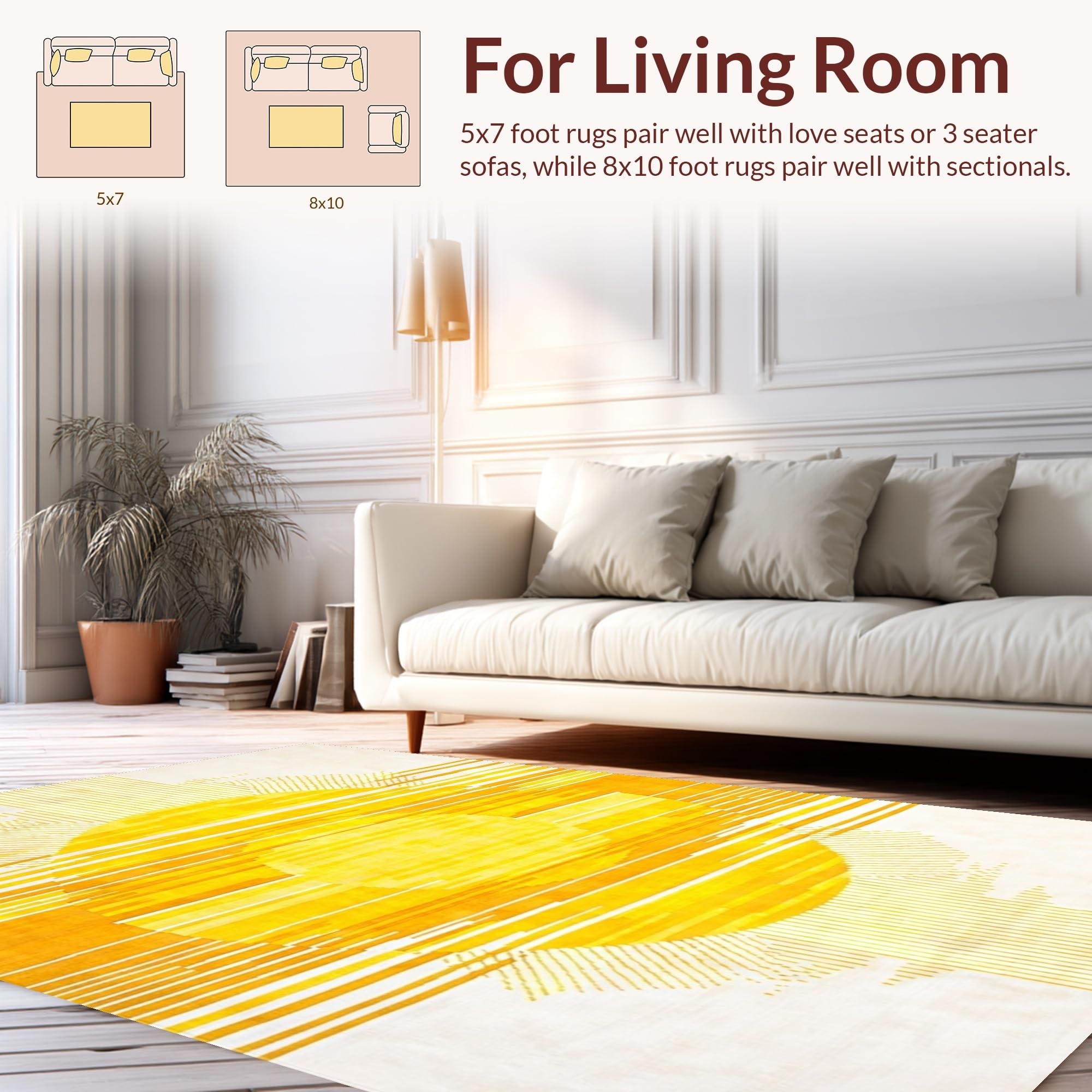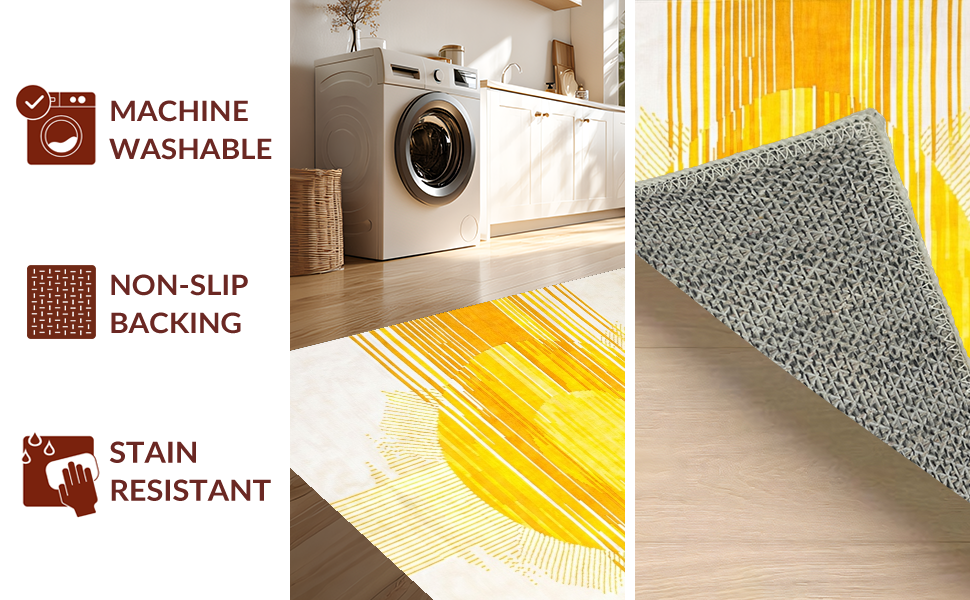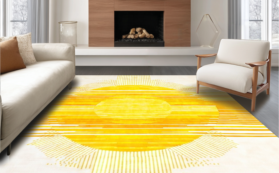 Ultra Soft Area Rug, Non Slip, Stain Resistant, Washable Area Rugs for Living Room, Bedroom, Luxurious Minimalist Radiant Art(Yellow) Overview: