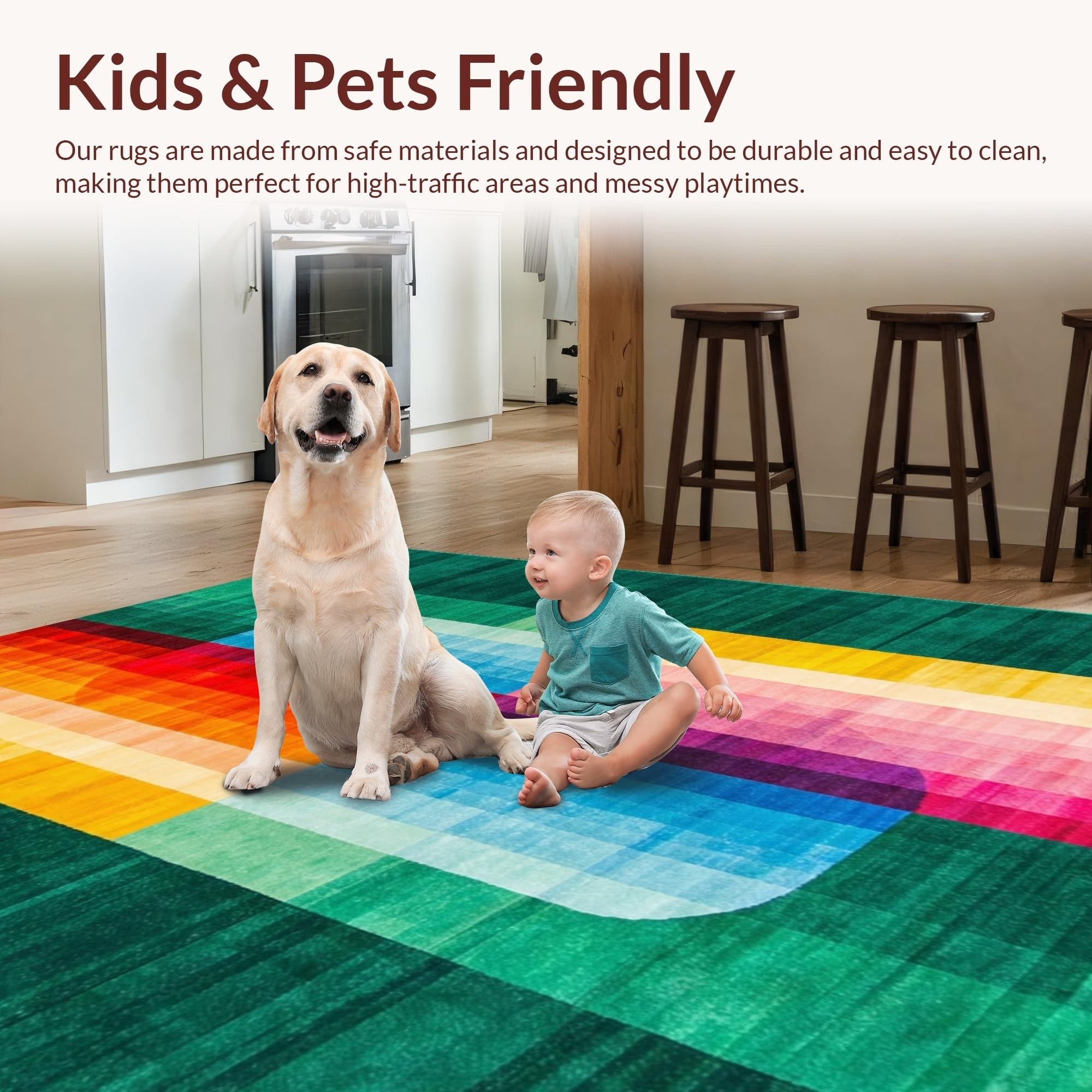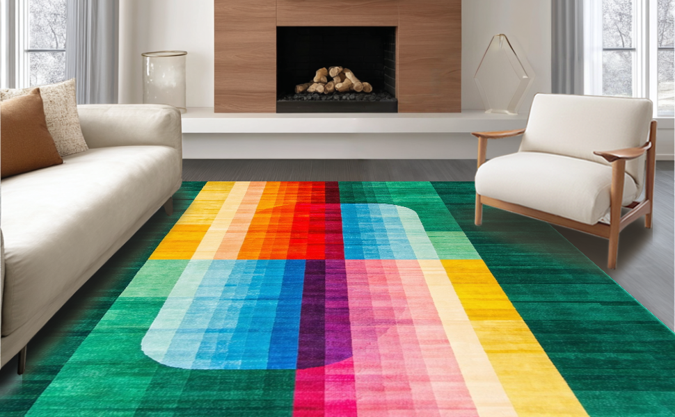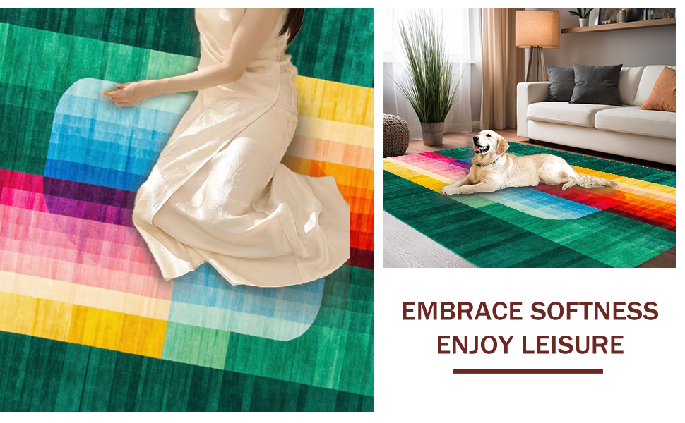 Ultra Soft Area Rug, Non Slip, Stain Resistant, Washable Area Rugs for Living Room, Bedroom, Luxurious Modern Lattice Arrangement(Green) Overview: