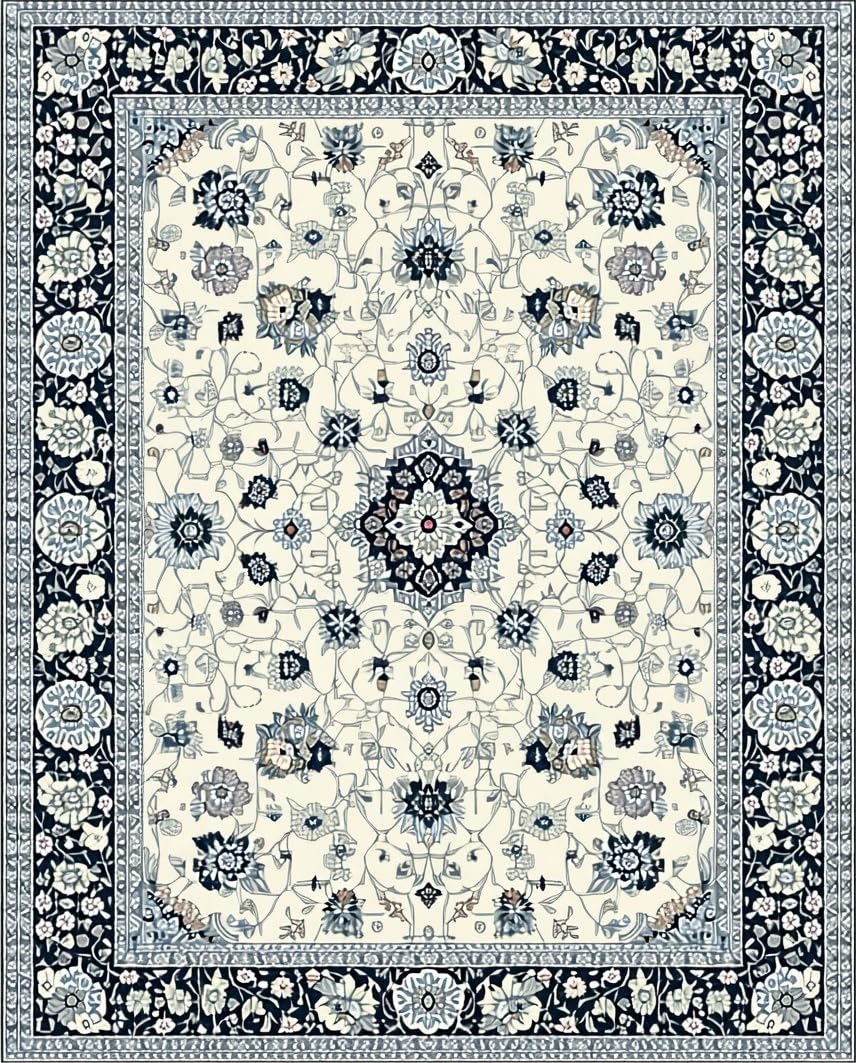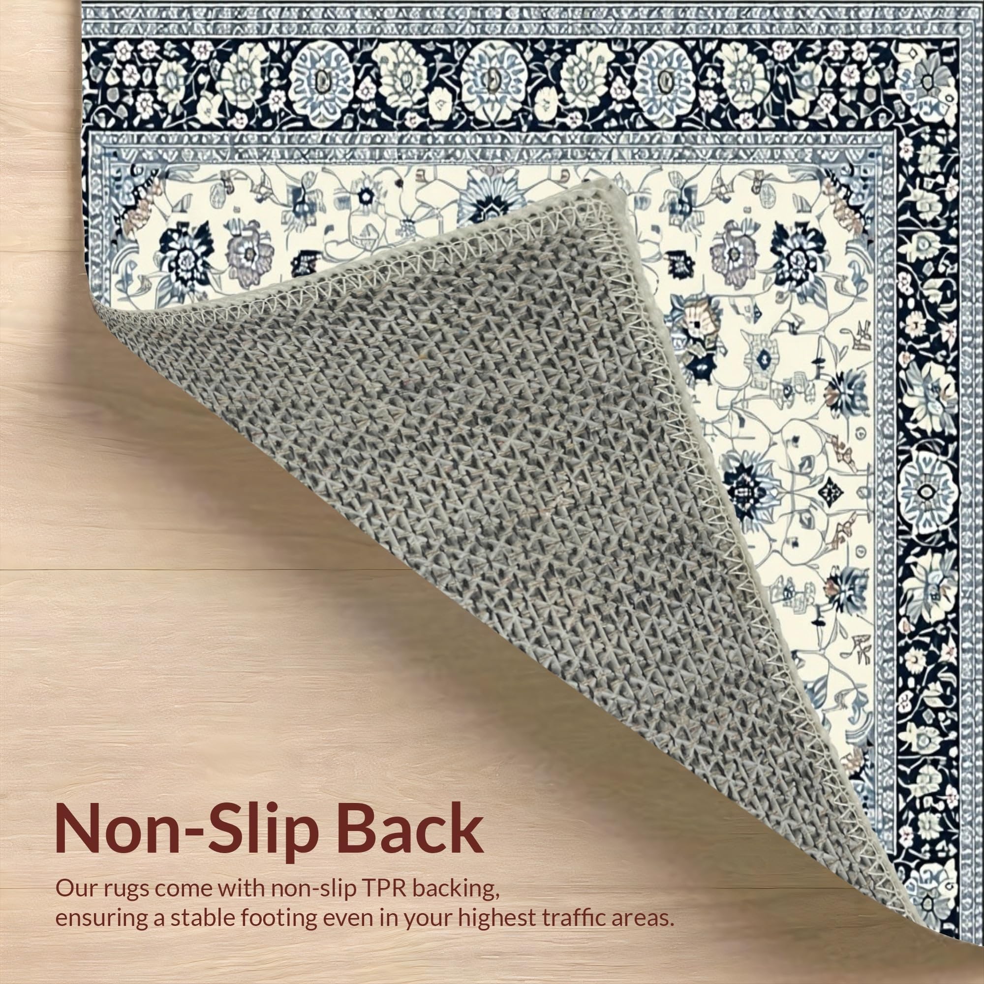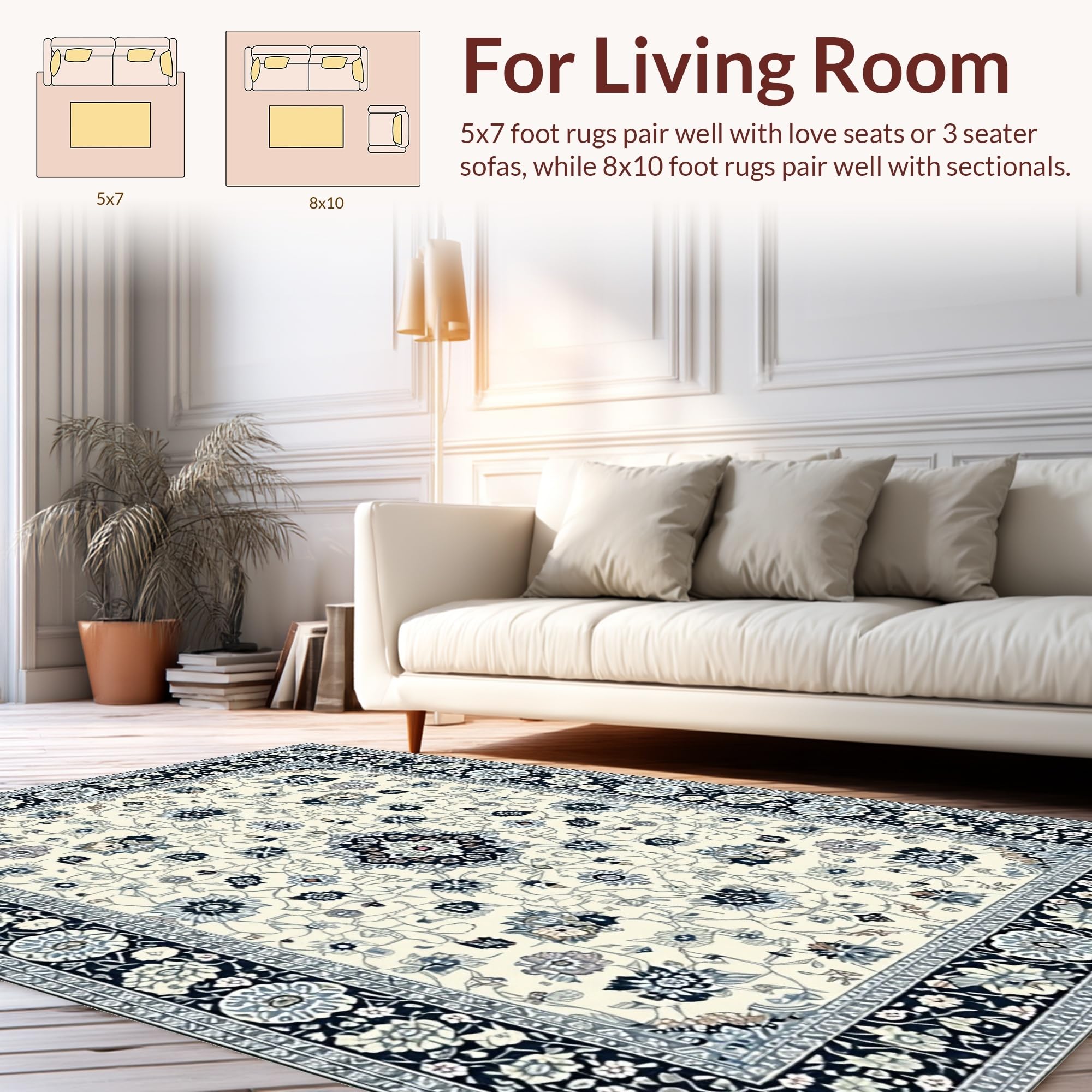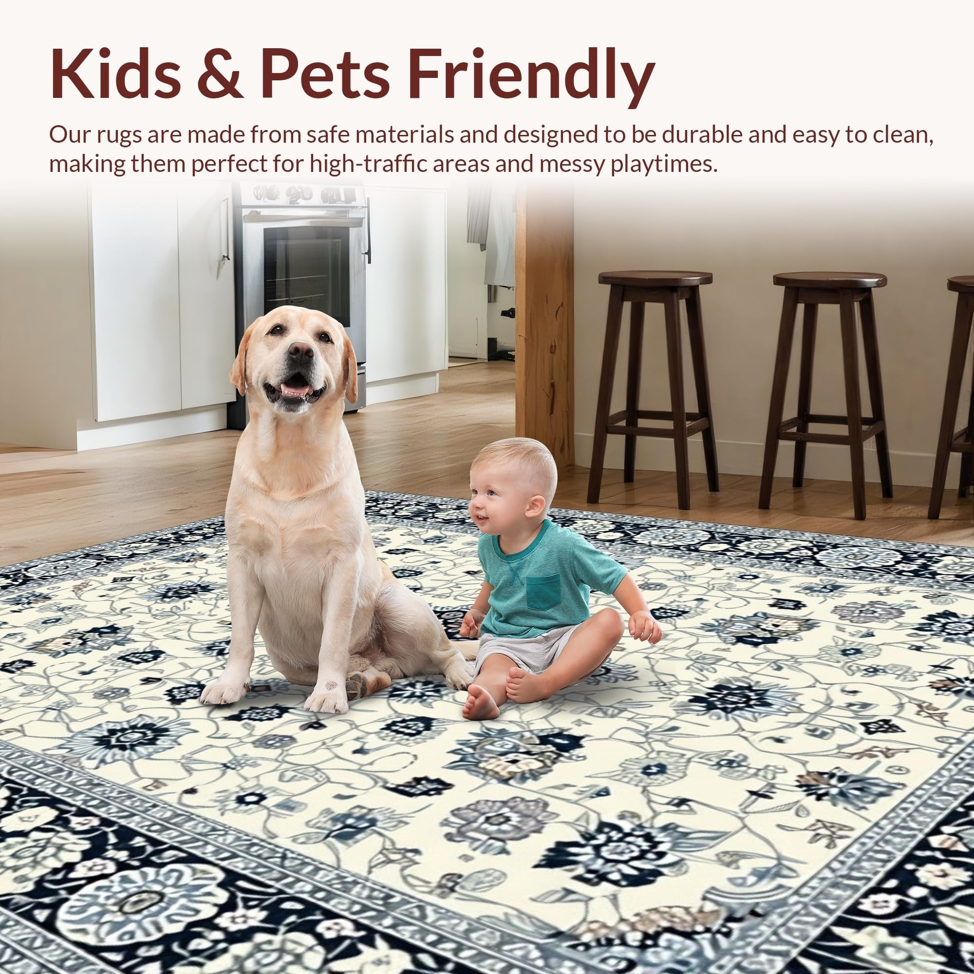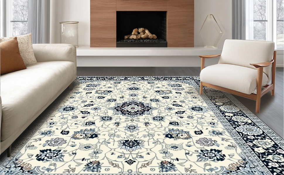 Ultra Soft Area Rug, Non Slip, Stain Resistant, Washable Area Rugs for Living Room, Bedroom, Luxurious Monochrome Damask Style(Ivory) Overview: