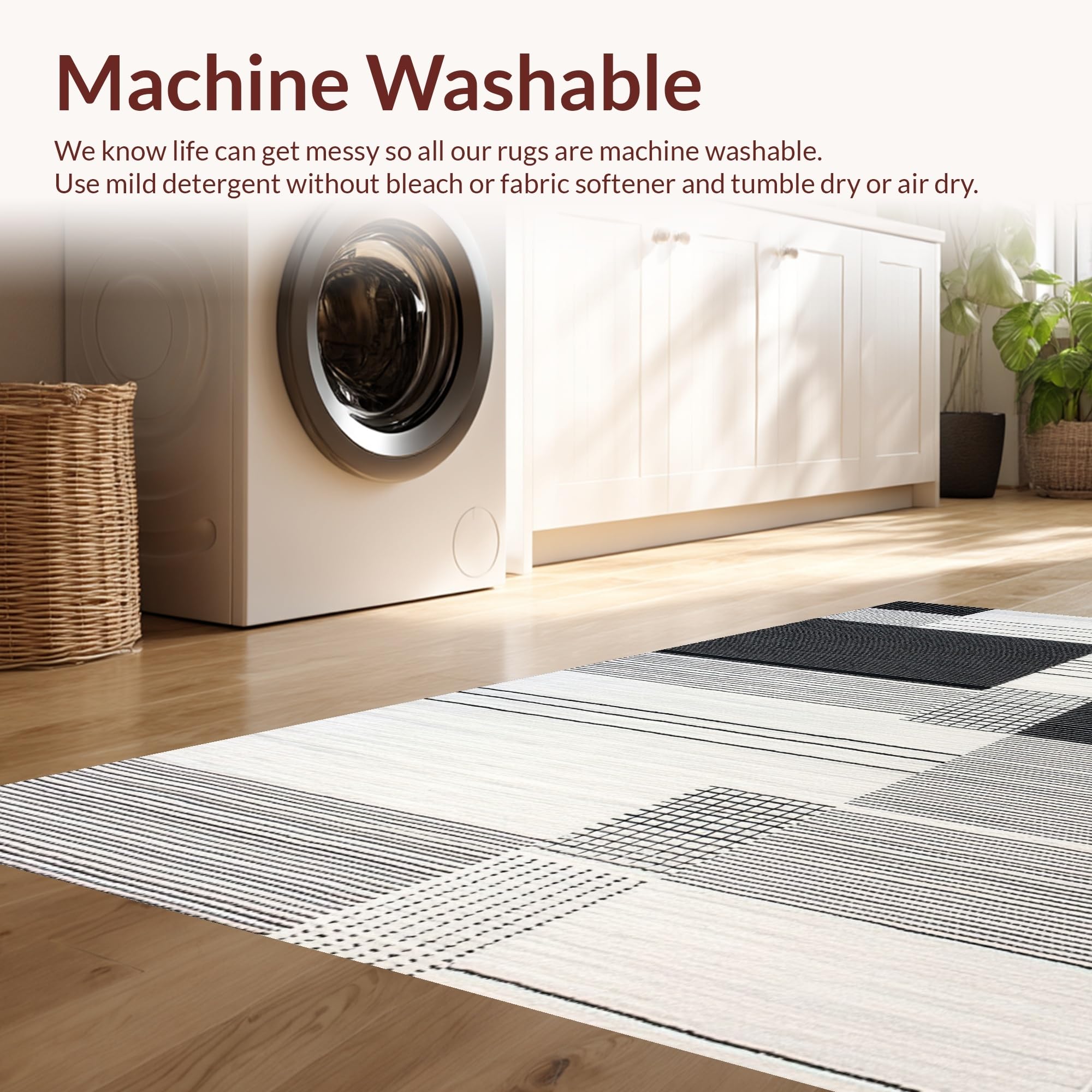 - Machine Washable: Our rugs can be easily thrown in the wash machine.