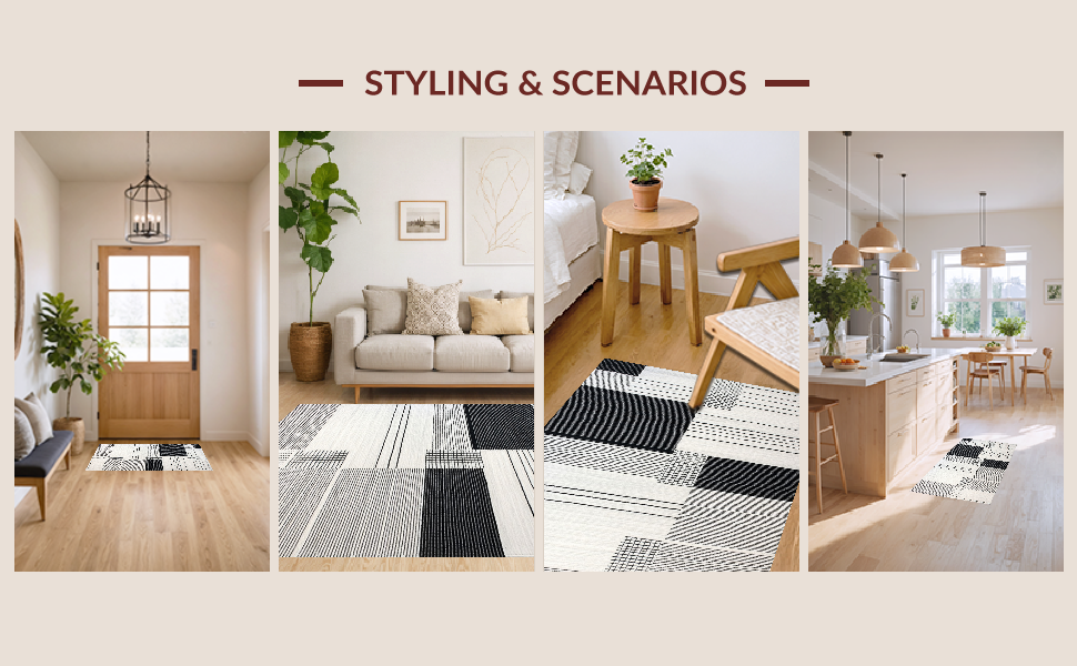 Ultra Soft Area Rug, Non Slip, Stain Resistant, Washable Area Rugs for Living Room, Bedroom, Luxurious Monochrome Flowing Patterns(Black) Overview: