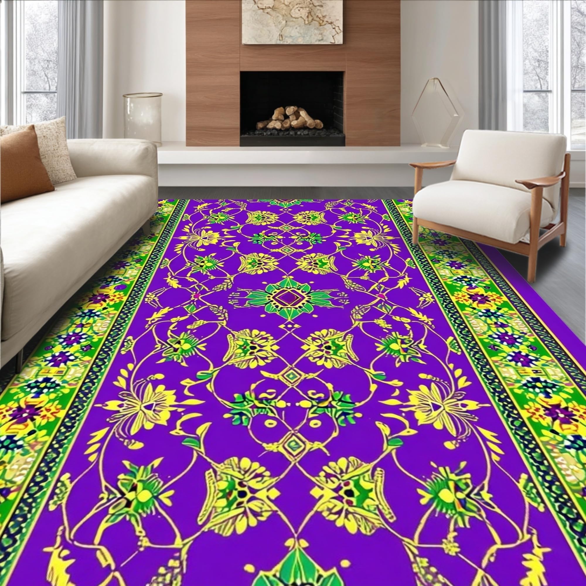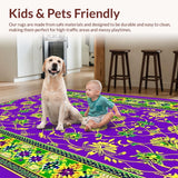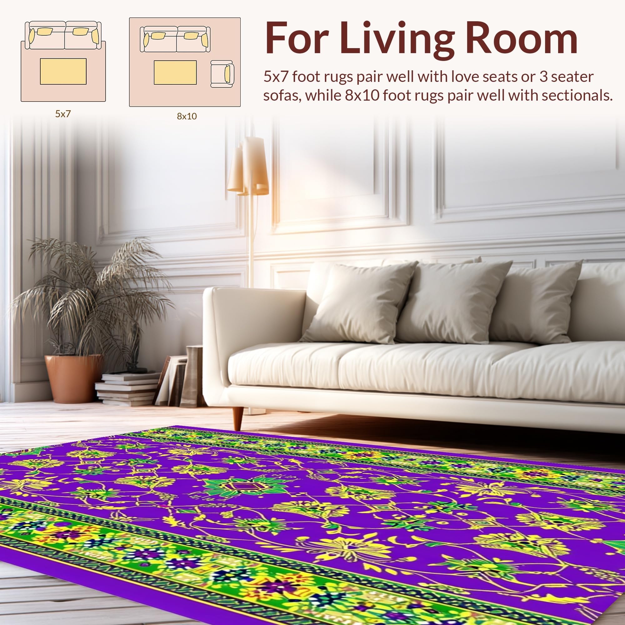 Ultra Soft Area Rug, Non Slip, Stain Resistant, Washable Area Rugs for Living Room, Bedroom, Luxurious Multi-Color Geometric Motif(Purple) Overview: