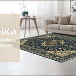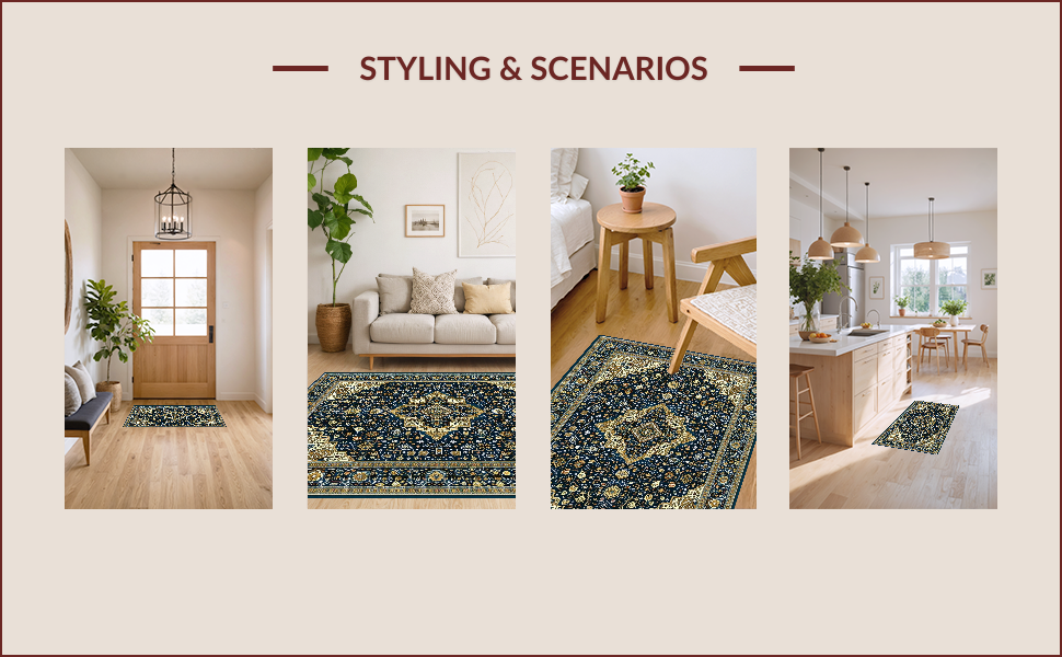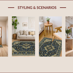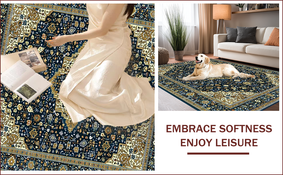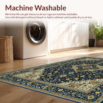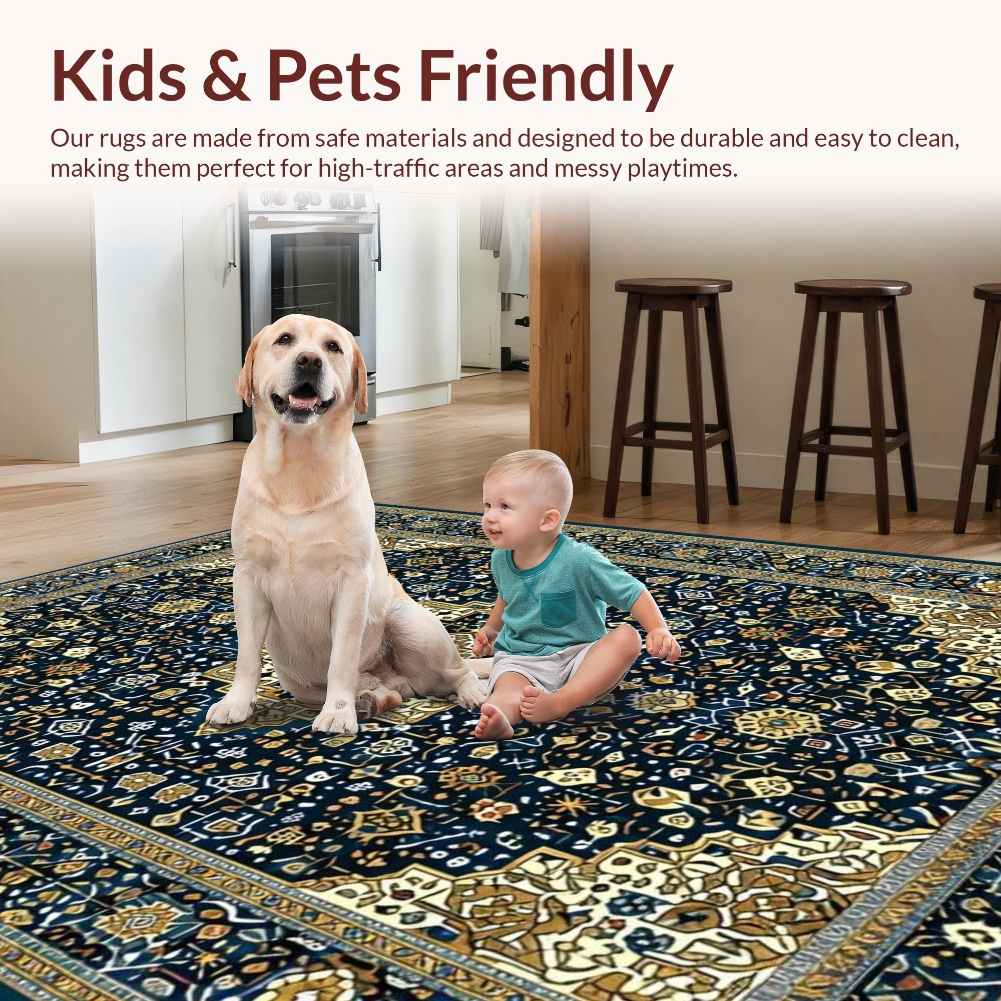 Ultra Soft Area Rug, Non Slip, Stain Resistant, Washable Area Rugs for Living Room, Bedroom, Luxurious Navy Blue Medallion Style(Blue) Overview: