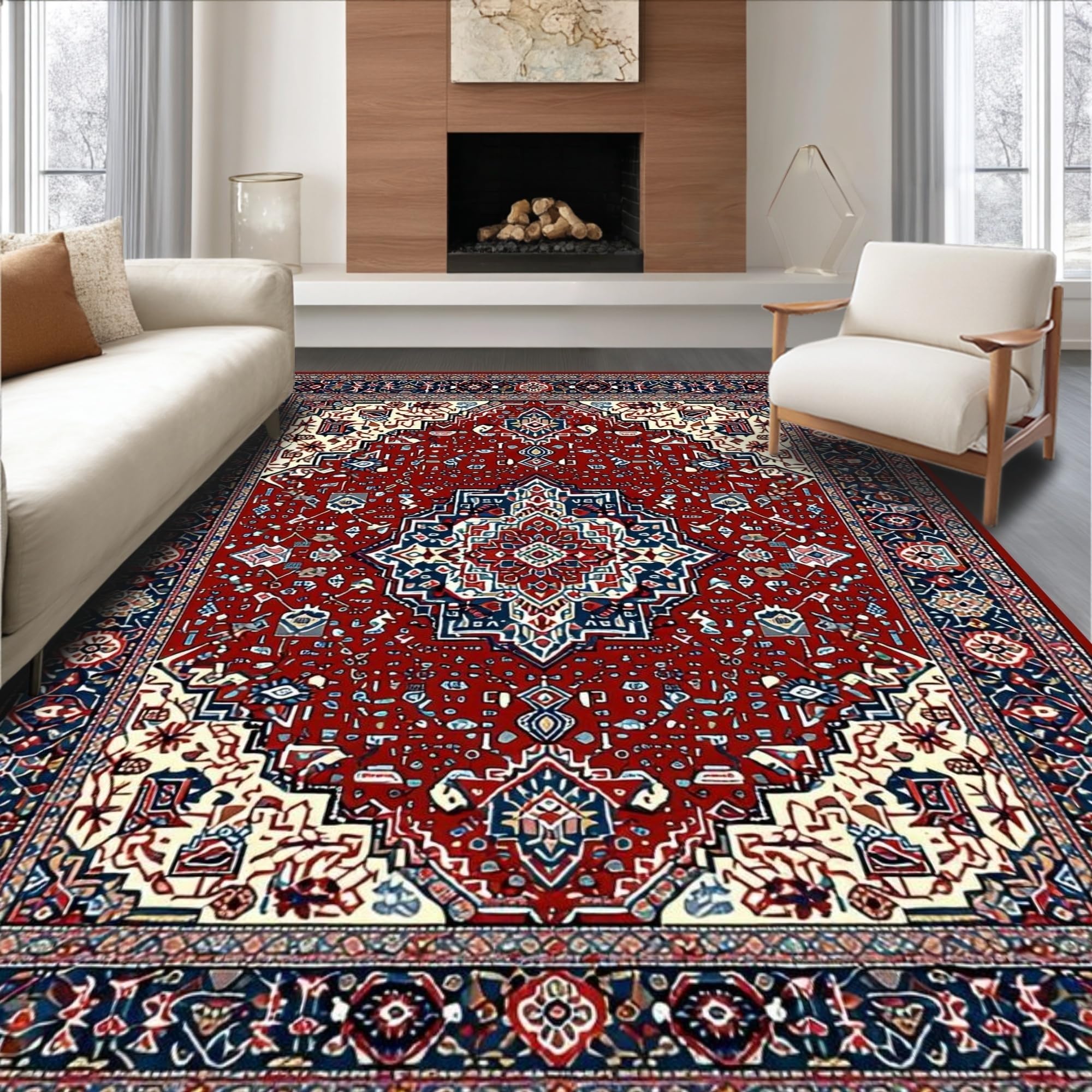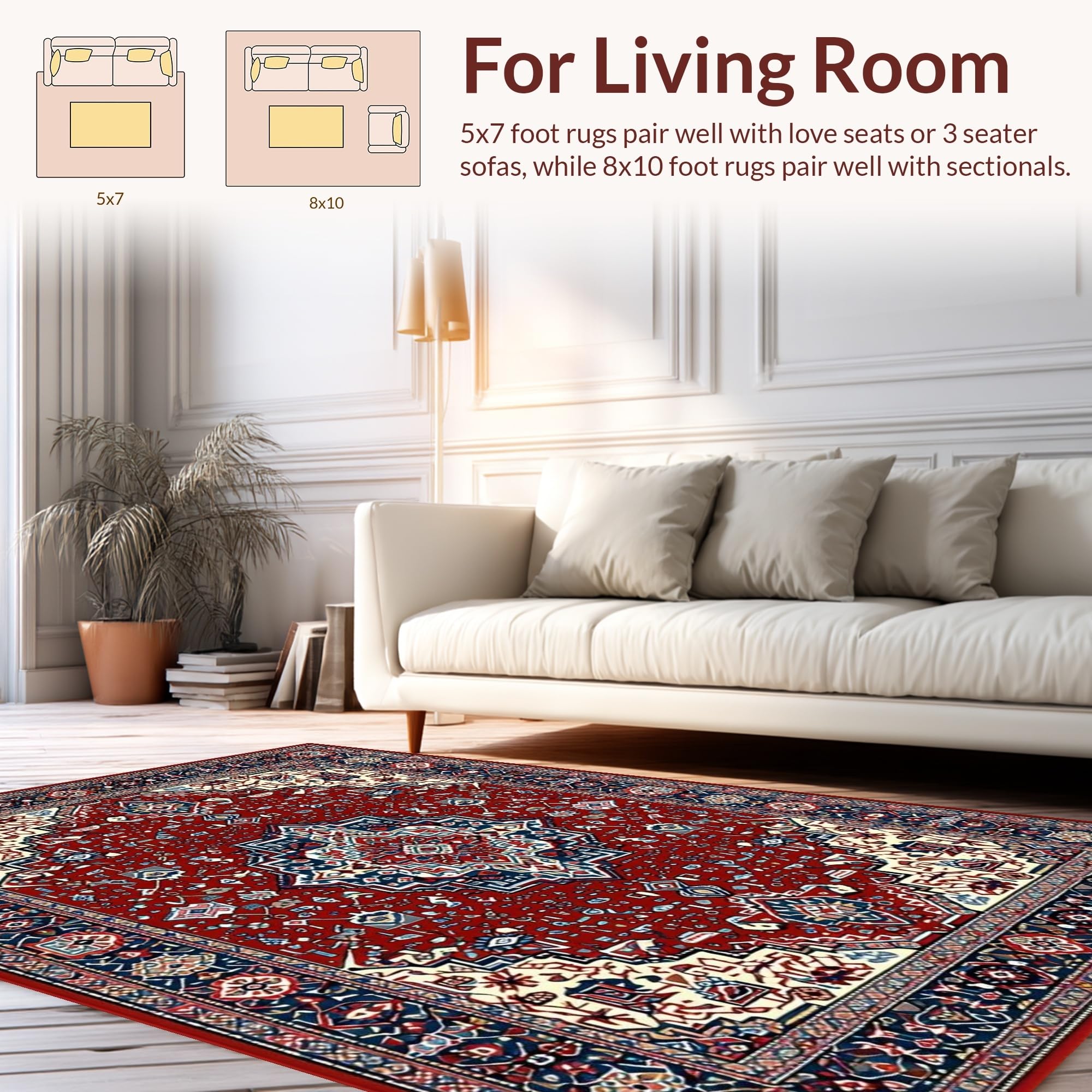Ultra Soft Area Rug, Non Slip, Stain Resistant, Washable Area Rugs for Living Room, Bedroom, Luxurious Ornate Patterned Accent(Red) Overview: