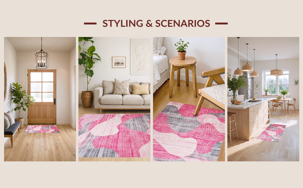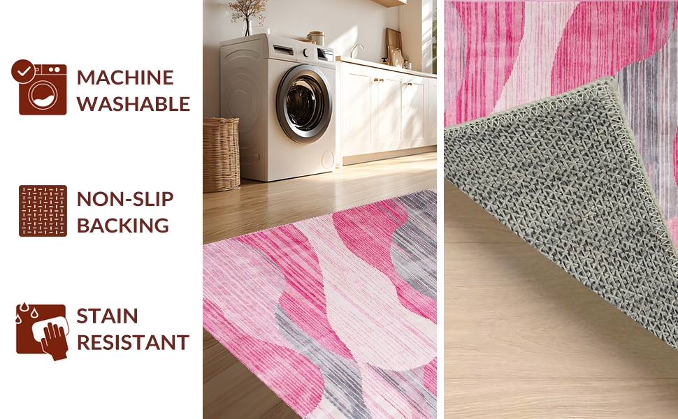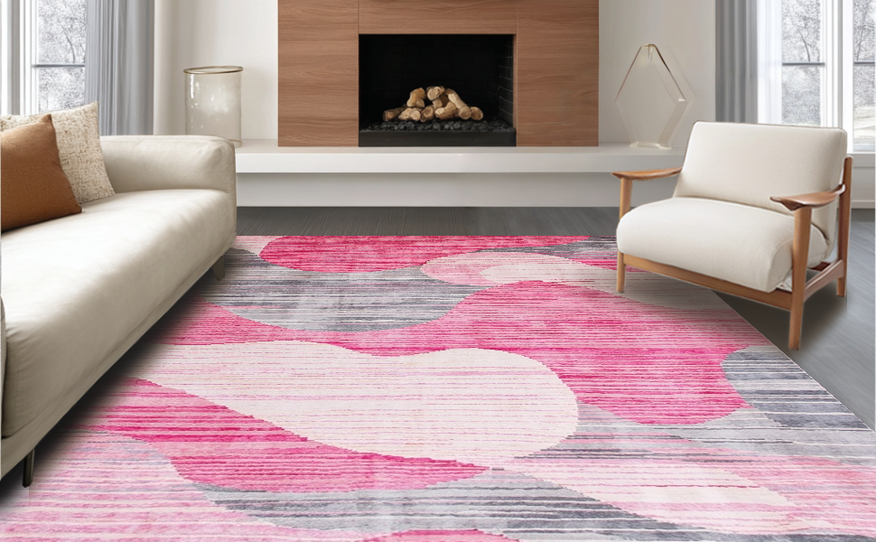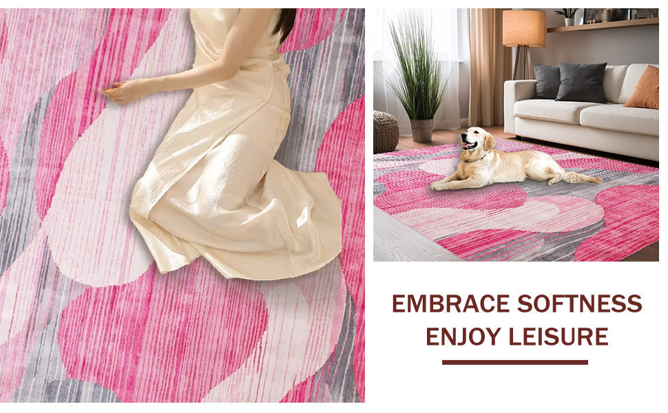 Ultra Soft Area Rug, Non Slip, Stain Resistant, Washable Area Rugs for Living Room, Bedroom, Luxurious Pink and White Contrast(Pink) Overview: