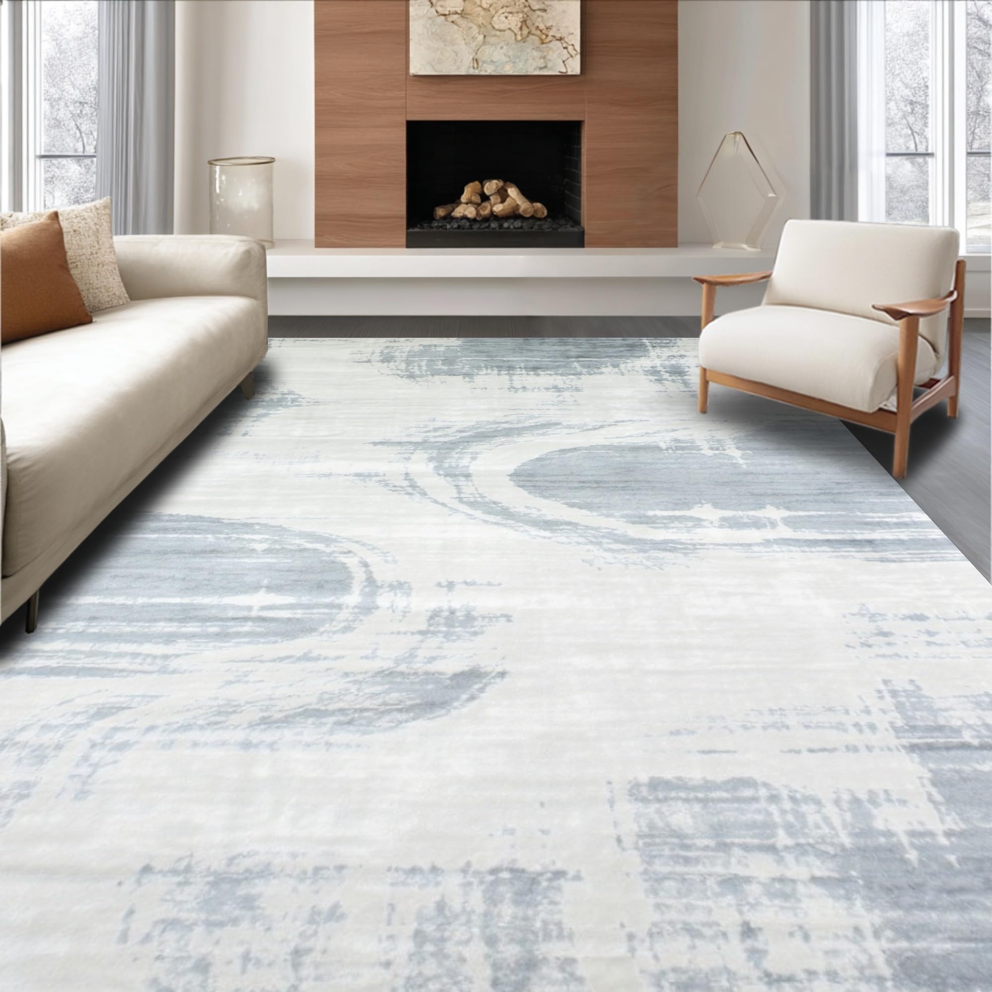 Ultra Soft Area Rug, Non Slip, Stain Resistant, Washable Area Rugs for Living Room, Bedroom, Luxurious Plush Furry Ripple Pattern(Gray) Overview: