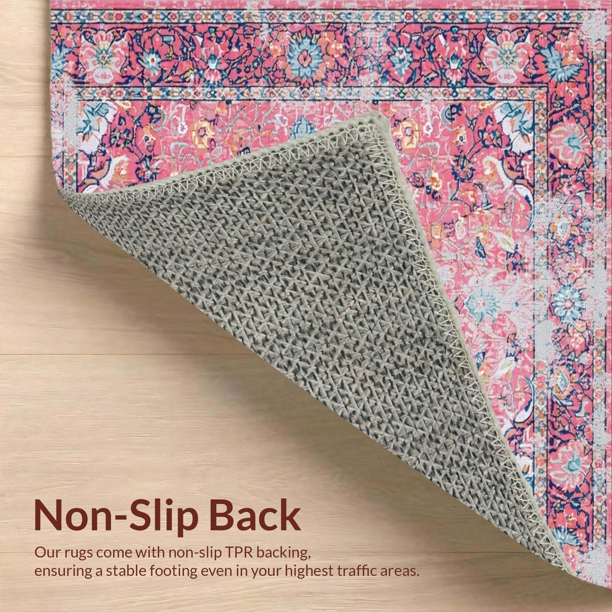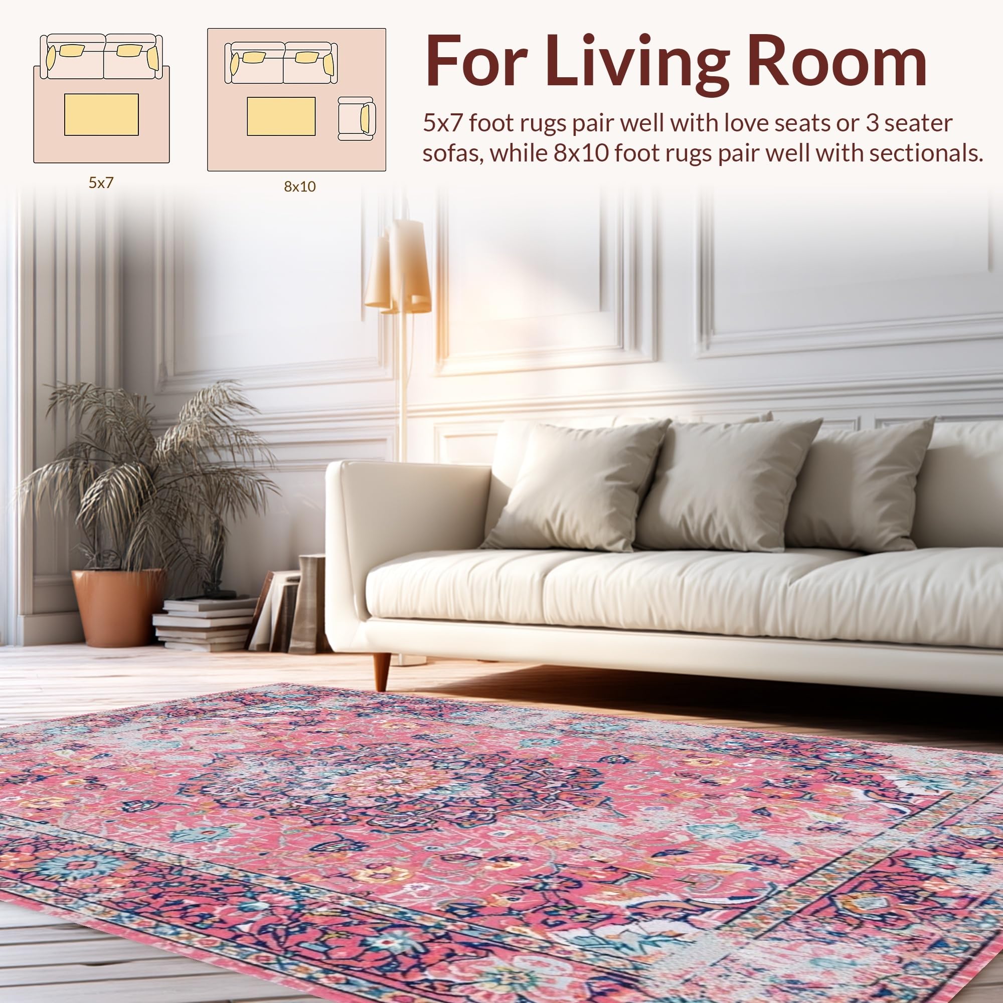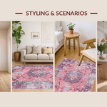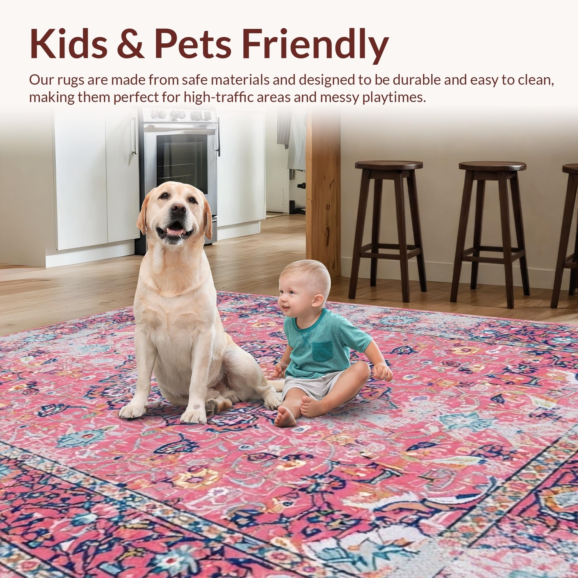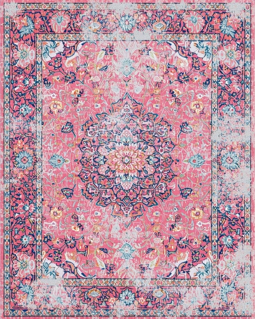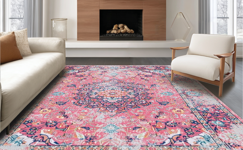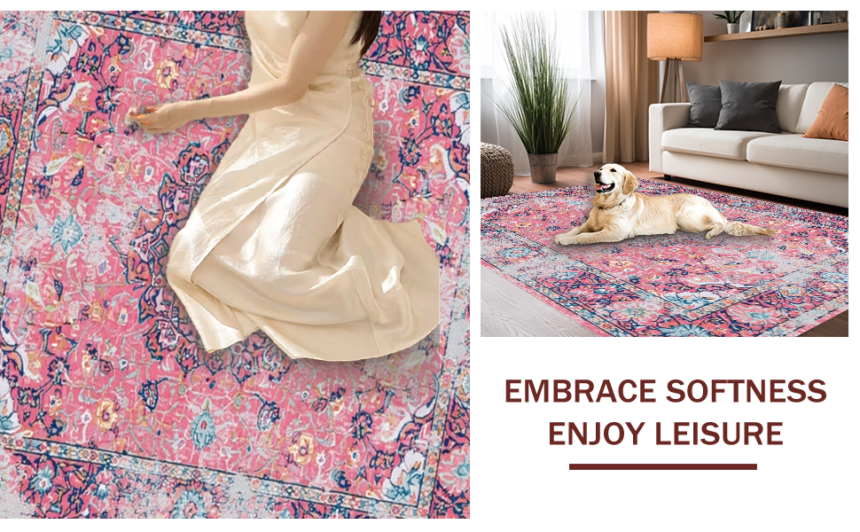 Ultra Soft Area Rug, Non Slip, Stain Resistant, Washable Area Rugs for Living Room, Bedroom, Luxurious Retro Lattice Decoration(Pink) Overview: