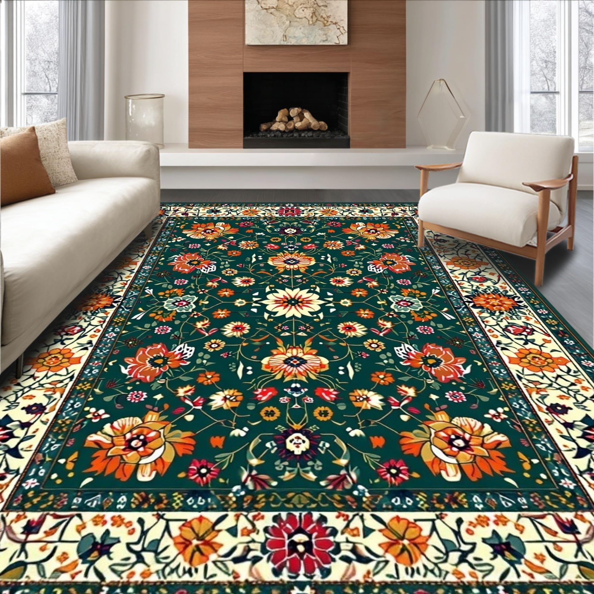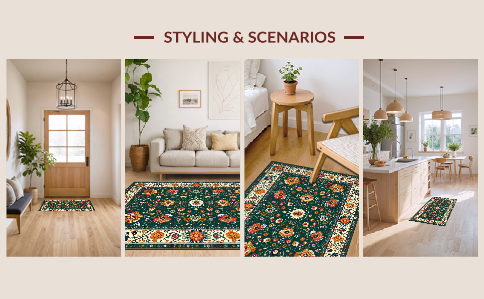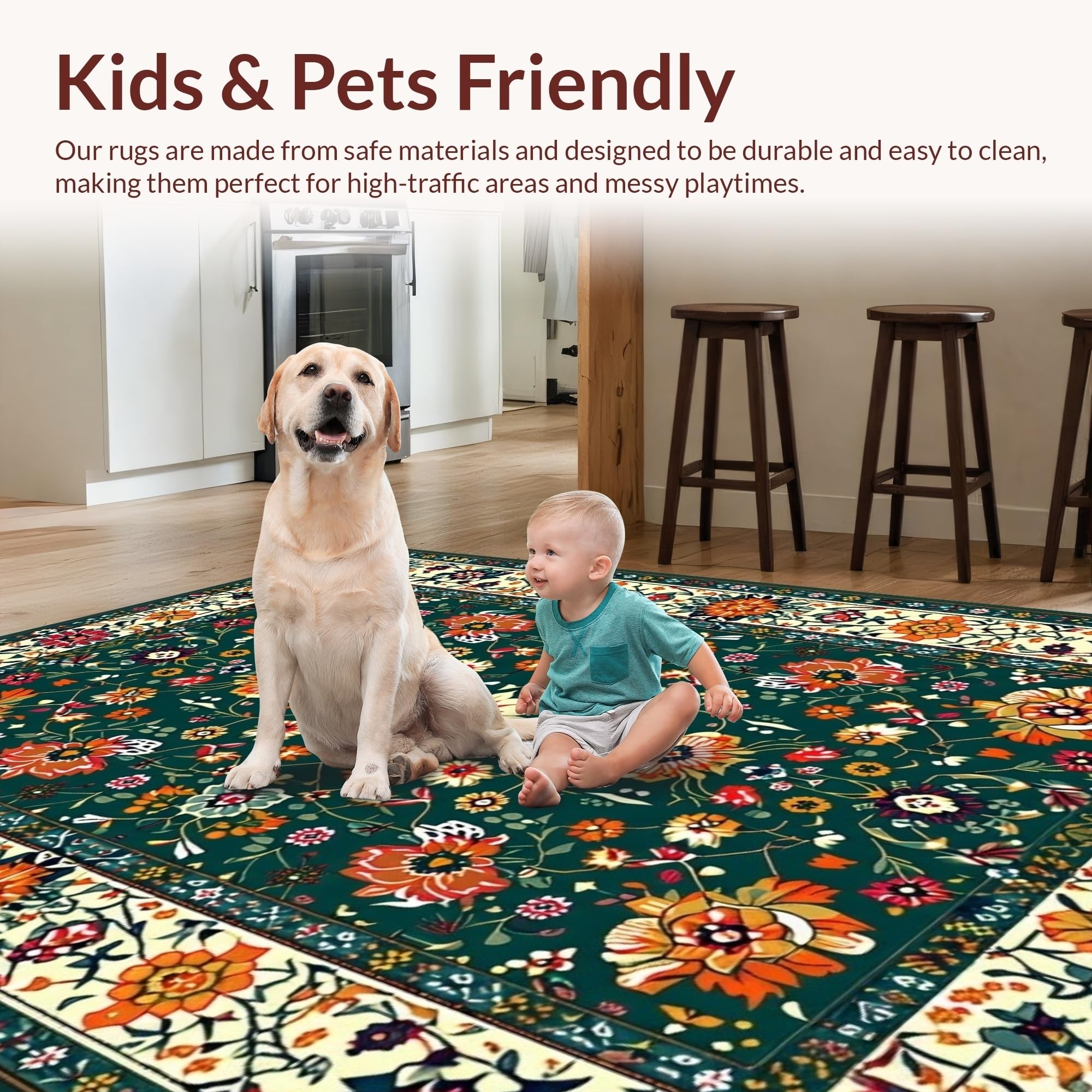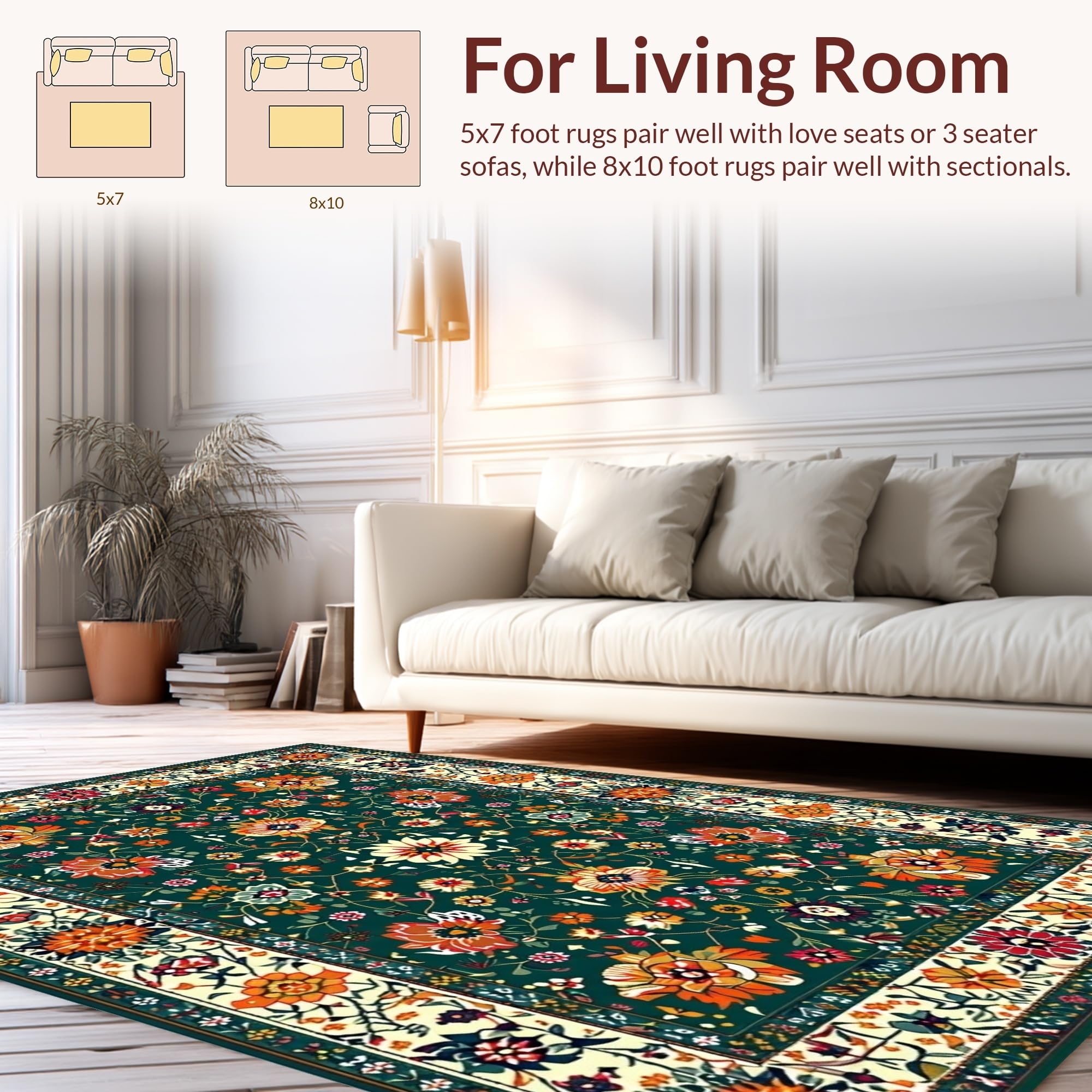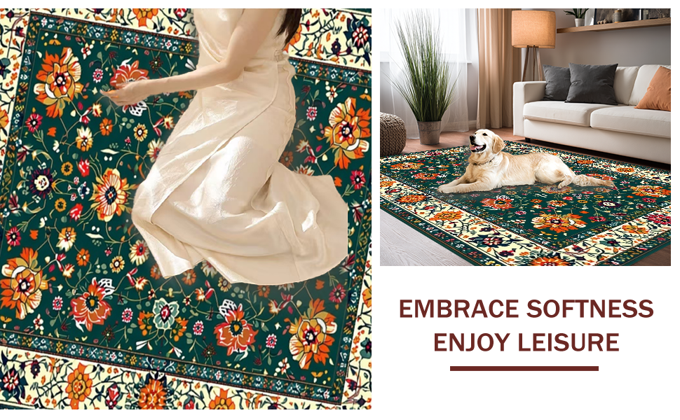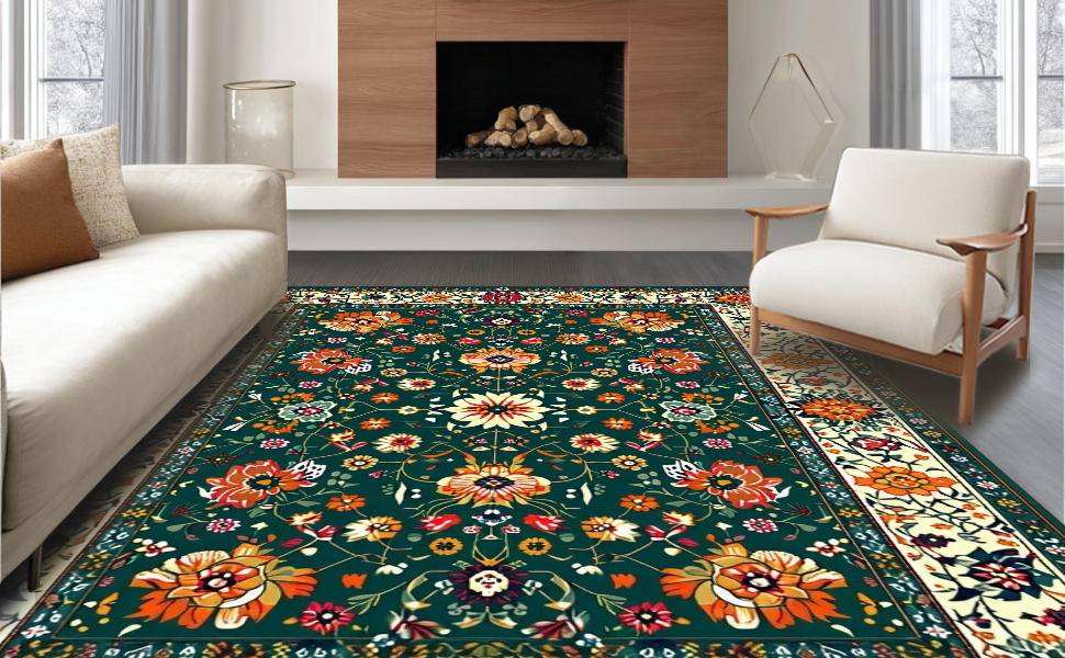 Ultra Soft Area Rug, Non Slip, Stain Resistant, Washable Area Rugs for Living Room, Bedroom, Luxurious Scalloped Design Elements(Green) Overview: