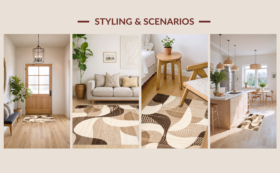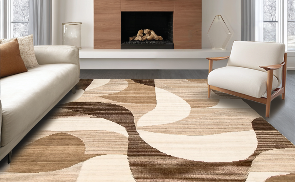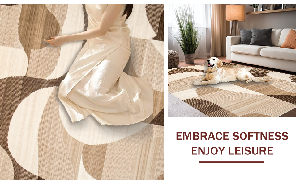 Ultra Soft Area Rug, Non Slip, Stain Resistant, Washable Area Rugs for Living Room, Bedroom, Luxurious Smooth Gradient Designs(Beige) Overview: