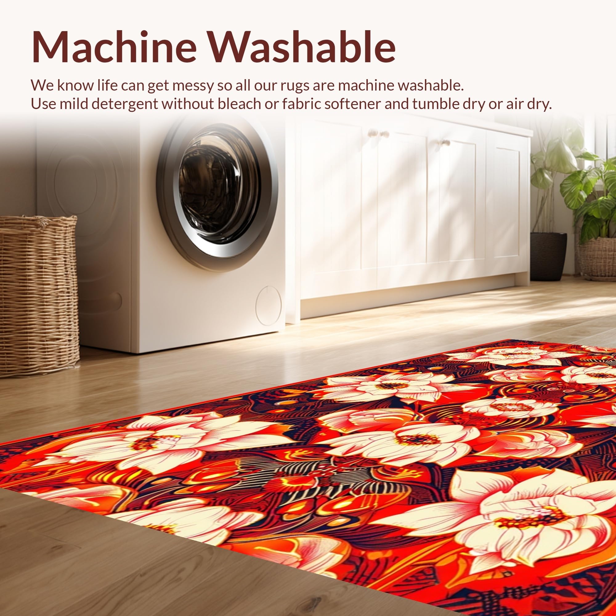 - Machine Washable: Our rugs can be easily thrown in the wash machine.