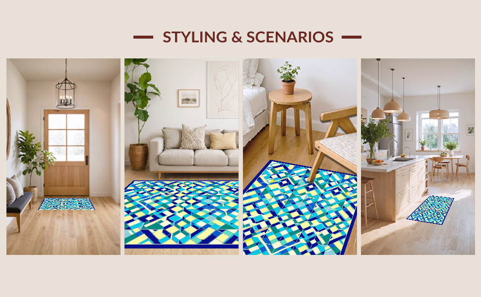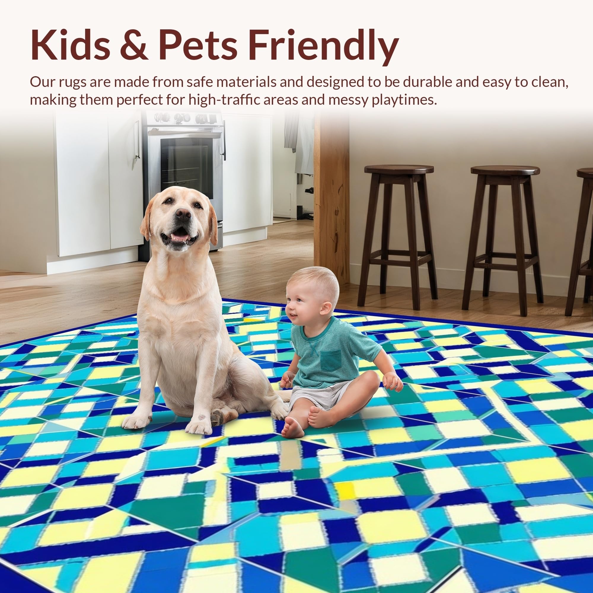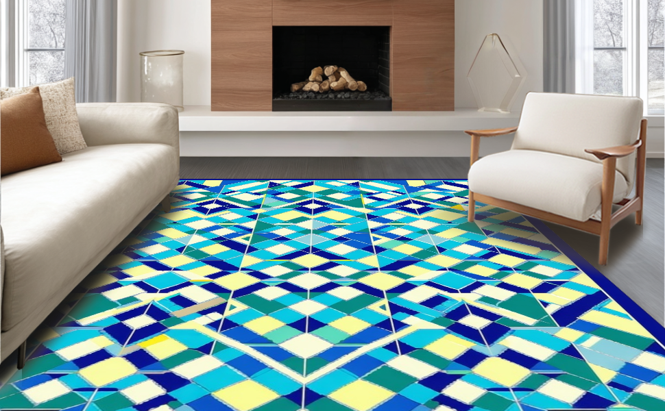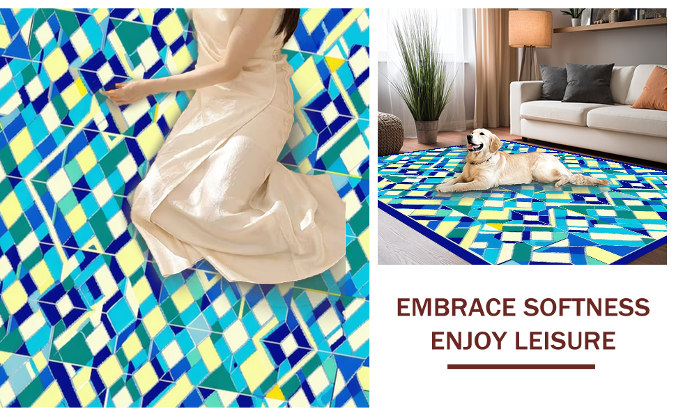 Ultra Soft Area Rug, Non Slip, Stain Resistant, Washable Area Rugs for Living Room, Bedroom, Luxurious Soft Colorful Design(Blue) Overview: