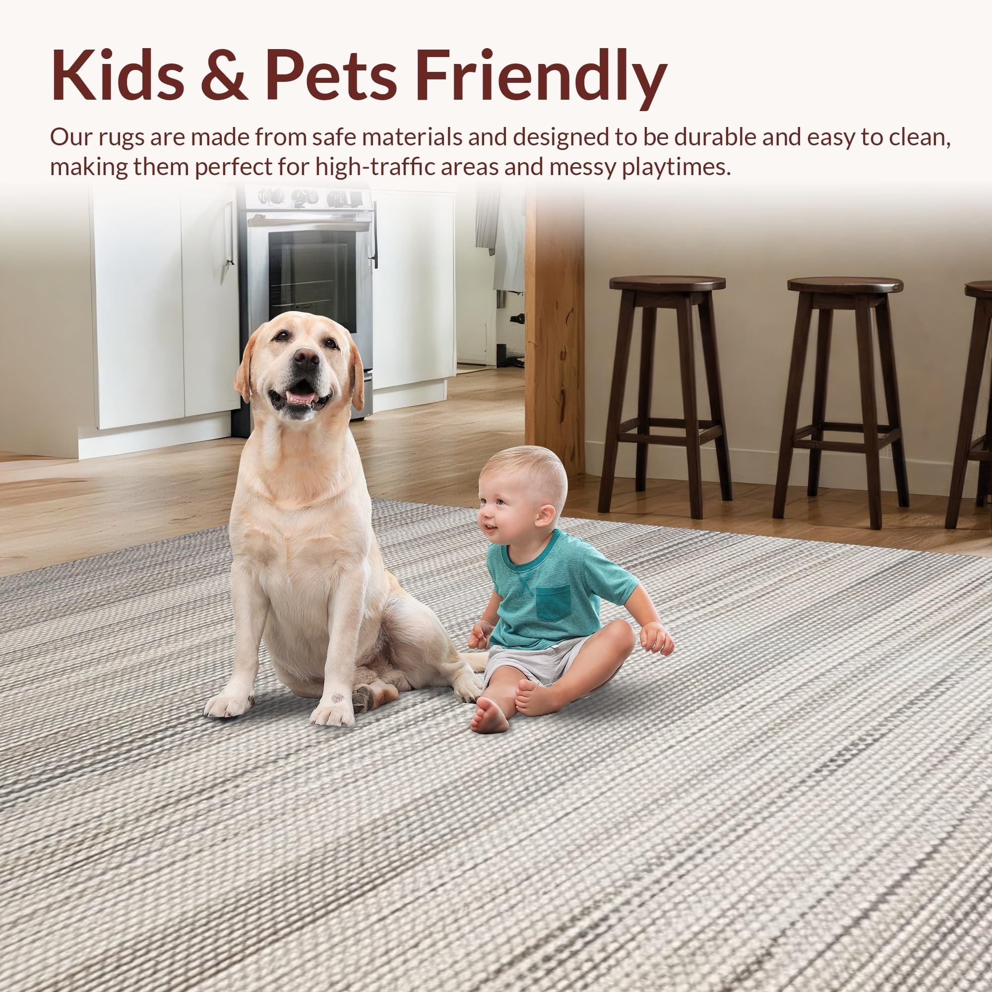 Ultra Soft Area Rug, Non Slip, Stain Resistant, Washable Area Rugs for Living Room, Bedroom, Luxurious Soft Hued Linear Style(Gray) Overview: