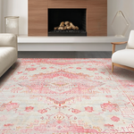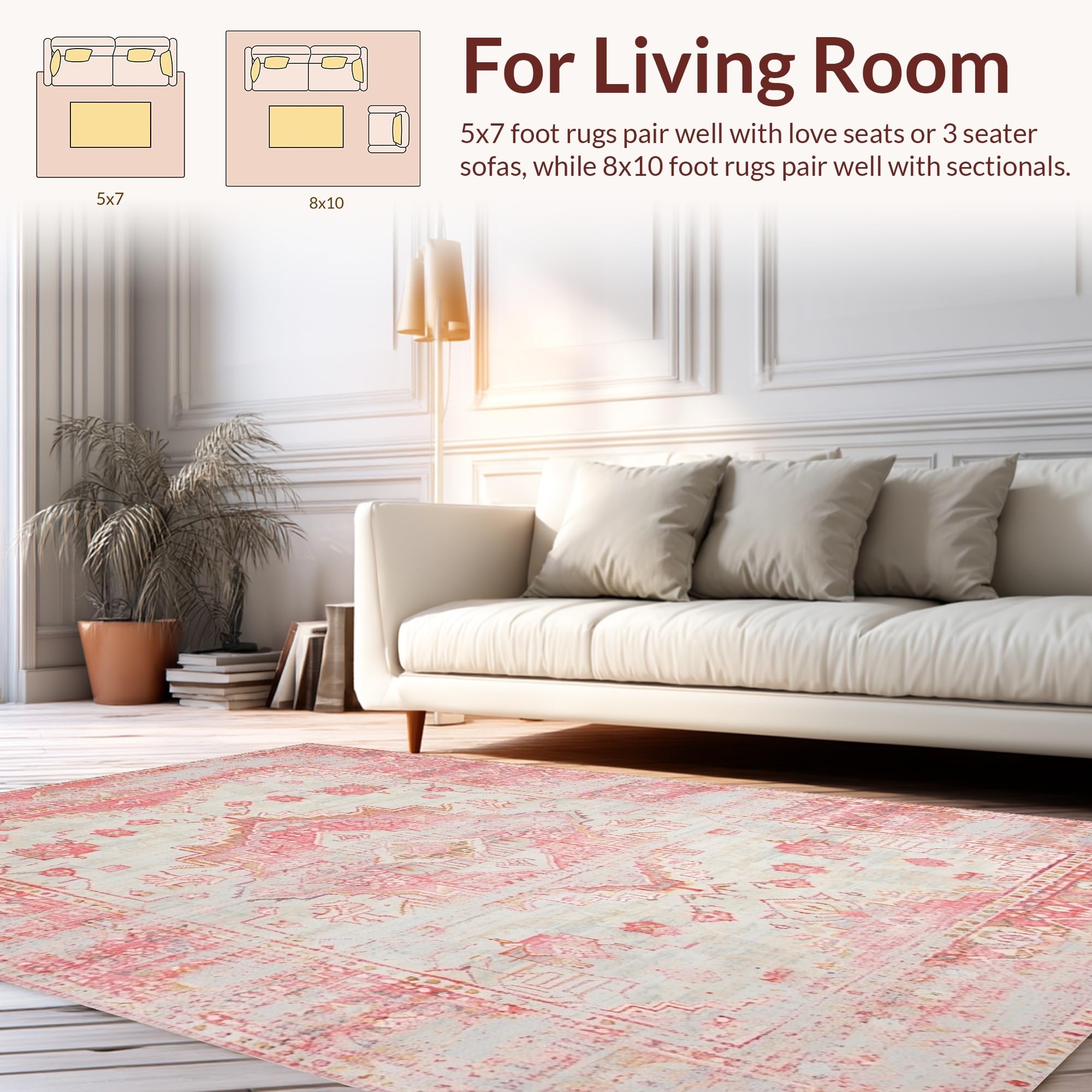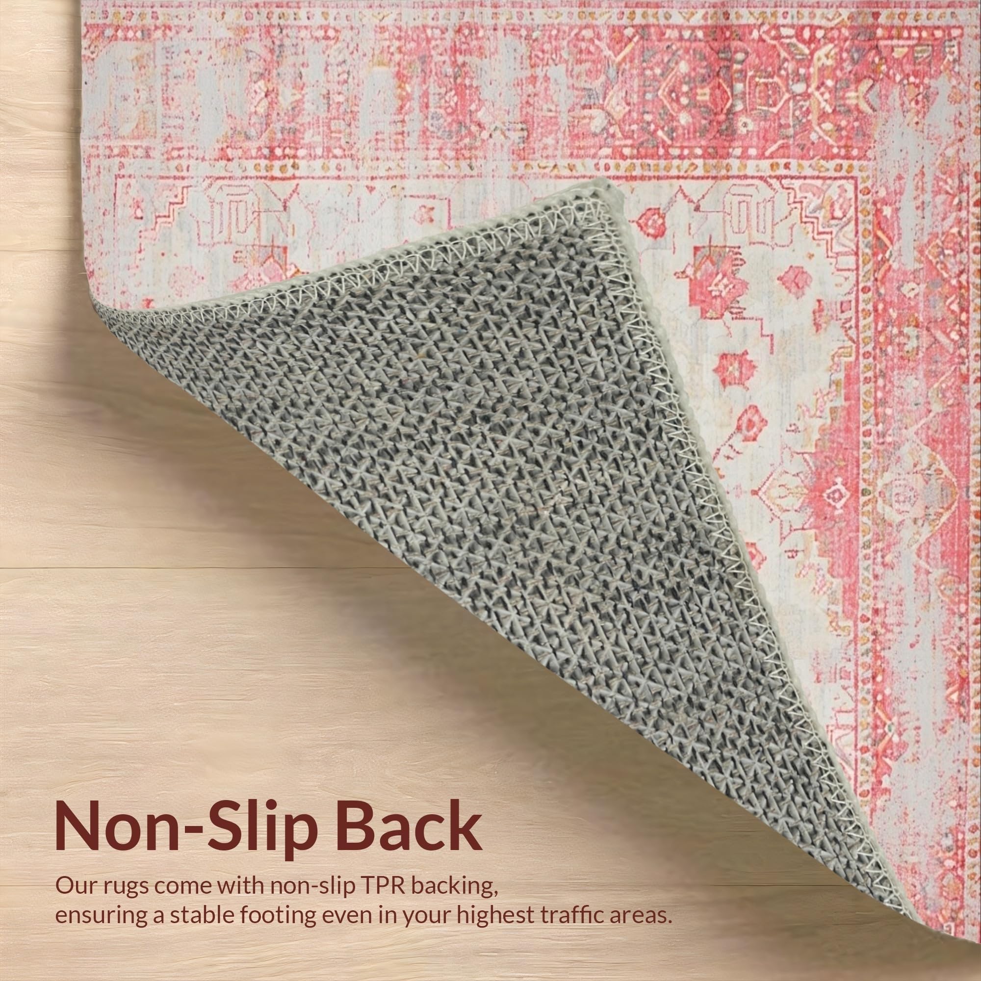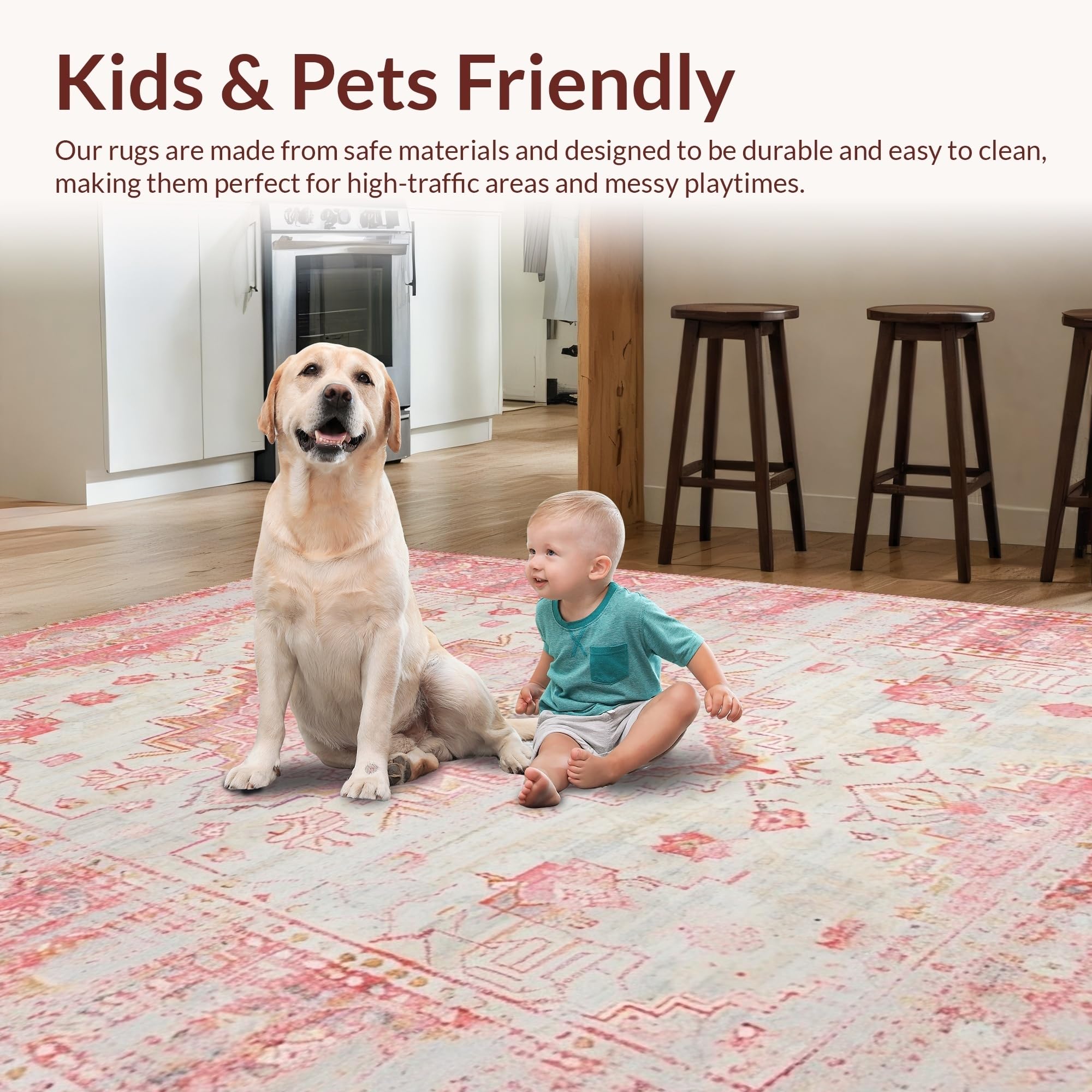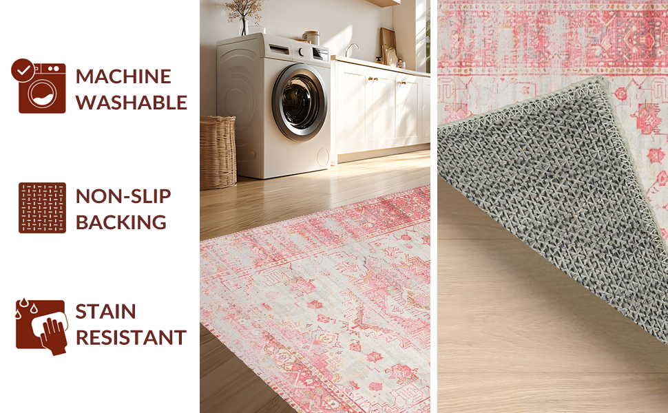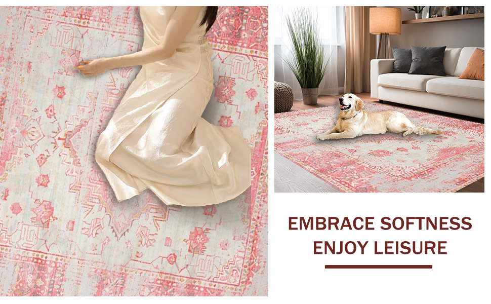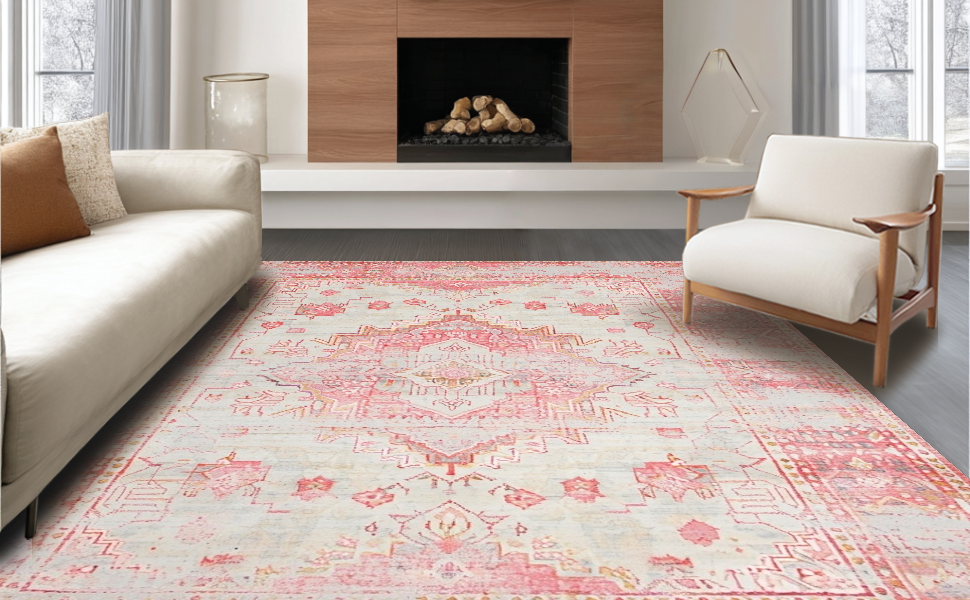 Ultra Soft Area Rug, Non Slip, Stain Resistant, Washable Area Rugs for Living Room, Bedroom, Luxurious Soft Pastel Geometric Design(Pink) Overview: