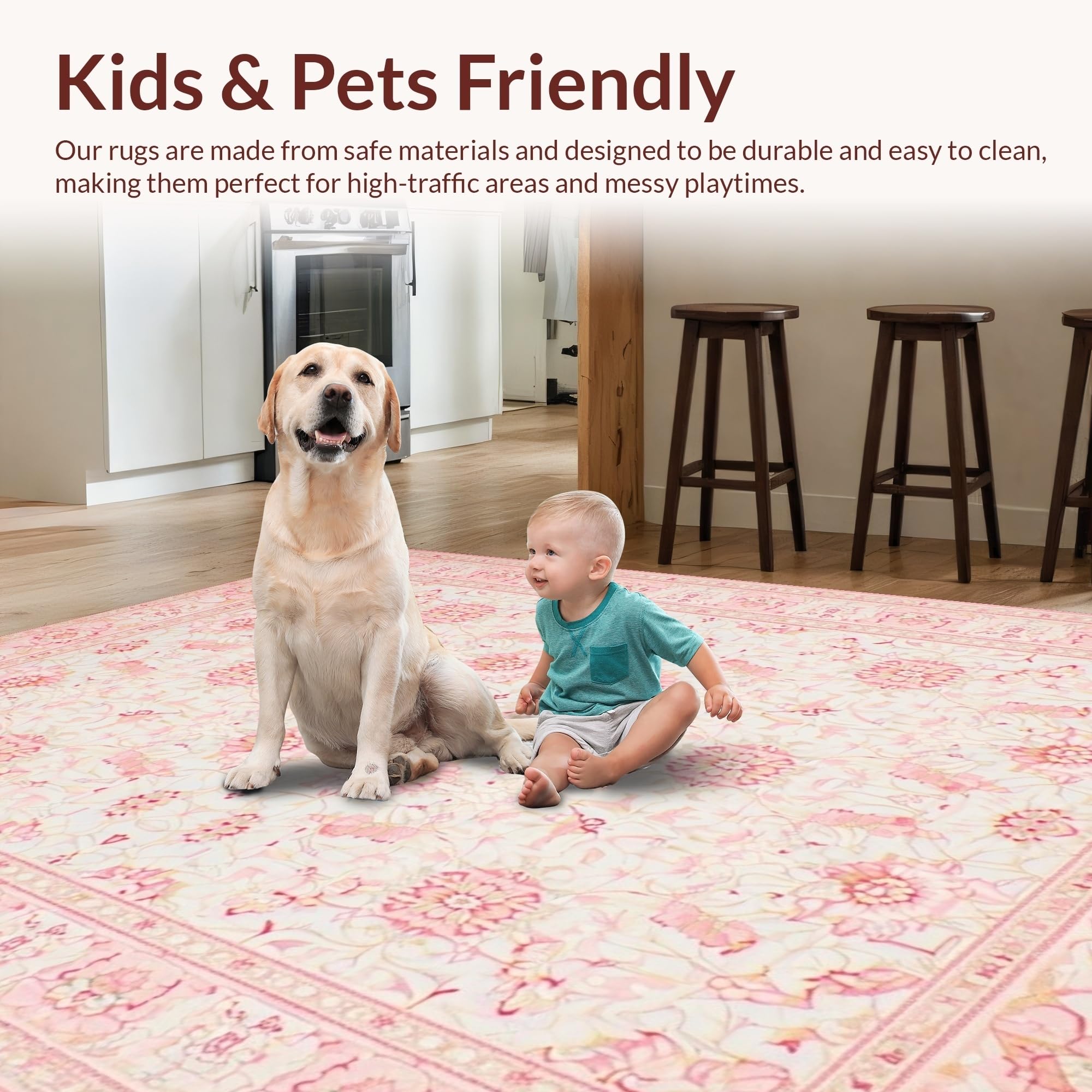 Ultra Soft Area Rug, Non Slip, Stain Resistant, Washable Area Rugs for Living Room, Bedroom, Luxurious Soft Textured Arrangement(Pink) Overview: