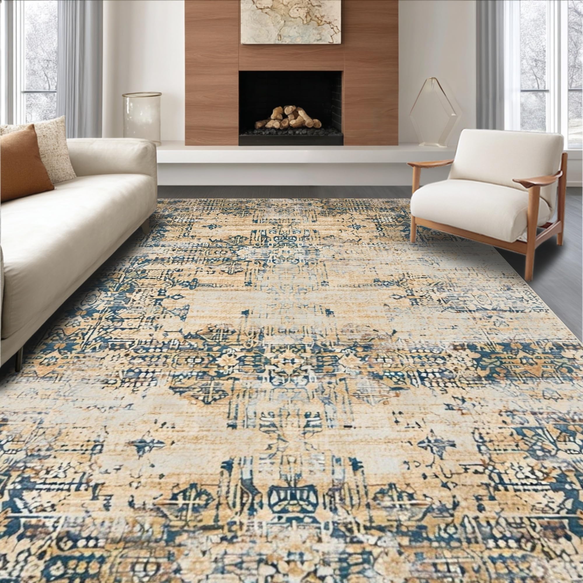 Ultra Soft Area Rug, Non Slip, Stain Resistant, Washable Area Rugs for Living Room, Bedroom, Luxurious Soft-Toned Lattice Style(Beige) Overview: