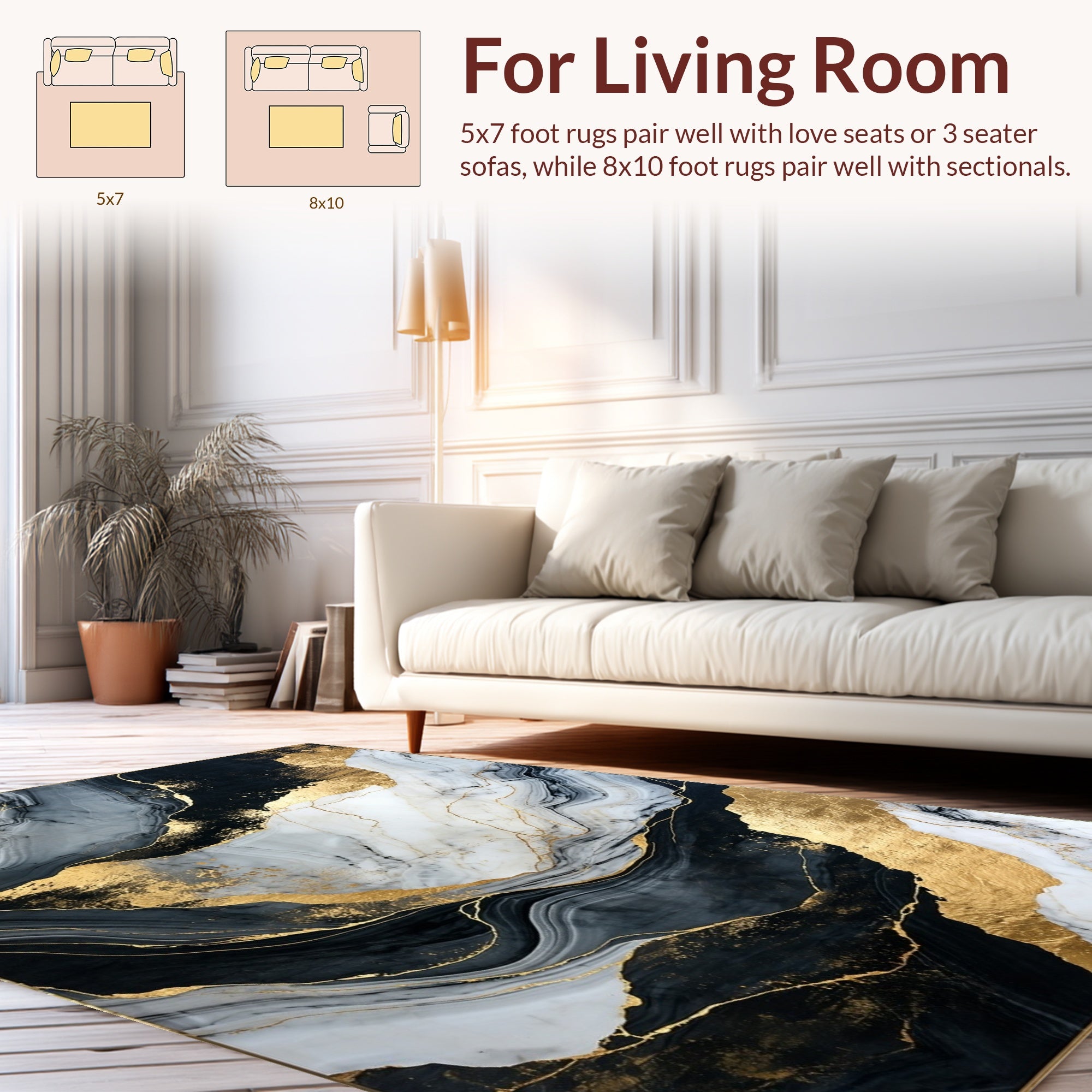 Flatwoven High Traffic Area Rug, Luxurious Toned Swirl, Non Slip, Stain Resistant, Washable Area Rugs for Living Room, Bedroom (Black) Overview: