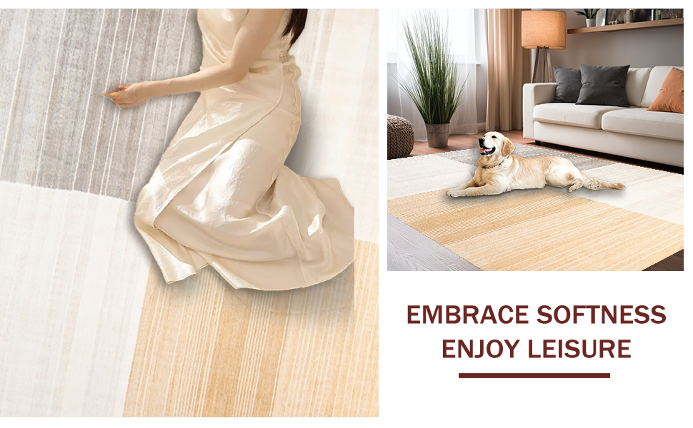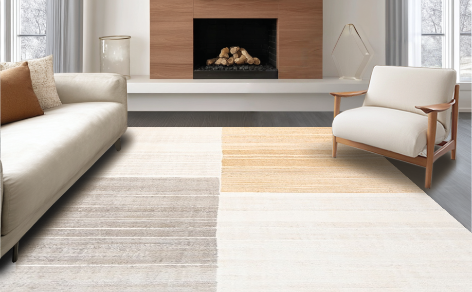 Ultra Soft Area Rug, Non Slip, Stain Resistant, Washable Area Rugs for Living Room, Bedroom, Luxurious Subtle Color Transition(Beige) Overview: