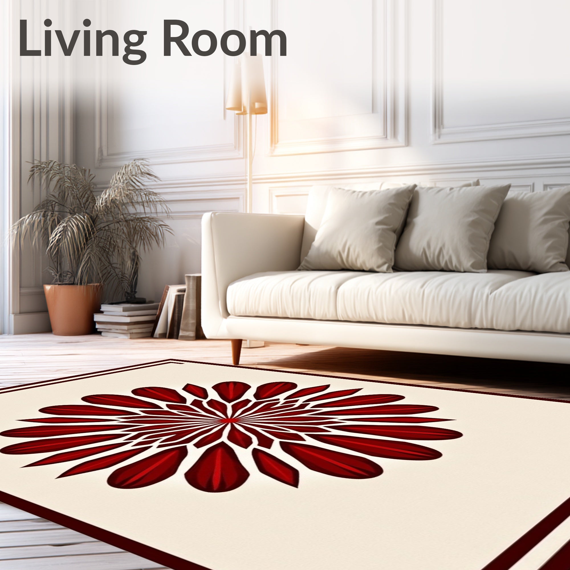 Ultra Soft Area Rug, Non Slip, Stain Resistant, Washable Area Rugs for Living Room, Bedroom, Luxurious Sunburst Radial Bloom Decorative Floor Statement(Red) Overview: