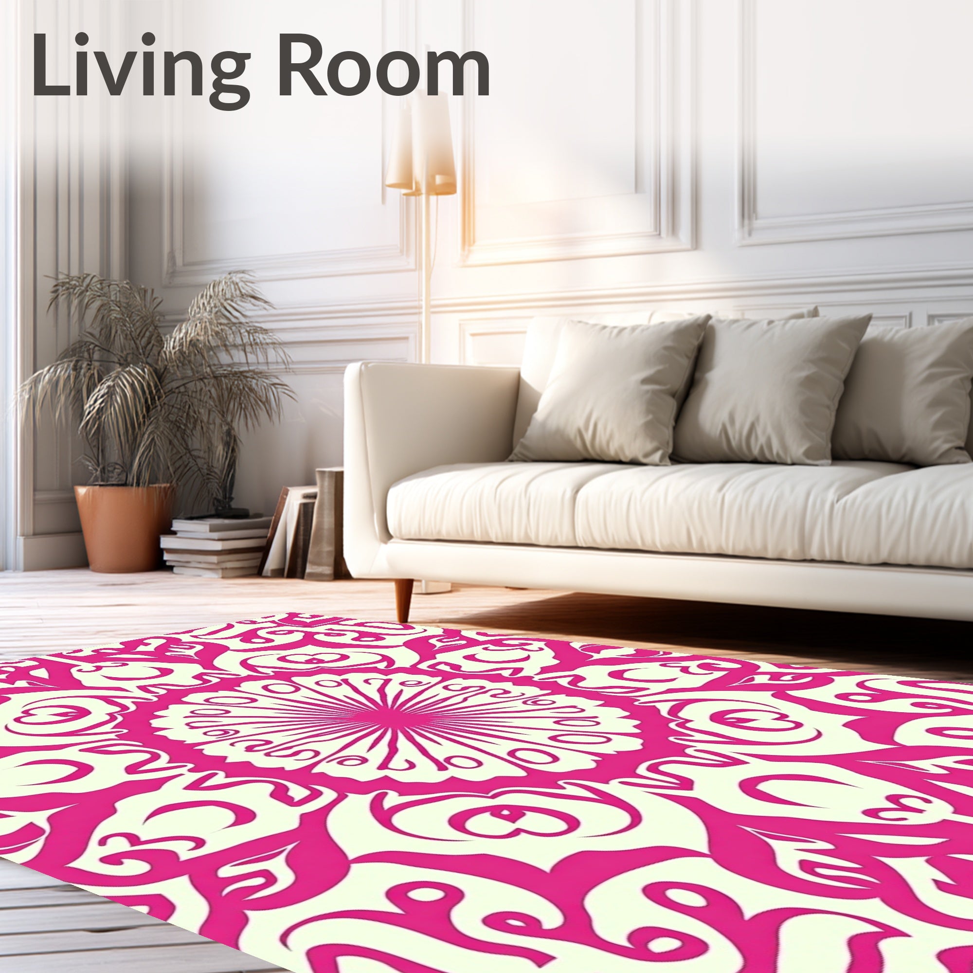 Ultra Soft Area Rug, Non Slip, Stain Resistant, Washable Area Rugs for Living Room, Bedroom, Luxurious Swirl Symphony Decorative Medallion Accent(Pink) Overview: