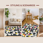Ultra Soft Area Rug, Non Slip, Stain Resistant, Washable Area Rugs for Living Room, Bedroom, Luxurious Symmetrical Design Elements(Black) Overview:
