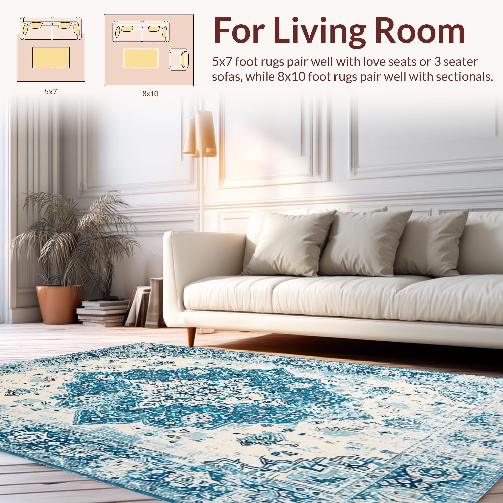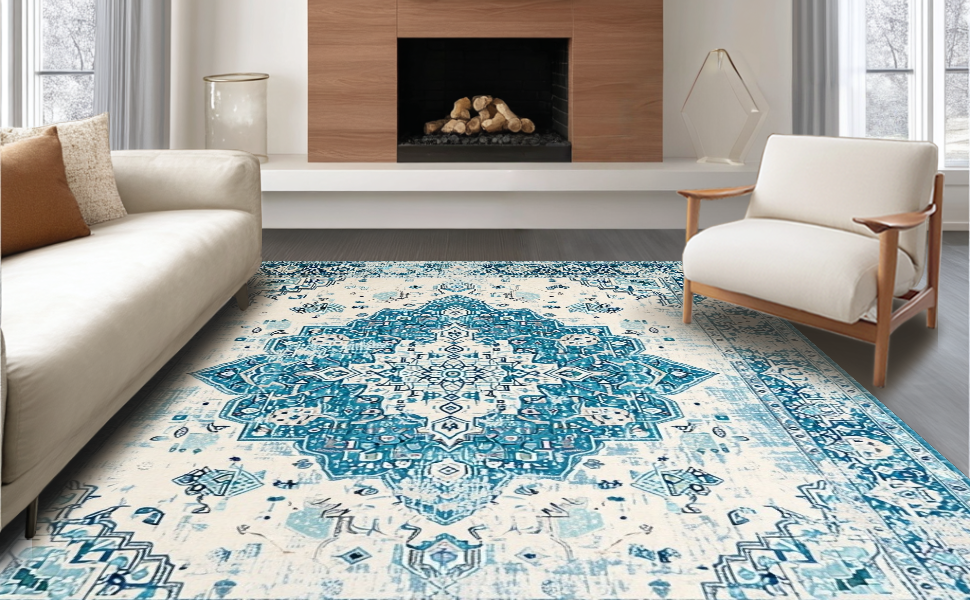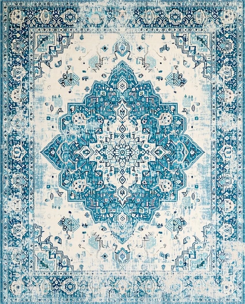 Ultra Soft Area Rug, Non Slip, Stain Resistant, Washable Area Rugs for Living Room, Bedroom, Luxurious Teal Trellis Aesthetic(Blue) Overview: