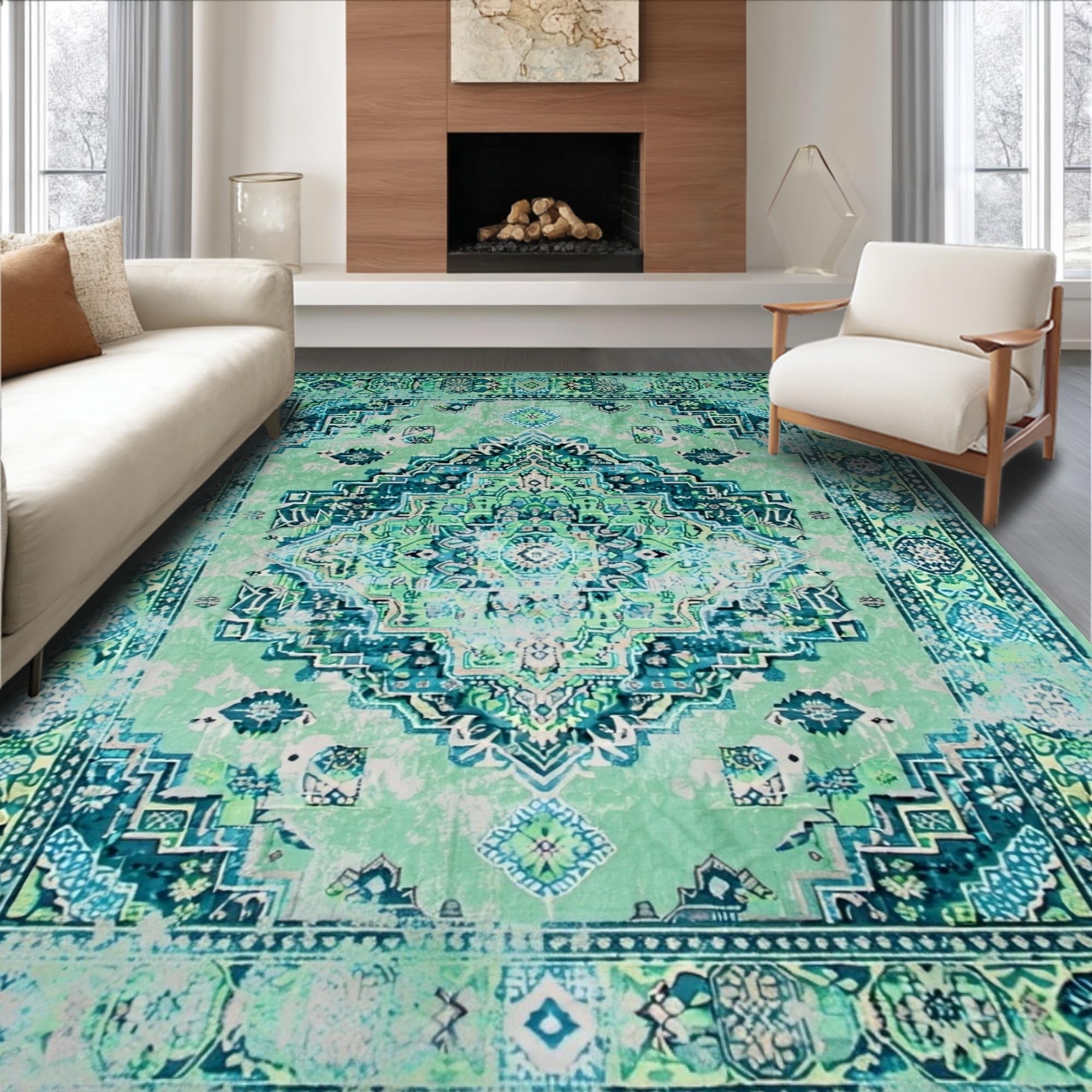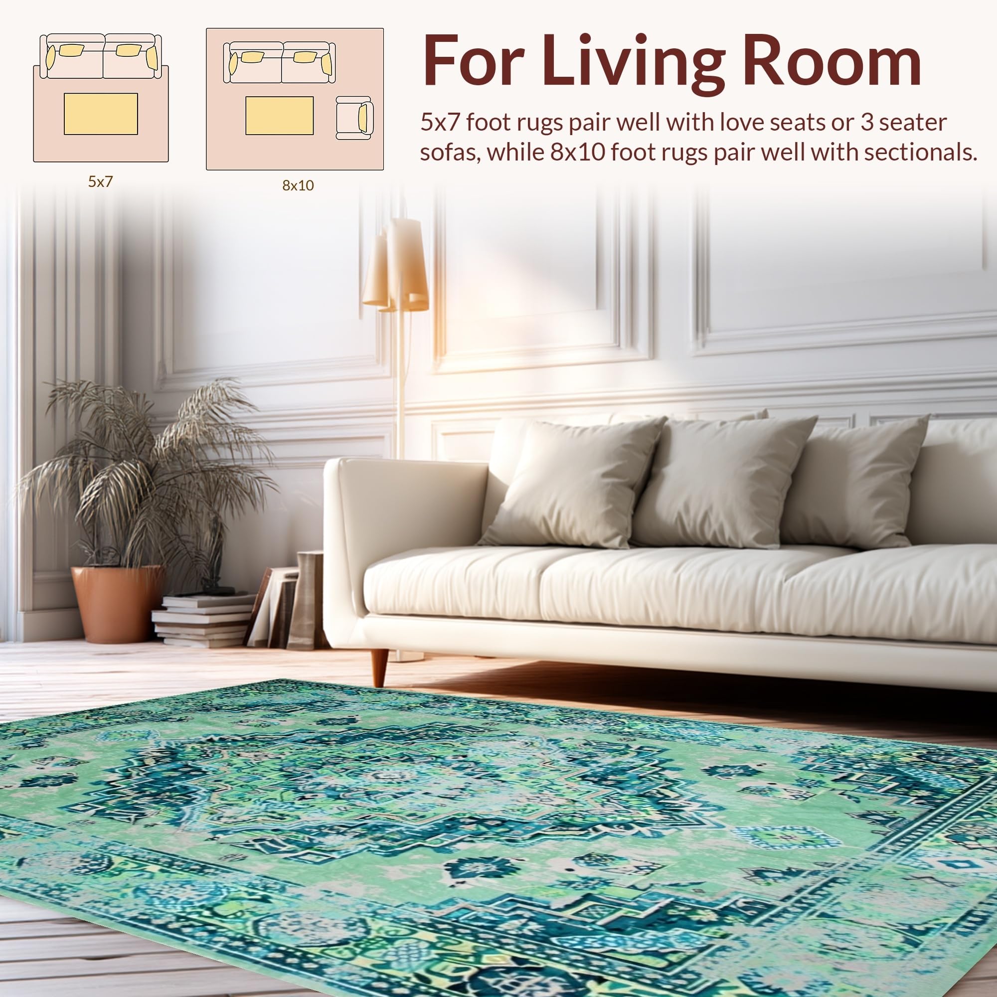 Ultra Soft Area Rug, Non Slip, Stain Resistant, Washable Area Rugs for Living Room, Bedroom, Luxurious Textured Damask Pattern(Ivory) Overview:
