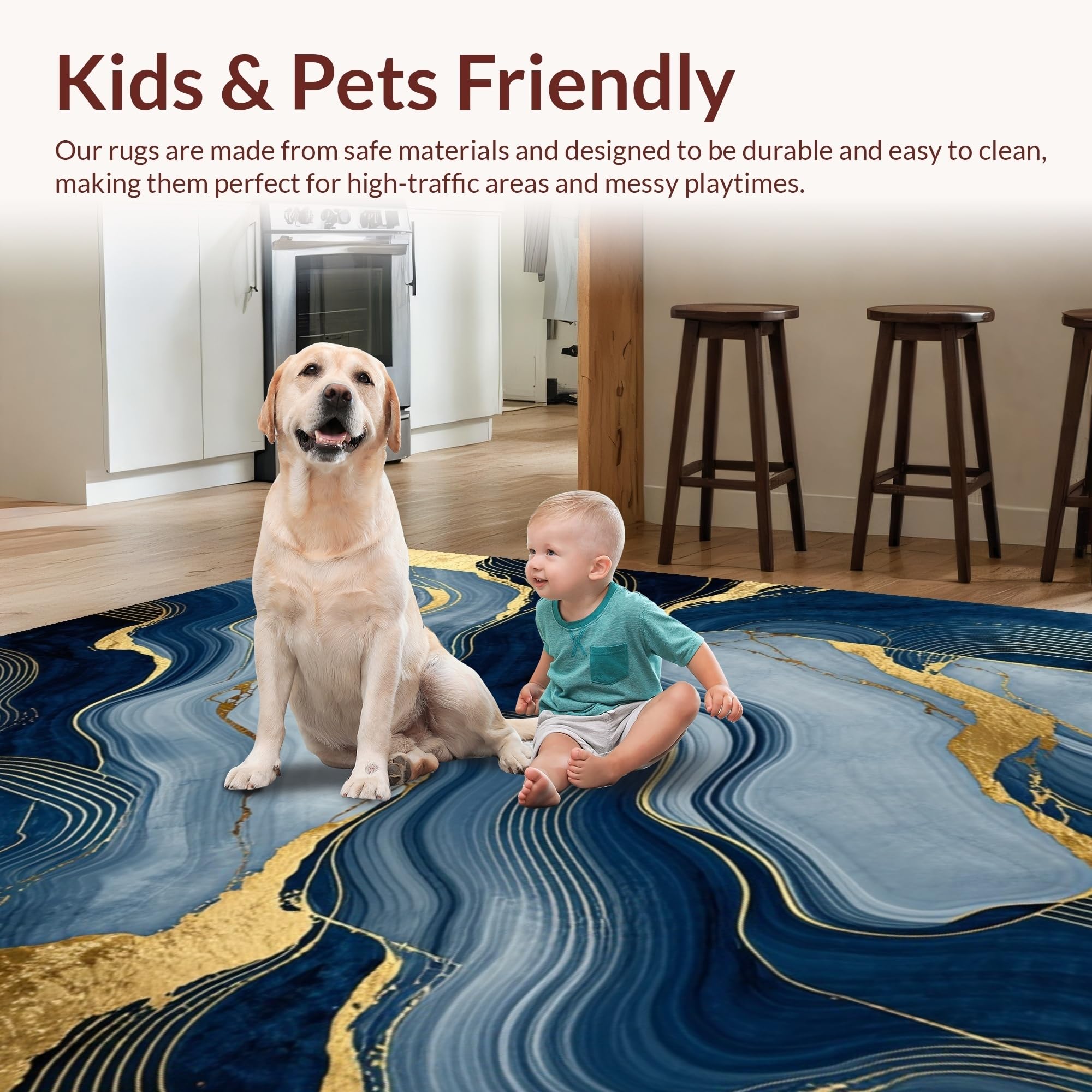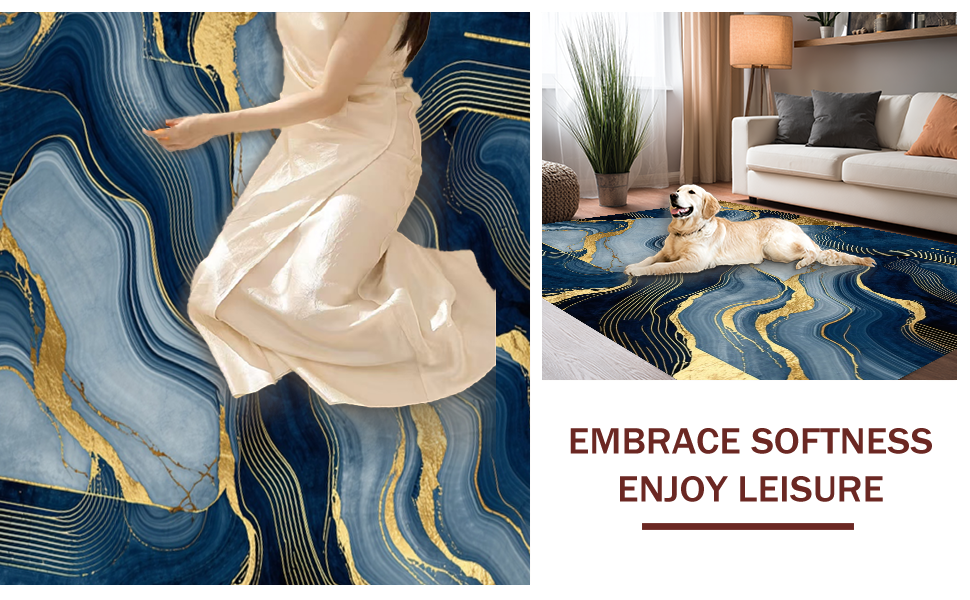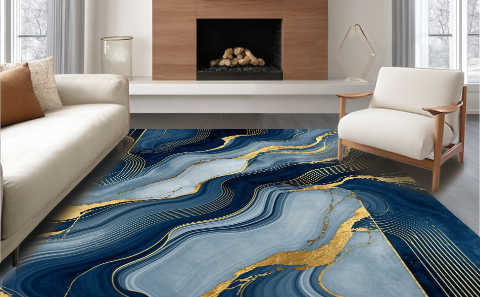 Ultra Soft Area Rug, Non Slip, Stain Resistant, Washable Area Rugs for Living Room, Bedroom, Luxurious Textured Wave Design(Blue) Overview: