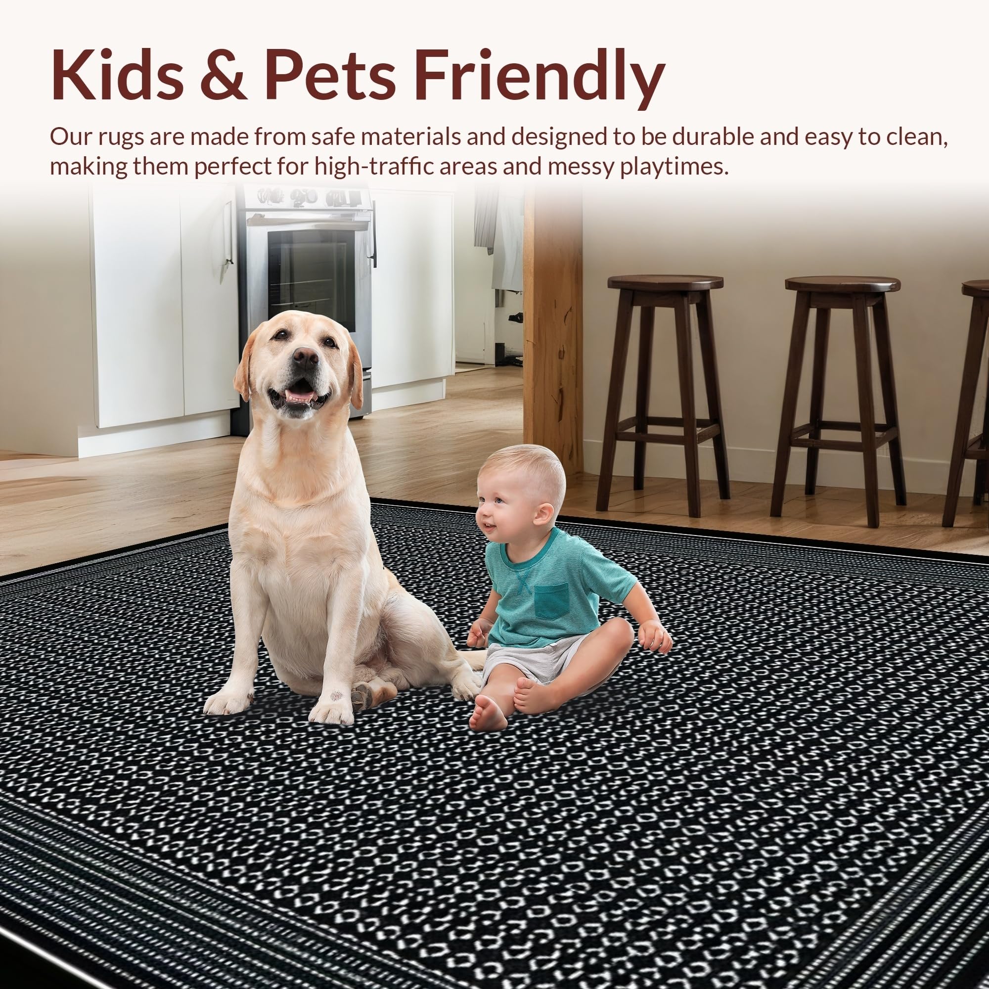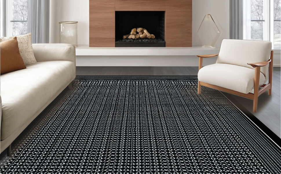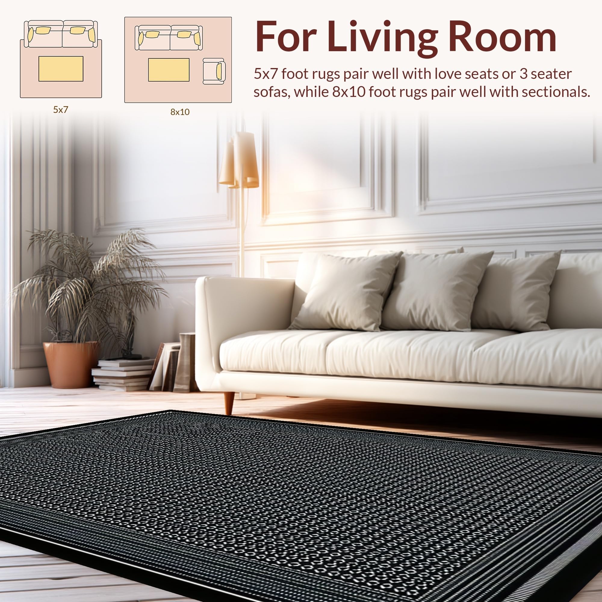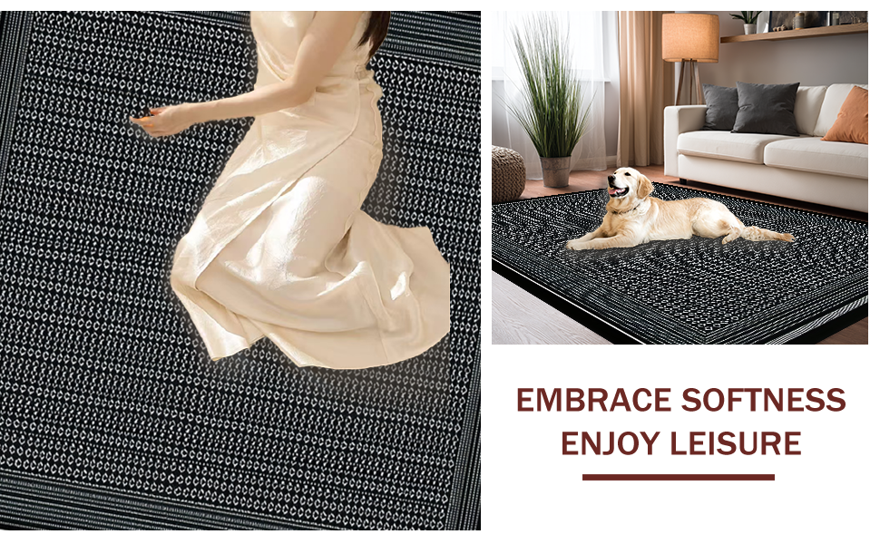 Ultra Soft Area Rug, Non Slip, Stain Resistant, Washable Area Rugs for Living Room, Bedroom, Luxurious Tiled Geometric Visual(Black) Overview:
