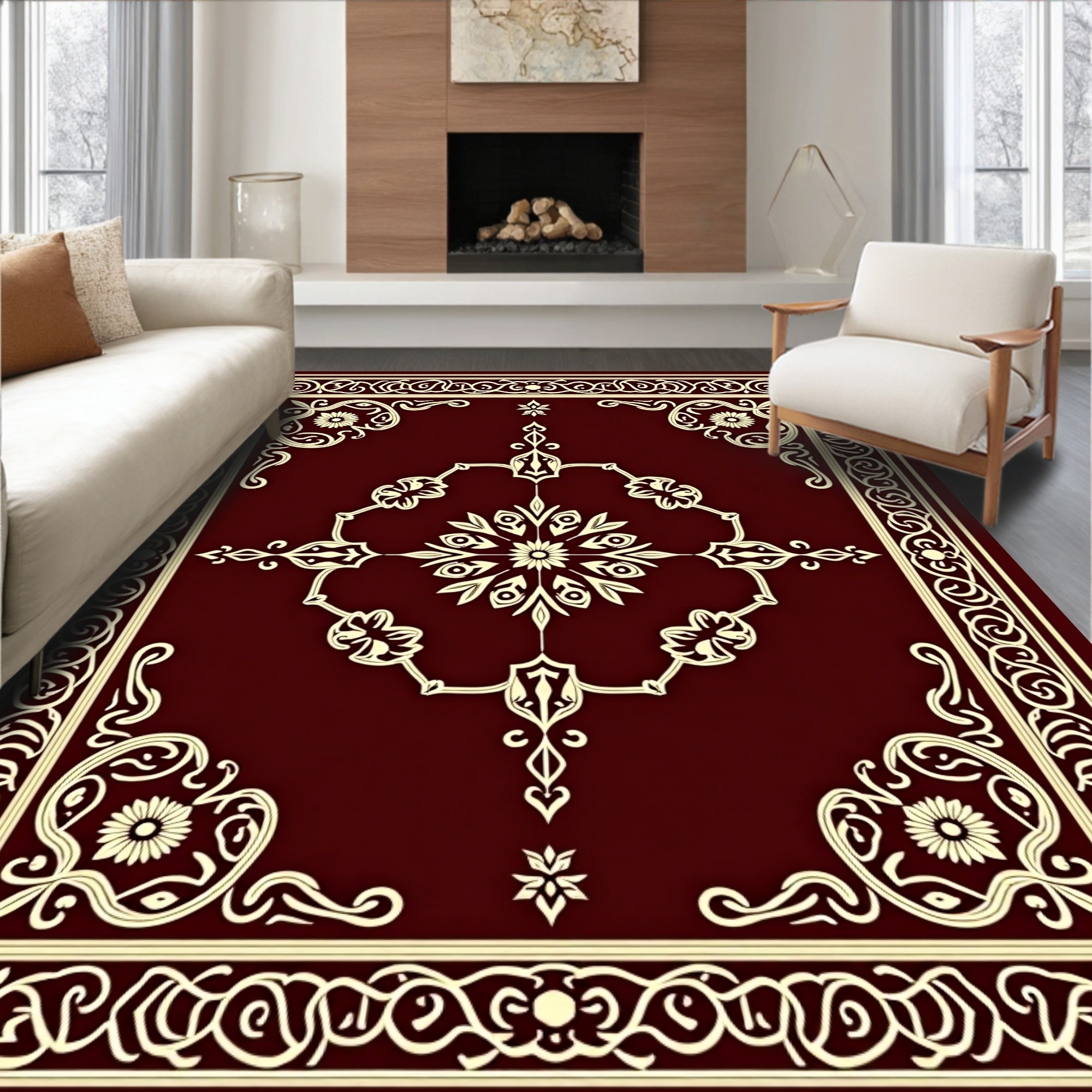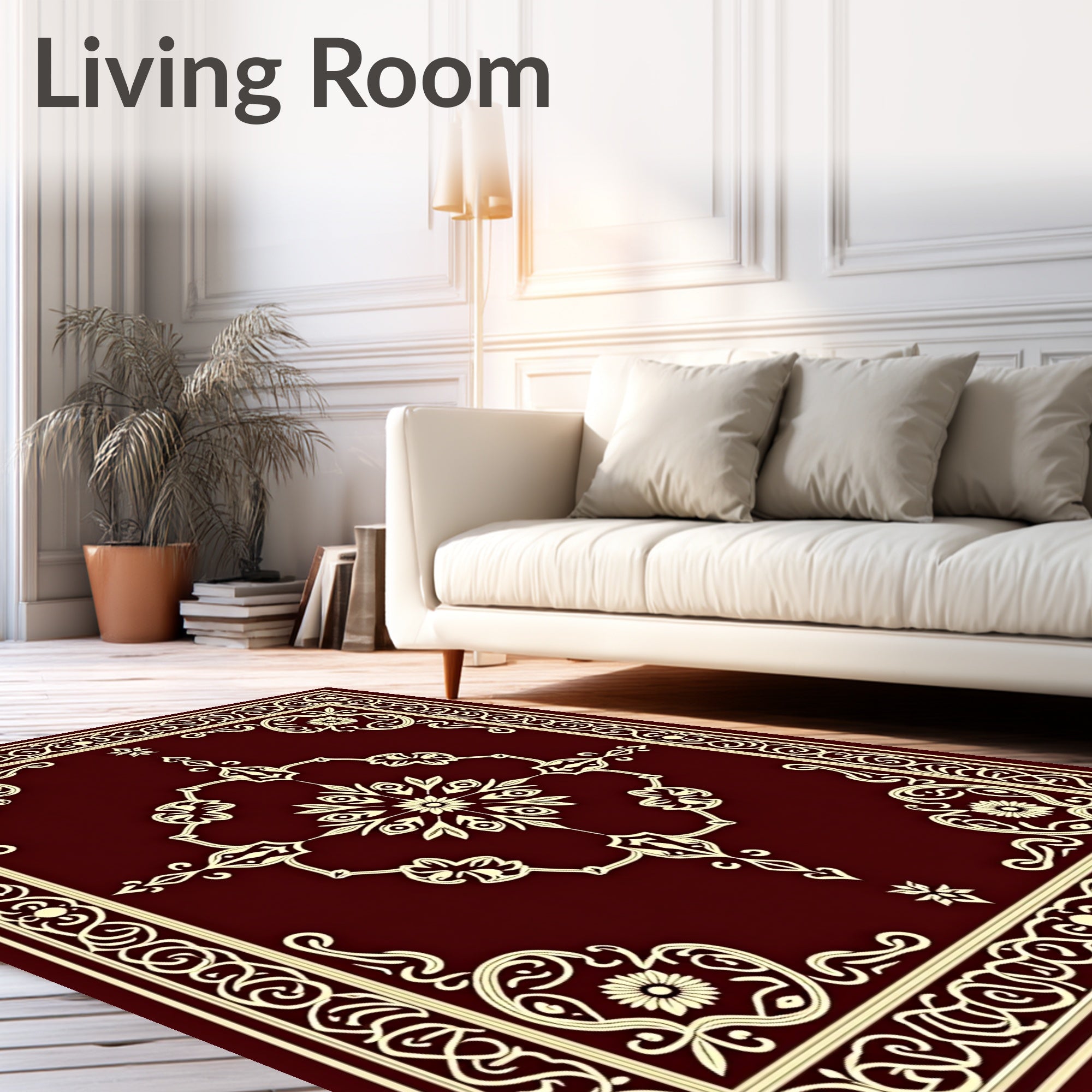 Ultra Soft Area Rug, Non Slip, Stain Resistant, Washable Area Rugs for Living Room, Bedroom, Luxurious Velvet Damask Jewel Collection Elegant Vintage Medallion(Red) Overview: